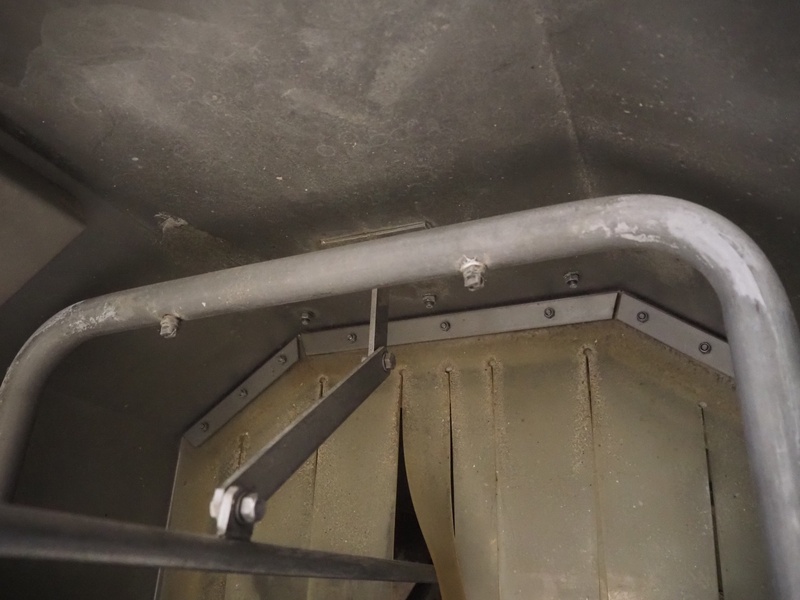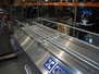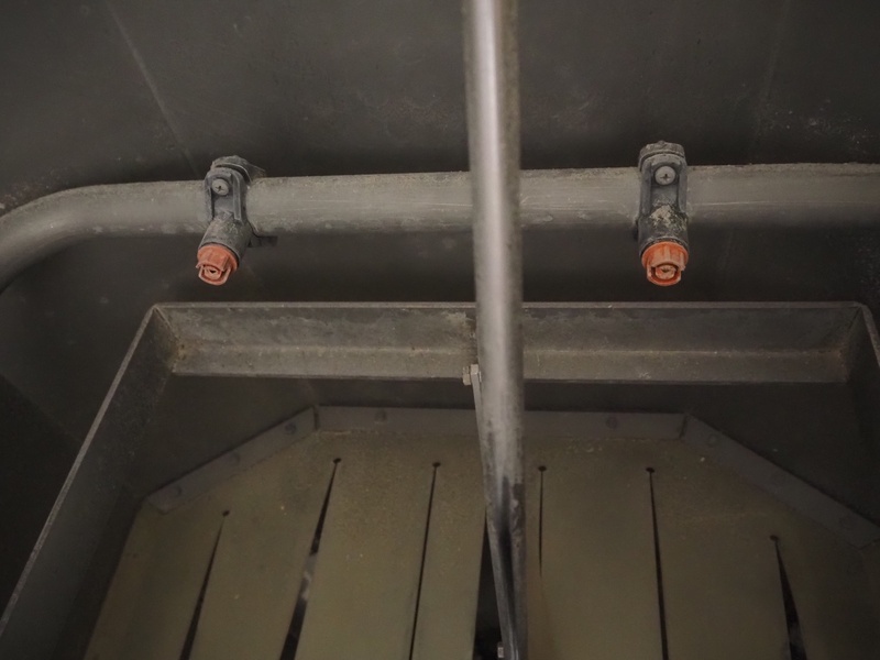 Cretel crate washing machine, s/s chain conveyor with dividers, belt width: 450 mm, distance between dividers: 760 mm, divider height: 15 mm, total dimensions: 3650 mm x 1000 mm x 1720 mm. Including blower.