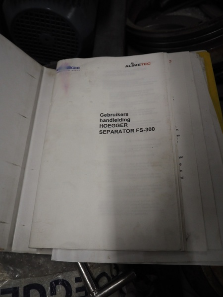 Hoegger separator, type: FS 300, number: 067, year of construction: 2004, 400 V, 50 Hz, 6 kW, diameter outfeed: 65 mm, total dimensions: 1450 mm x 1280 mm x 1750 mm. Including tool rack and pallet with parts.