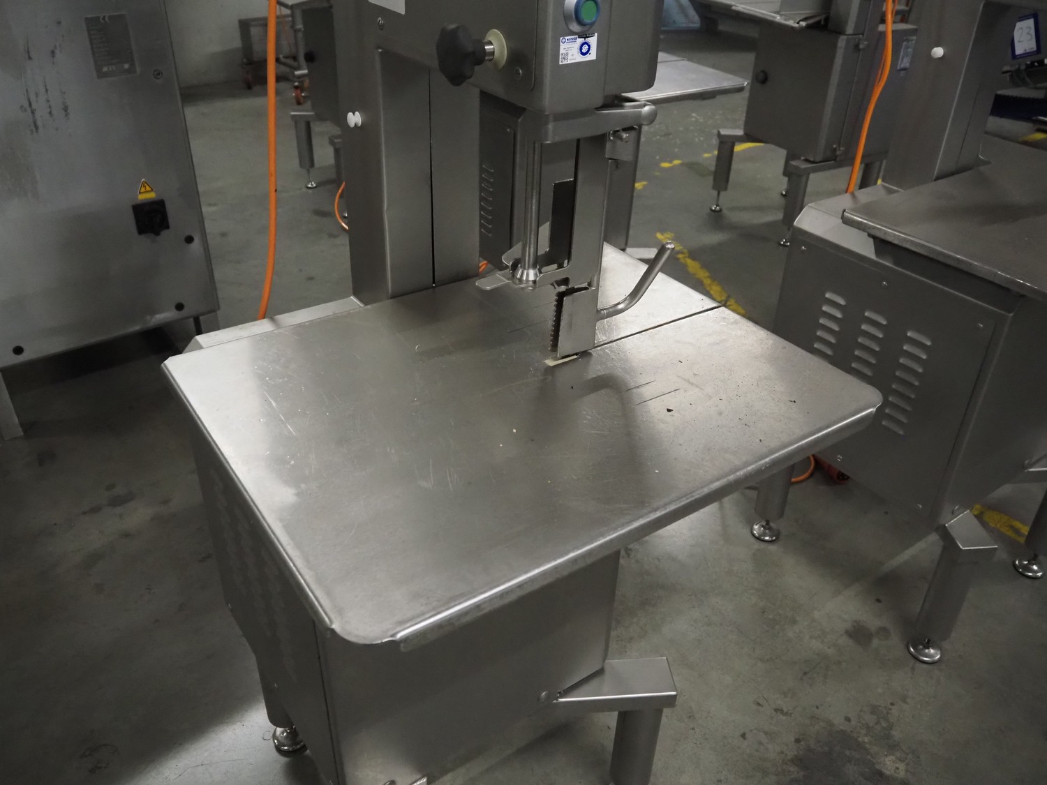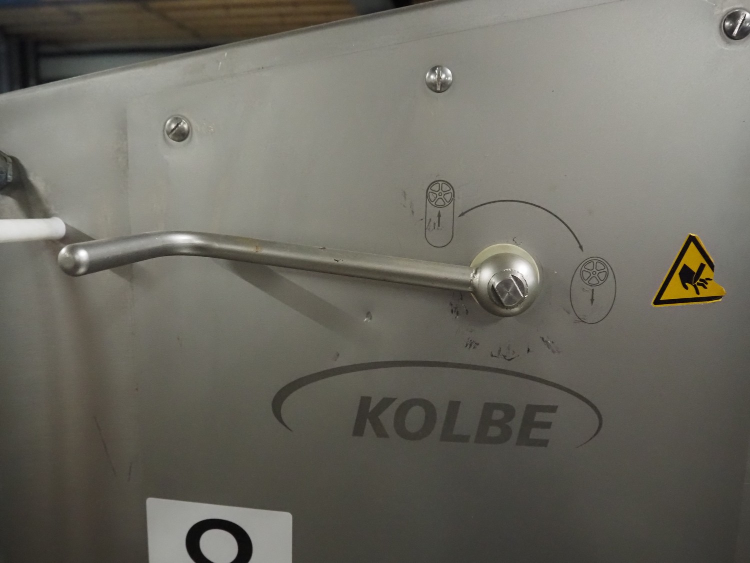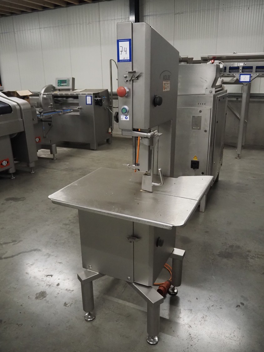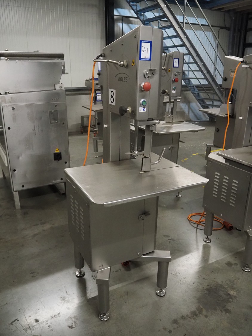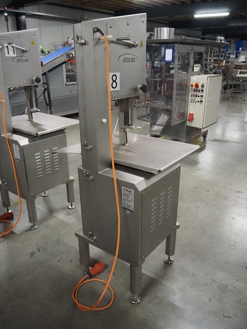 Kolbe bandsaw, type: K330S, serial number: 98 0813, year of construction: 2014, 400 V, 3 Ph, 50 Hz, 24 VDC, 3.4 A, 1.5 kW, weight: 150-155 kg, dimensions saw table: 760 mm x 580 mm, total dimensions: 760 mm x 720 mm x 1800 mm.