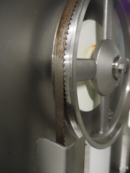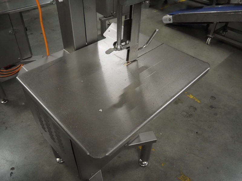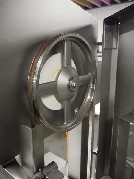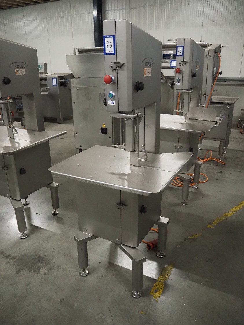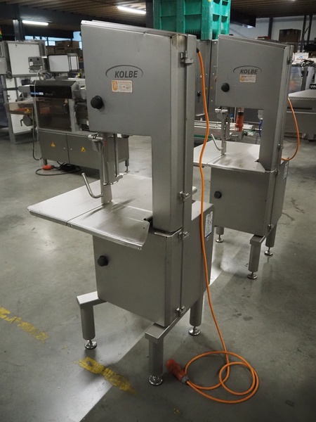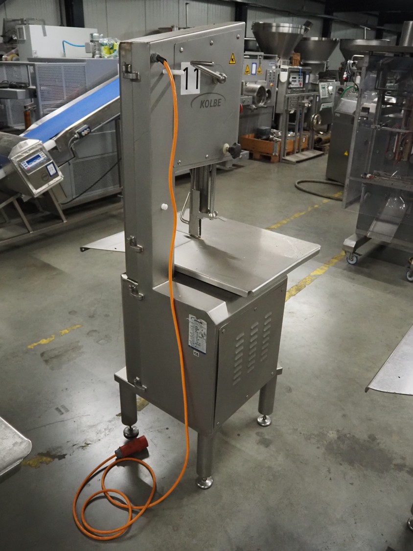 Kolbe bandsaw, type: K330S, serial number: 98 0722, year of construction: 2014, 400 V, 3 Ph, 50 Hz, 24 VDC, 3.4 A, 1.5 kW, weight: 150-155 kg, dimensions saw table: 760 mm x 580 mm, total dimensions: 760 mm x 720 mm x 1800 mm.