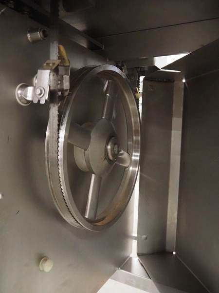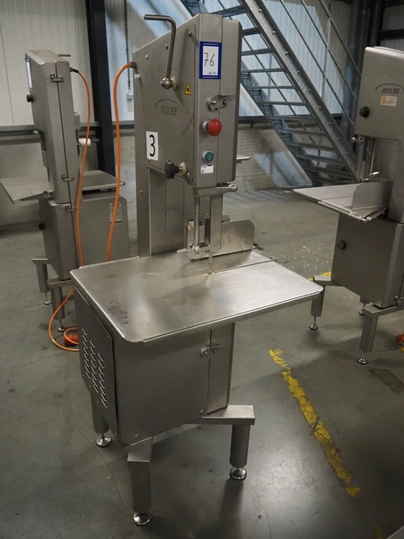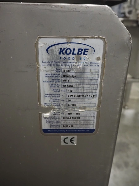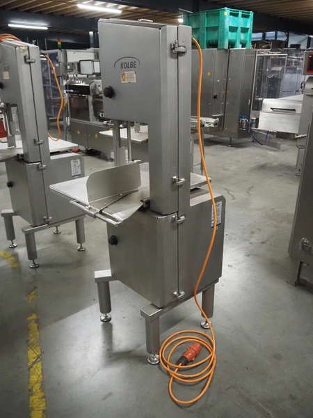 Kolbe bandsaw, type: K330S, serial number: 98 0618, year of construction: 2013, 400 VAC, 3 Ph, 50 Hz, 24 VDC, 3.4 A, 1.5 kW, weight: 150-155 kg, dimensions saw table: 760 mm x 580 mm, total dimensions: 760 mm x 720 mm x 1800 mm.