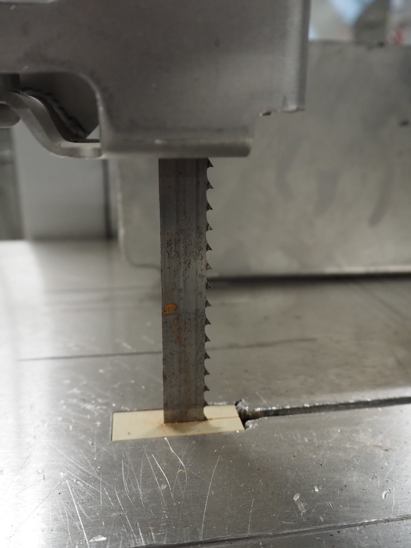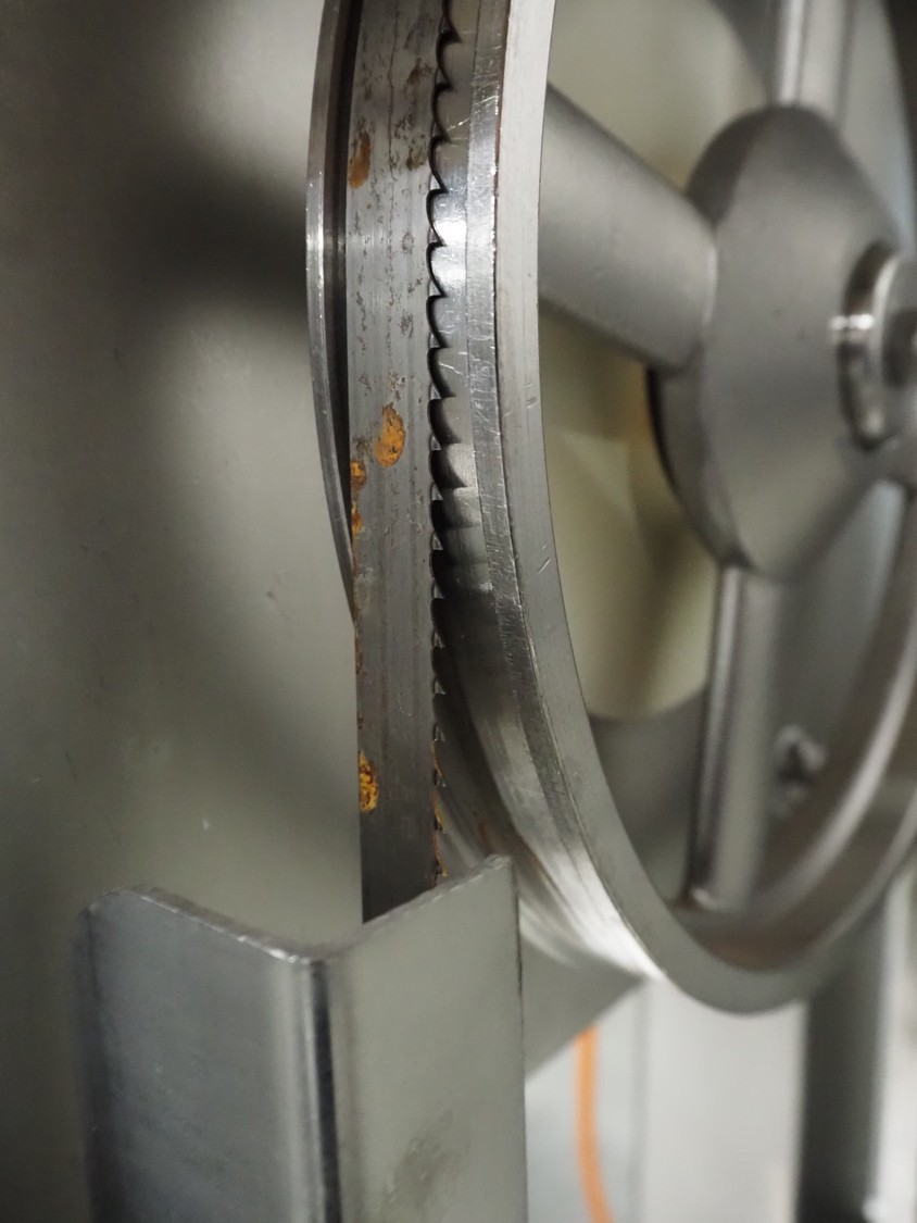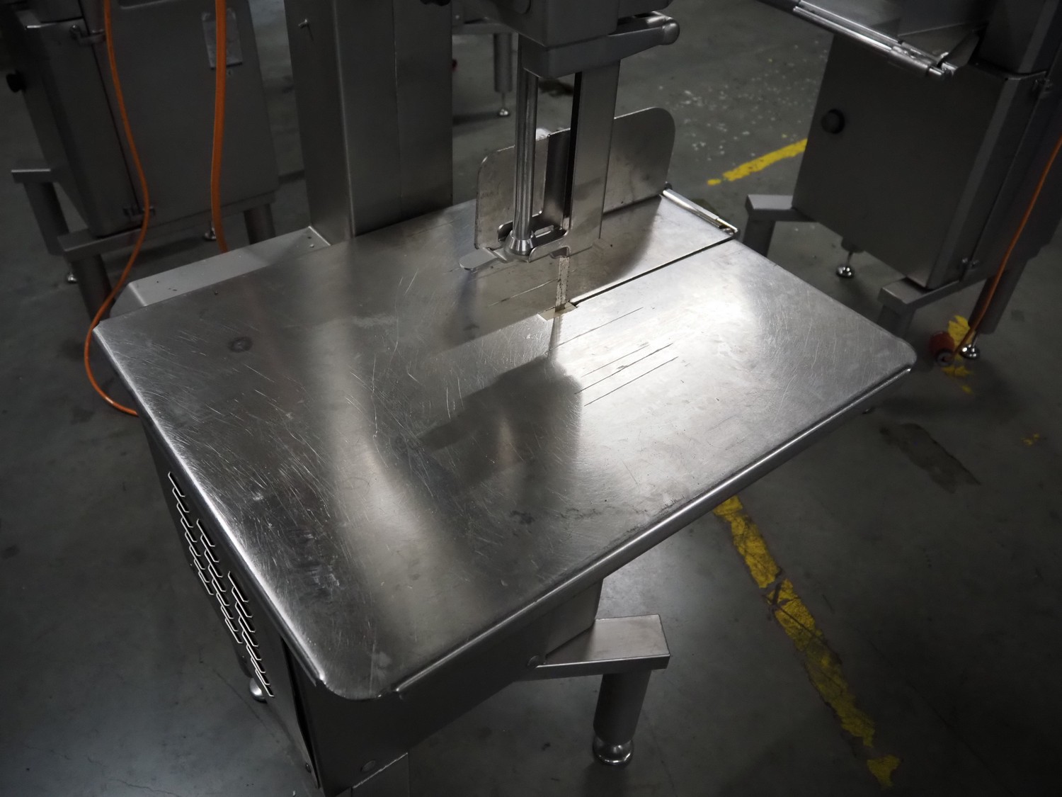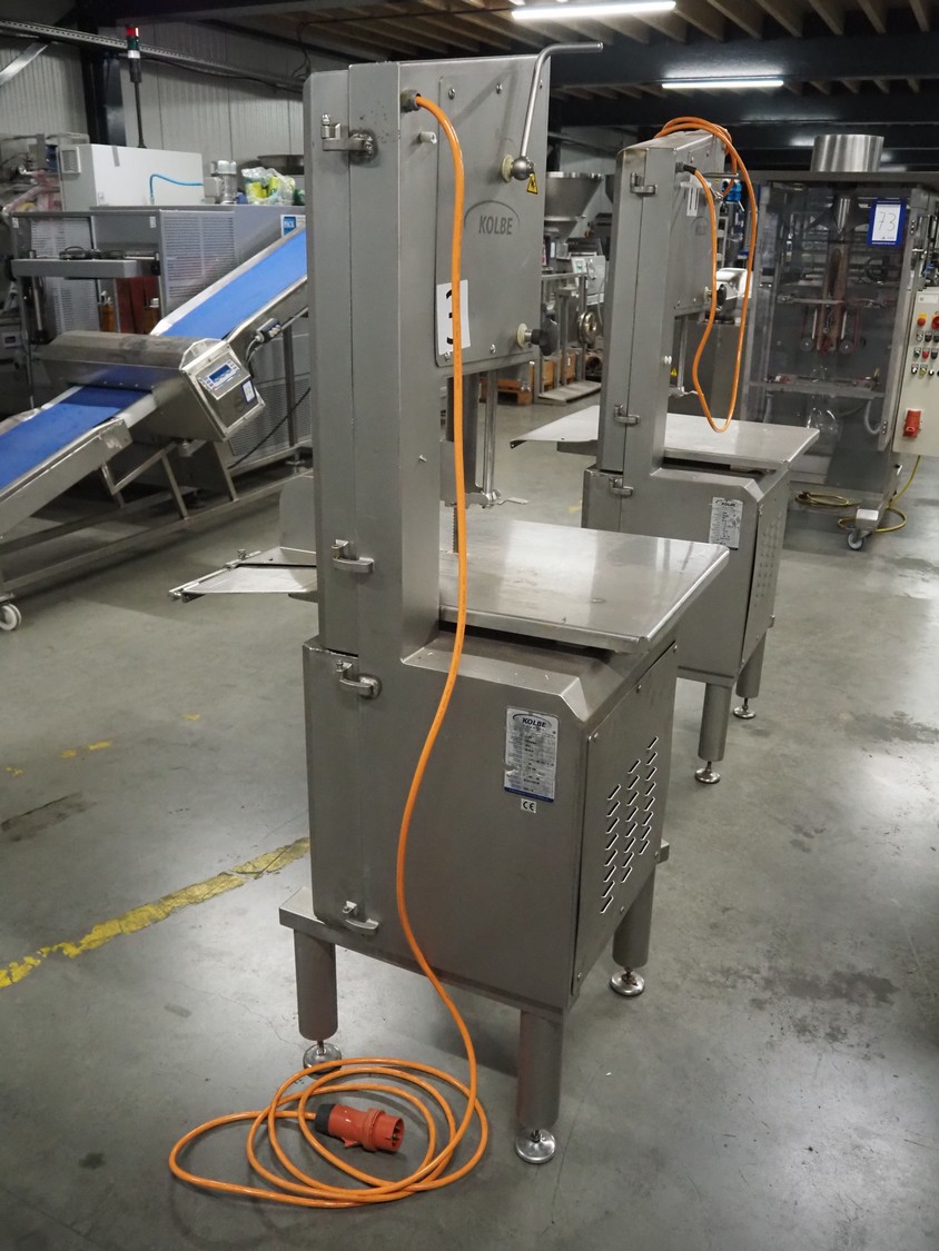 Kolbe bandsaw, type: K330S, serial number: 98 0618, year of construction: 2013, 400 VAC, 3 Ph, 50 Hz, 24 VDC, 3.4 A, 1.5 kW, weight: 150-155 kg, dimensions saw table: 760 mm x 580 mm, total dimensions: 760 mm x 720 mm x 1800 mm.