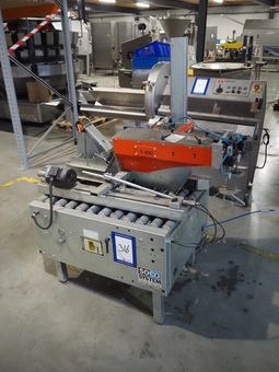 1932-190: Soco SystemSoco System box taping machine, model: T-10, number: 621-88, 380 V, 3 Ph, plastic rollers, roller width: (2x) 260 mm, 70 mm, total …0 bidsLot is closed