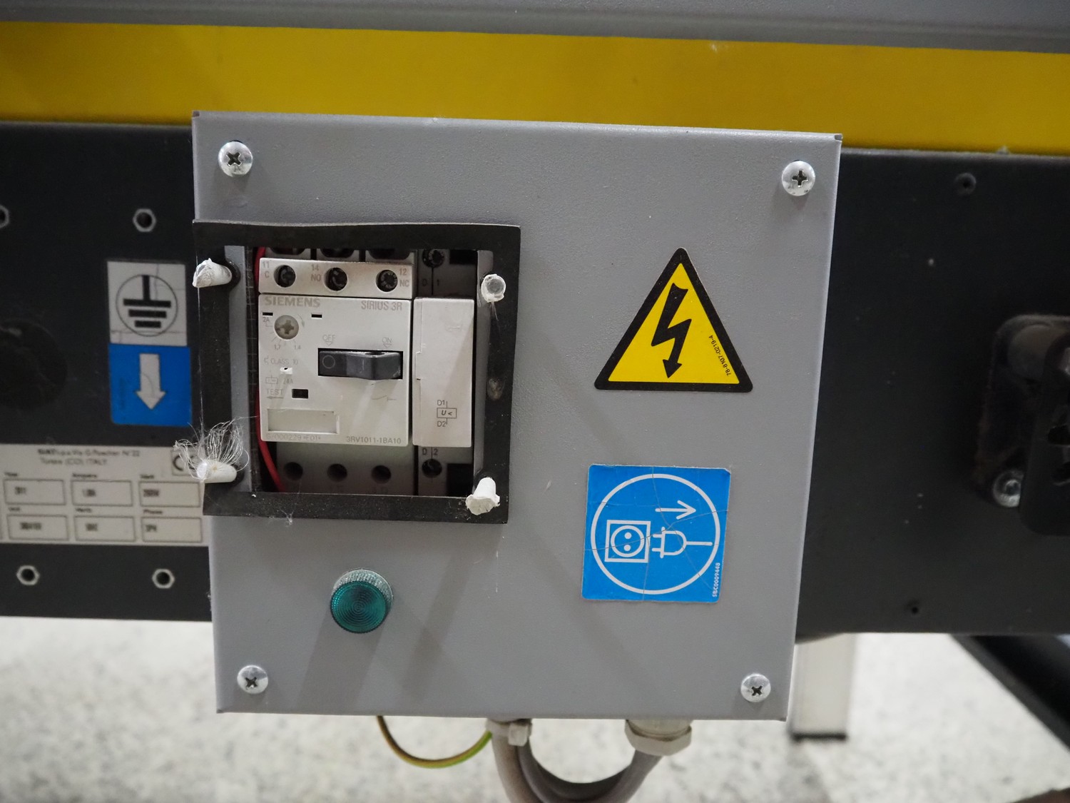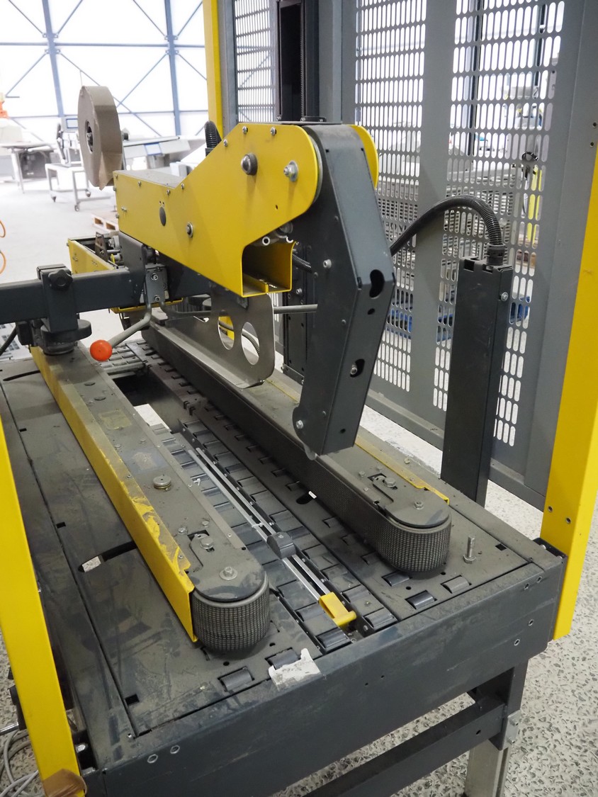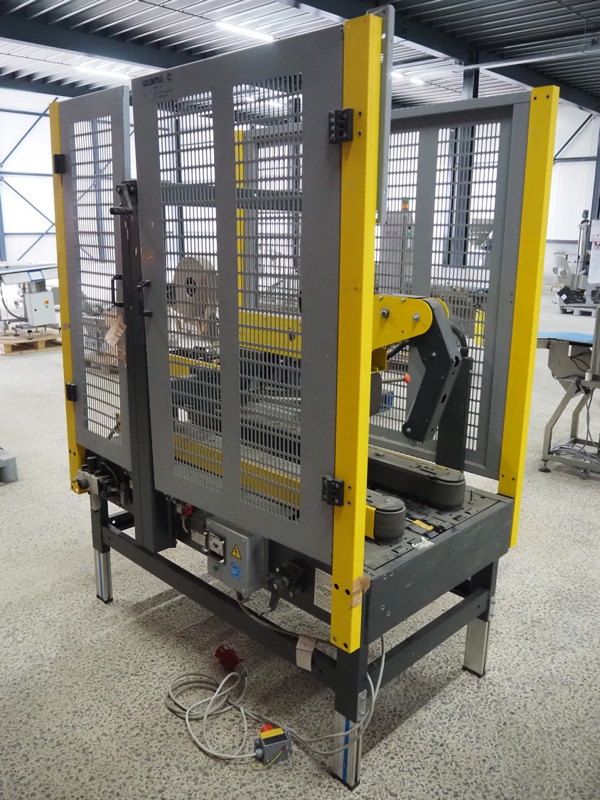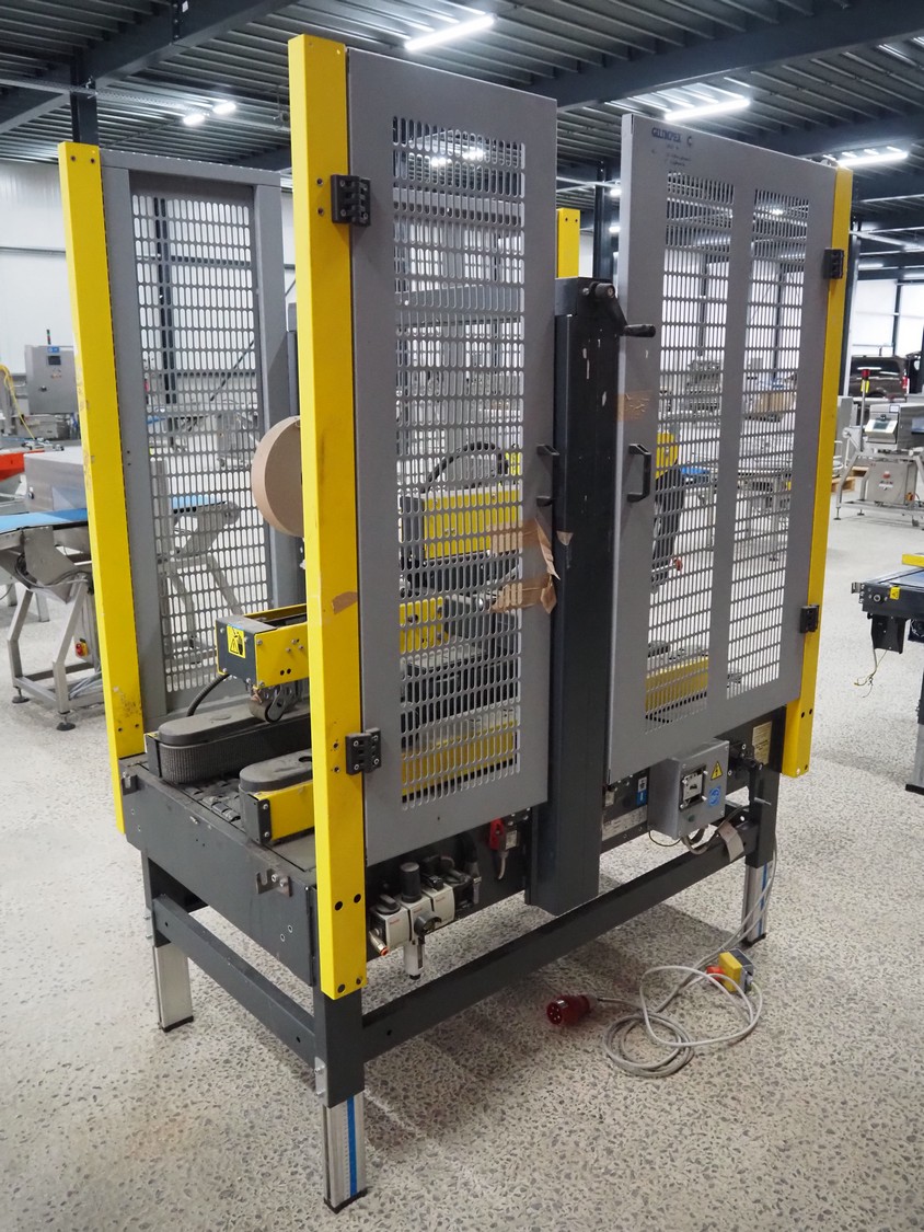 Siat box closing machine, model: SM11-S, serial number: 55147, year of construction: 2011, 380/415 V, 3 Ph, 50 Hz, 1.08 A, 260 Watt, dimensions: 1500 mm x 950 mm x 2000 mm.