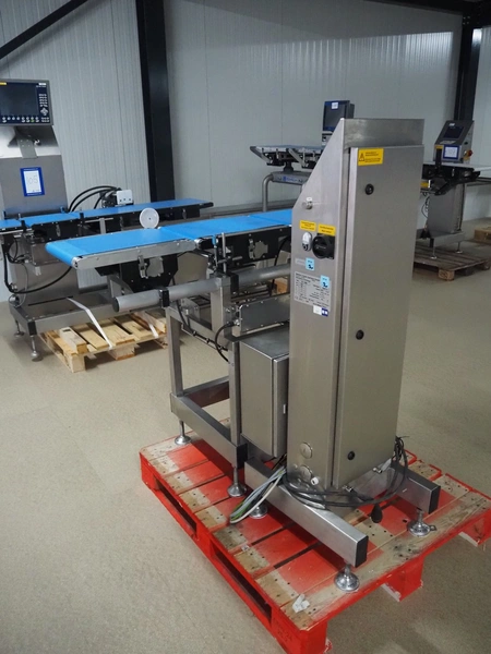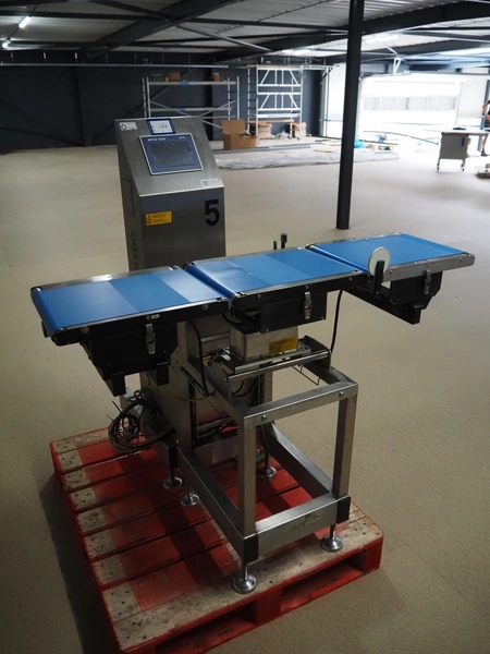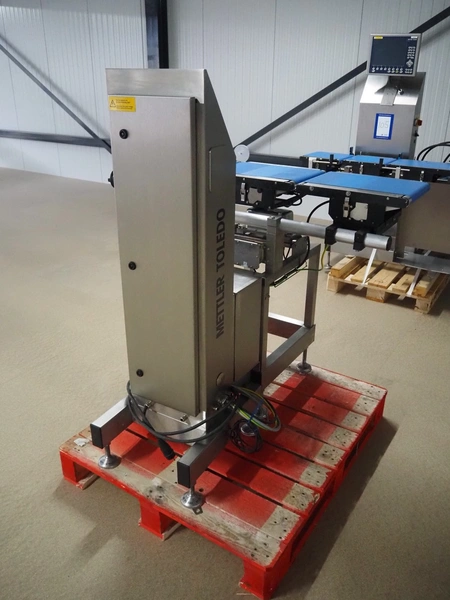 Mettler Toledo Garvens checkweigher, type: XE 3 DMS, fabrication number: 35006719, year of construction: 2016, 100-240 V, 50-60 Hz, maximum weight: 2500 gram, minimum weight: 350 gram, e=d=: 2 gram, T=- 2250 gram, plastic belt, belt width: 280 mm, total dimensions: 1350 mm x 1100 mm x 1700 mm.