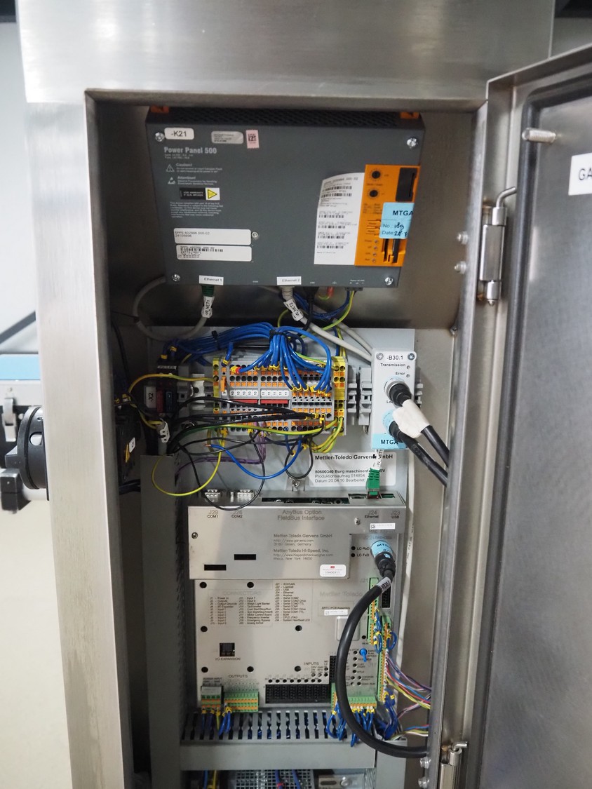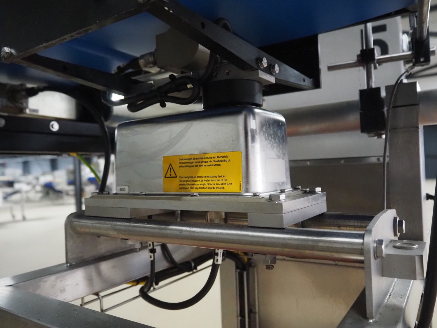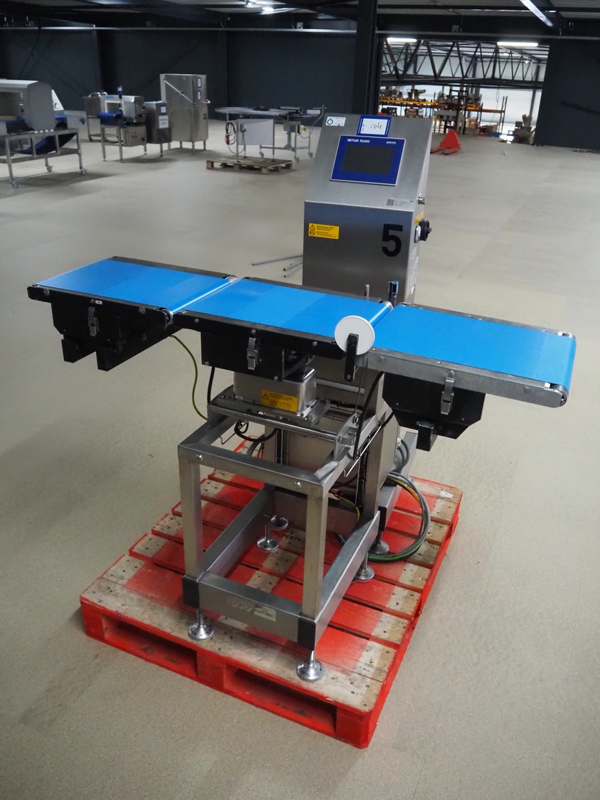 Mettler Toledo Garvens checkweigher, type: XE 3 DMS, fabrication number: 35006719, year of construction: 2016, 100-240 V, 50-60 Hz, maximum weight: 2500 gram, minimum weight: 350 gram, e=d=: 2 gram, T=- 2250 gram, plastic belt, belt width: 280 mm, total dimensions: 1350 mm x 1100 mm x 1700 mm.