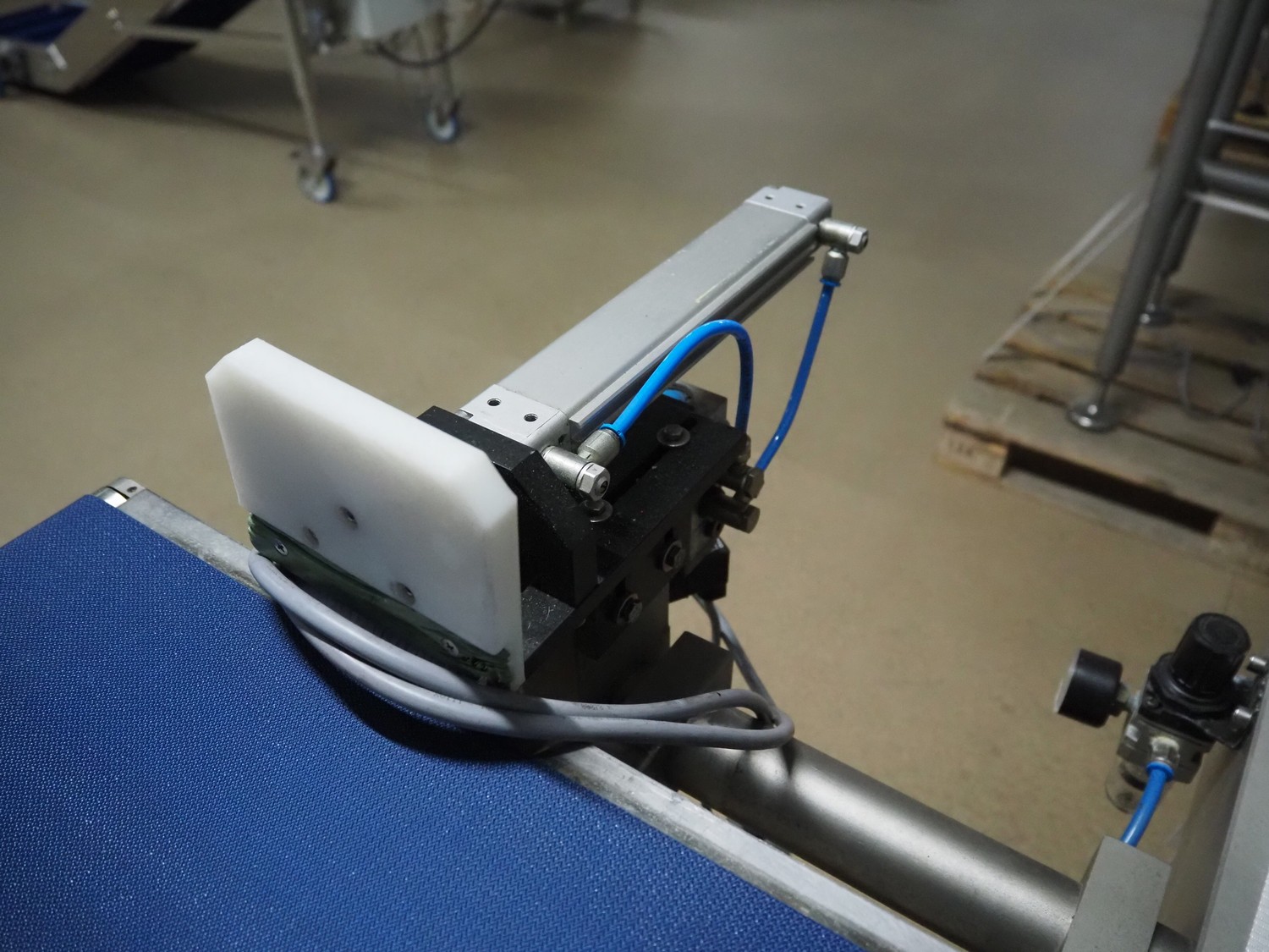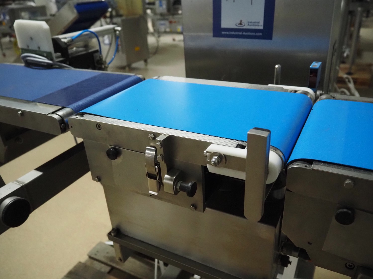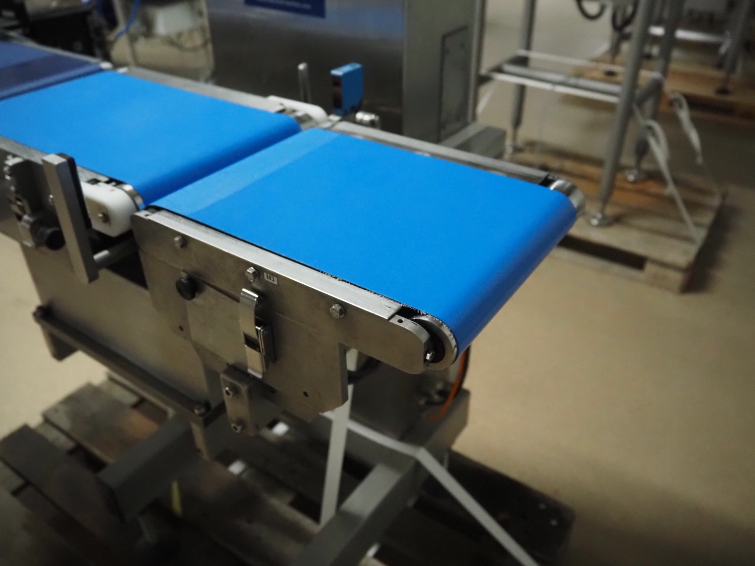 Garvens Automation GmbH checkweigher with rejector, type: S3, serial number: 330078, year of construction: 1999, 230 V, 50 Hz, maximum: 800 gram, minimum: 20 gram, e= 0.5 gram, plastic belt, belt width: 200 mm, total dimensions: 1200 mm x 750 mm x 1500 mm.