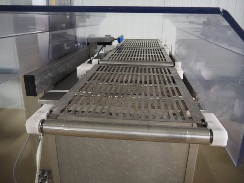 Sartorius checkweigher with rejector, type: EWK3010, number: BO-GC2038AP0027-001, year of construction: 2008, 230 V, 50 Hz, 700 vA, e=d= 0.2 gram, belt width: 300 mm, total dimensions: 1600 mm x 900 mm x 1700 mm. Missing belt.