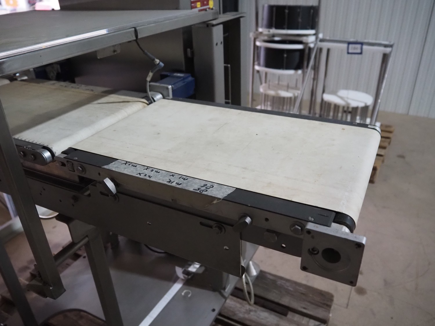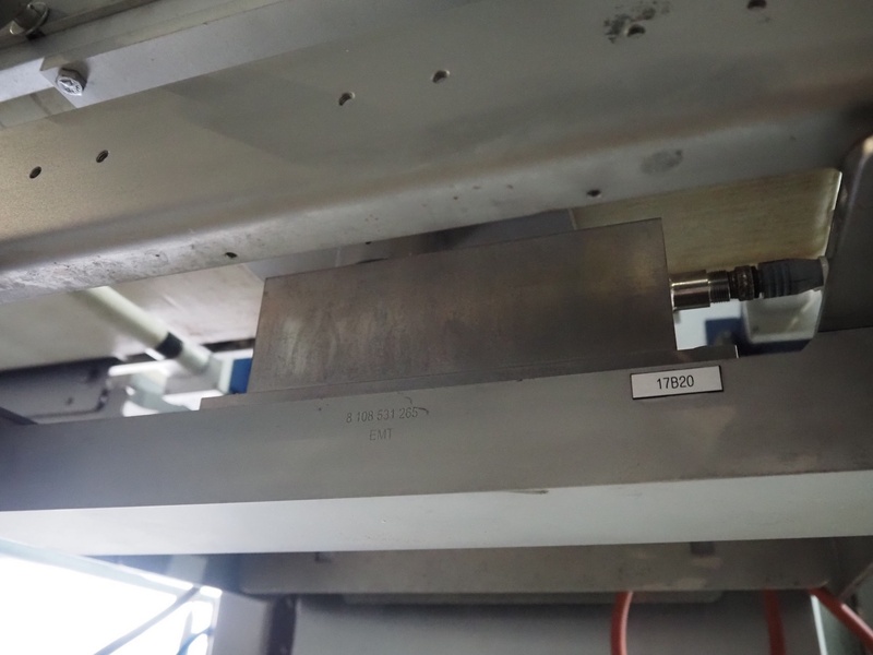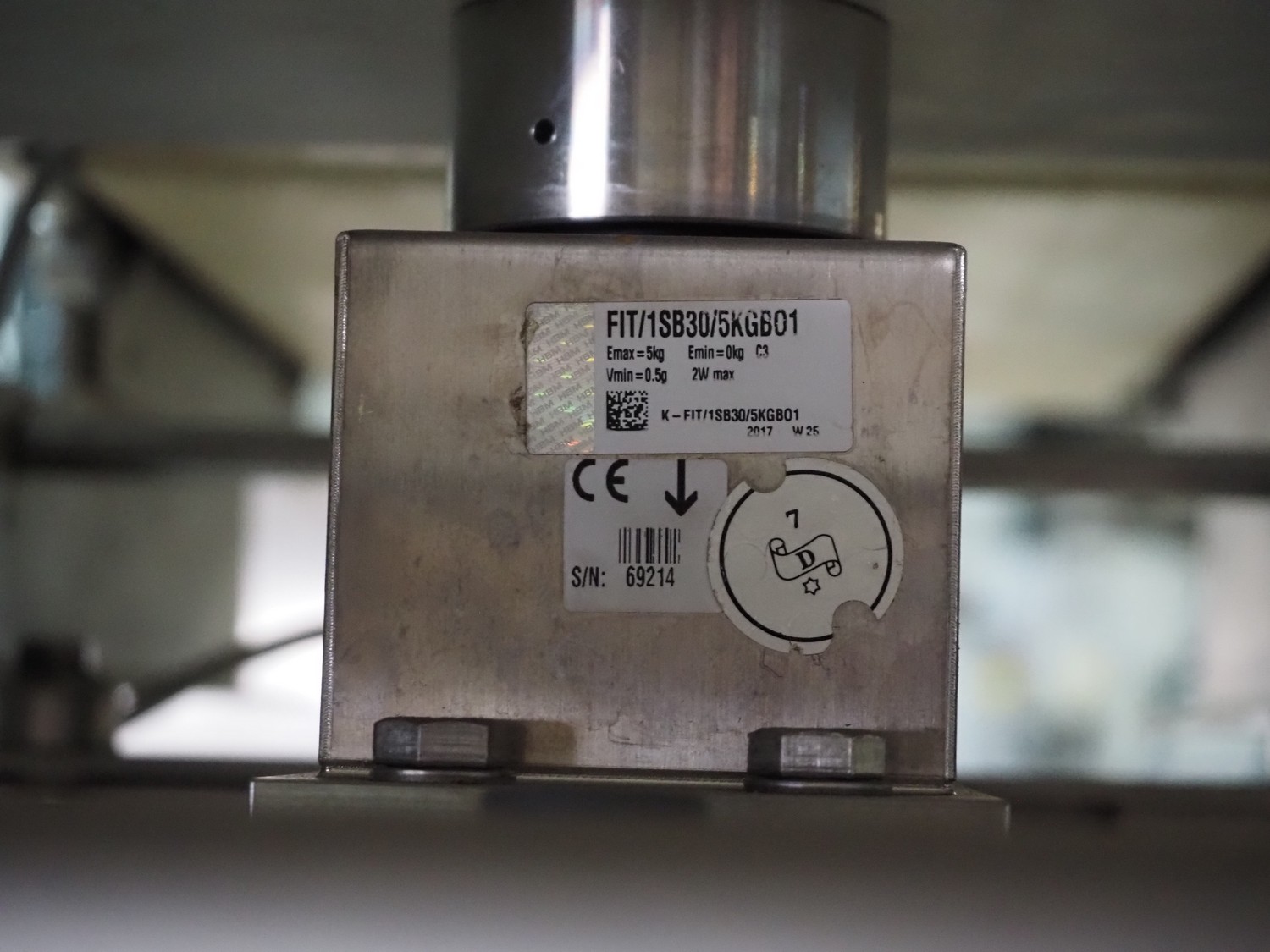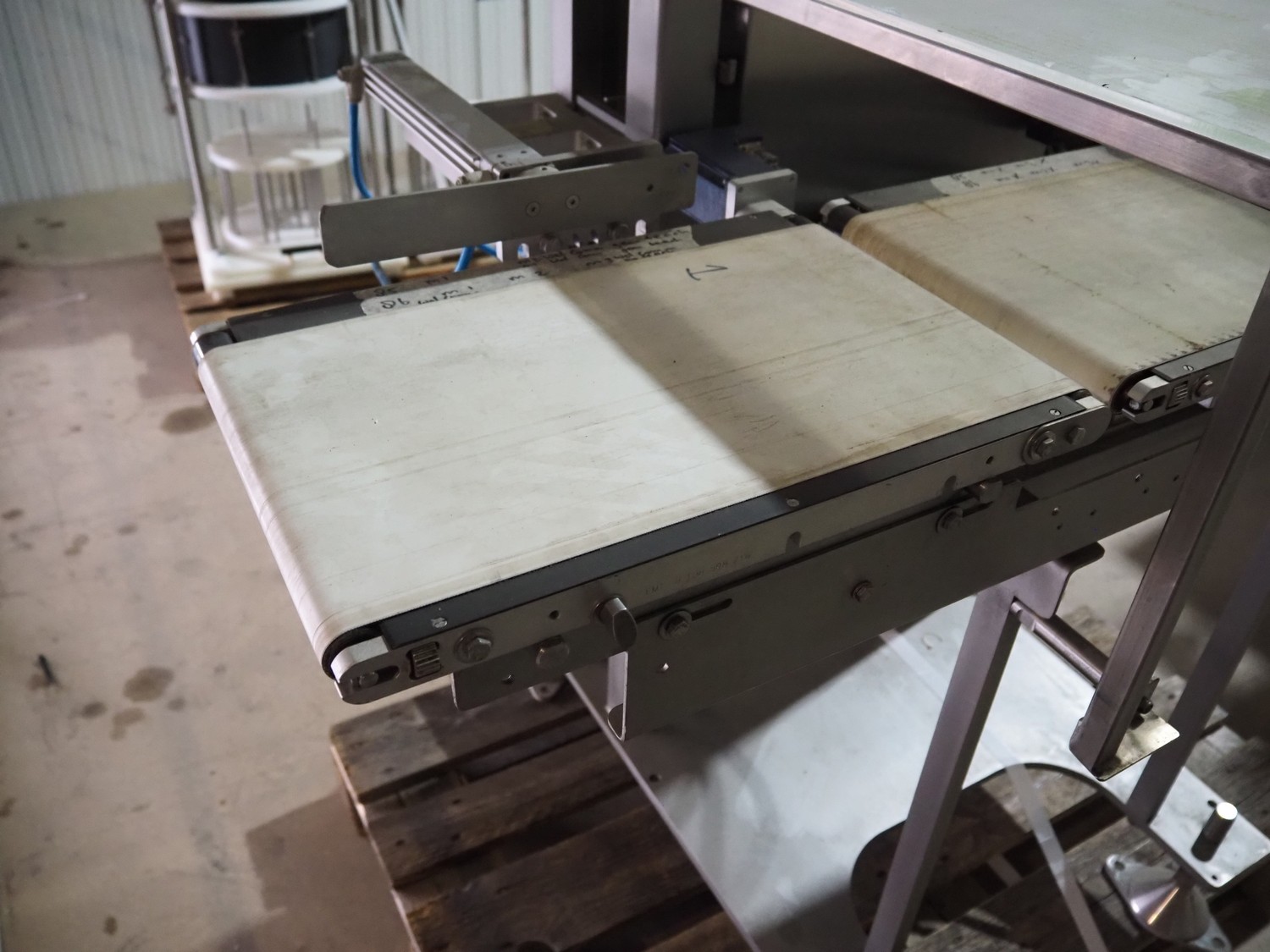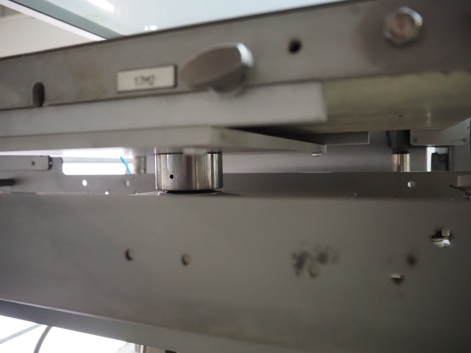 Bosch checkweigher, type: KWE 6000 A, year of construction: 2014, serial number: 721586, 230 V, 50 Hz, 24 VDC, max: 800 gram, min: 80 gram, e= 0.5 gram, plastic belt, belt width: 250 mm, total dimensions: 1200 mm x 800 mm x 1700 mm.