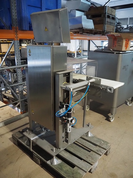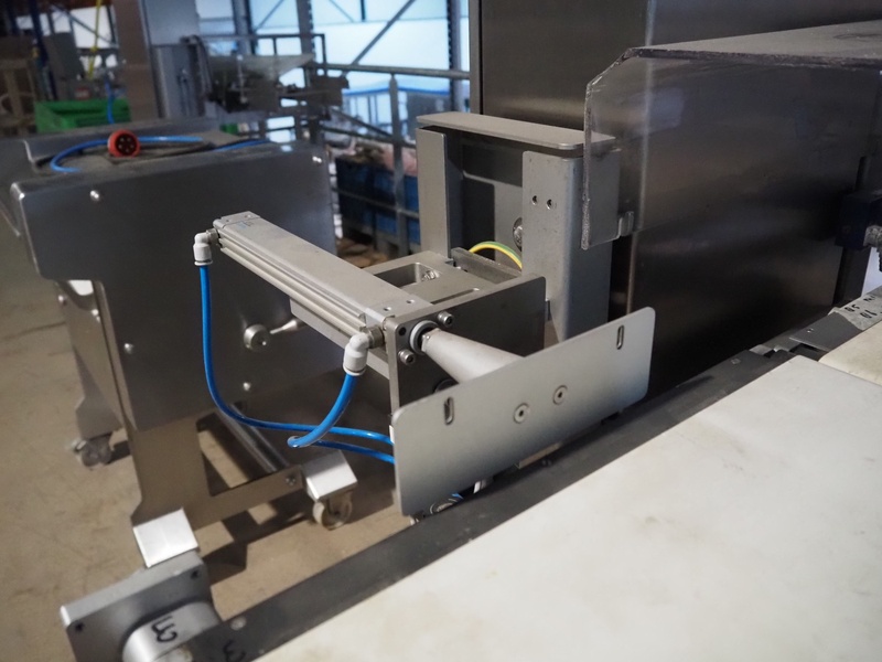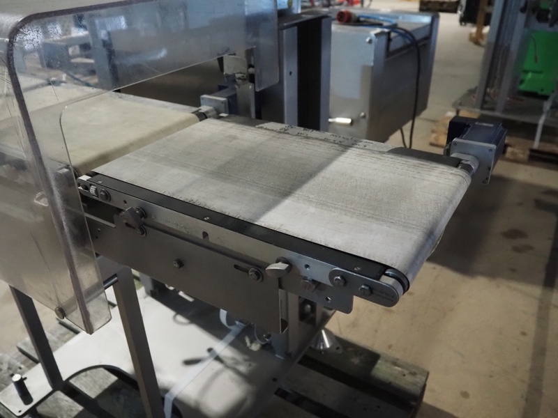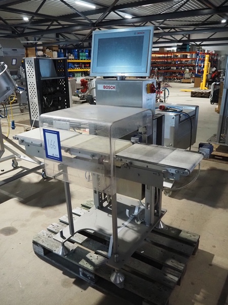 Bosch checkweigher, type: KWE 6000 A, serial number: 732379, year of construction: 2017, 230 V, 50 Hz, 24 VDC, max: 800 gram, min: 100 gram, e= 0.5 gram, plastic belt, belt width: 250 mm, total dimensions: 1200 mm x 800 mm x 1700 mm.