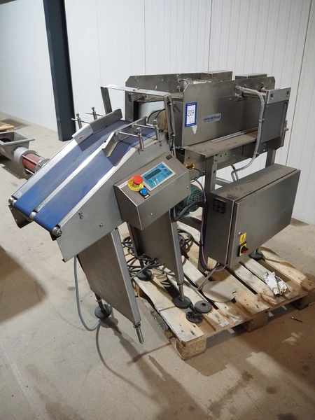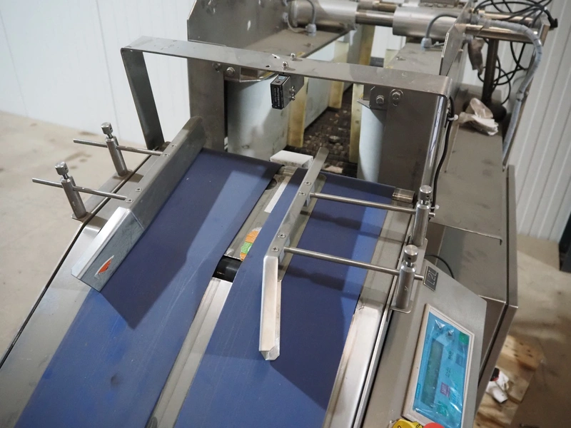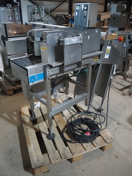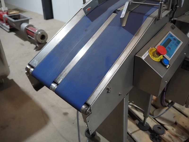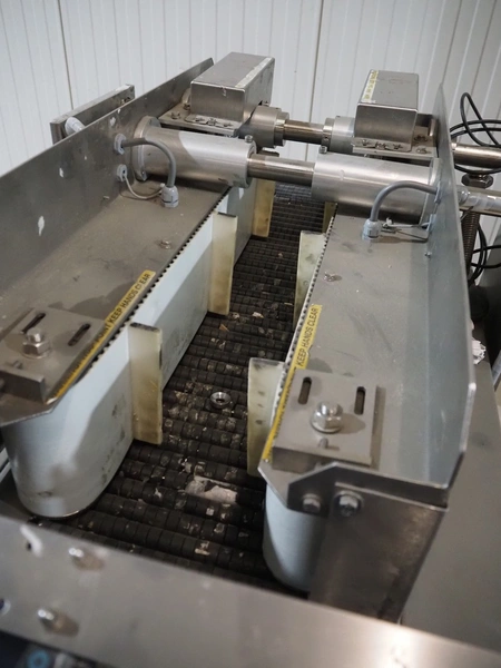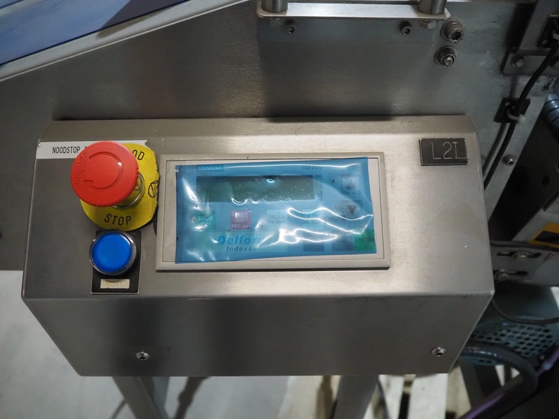 Delford-Sortaweigh Ltd indexer, model: Indexer, serial number: PA0061, year of construction: 2008, 380 V, 3 Ph, 3 A, plastic belts, plastic rollers, roller width: 300 mm, total dimensions: 1700 mm x 700 mm x 1200 mm.