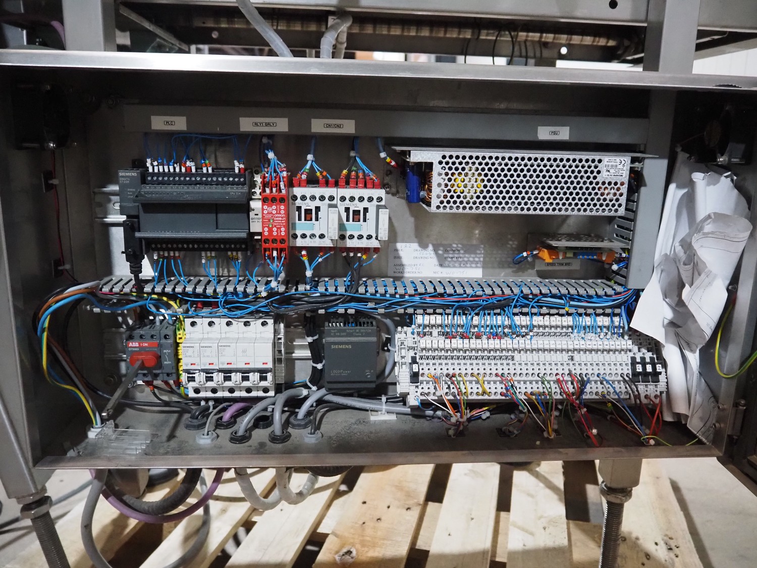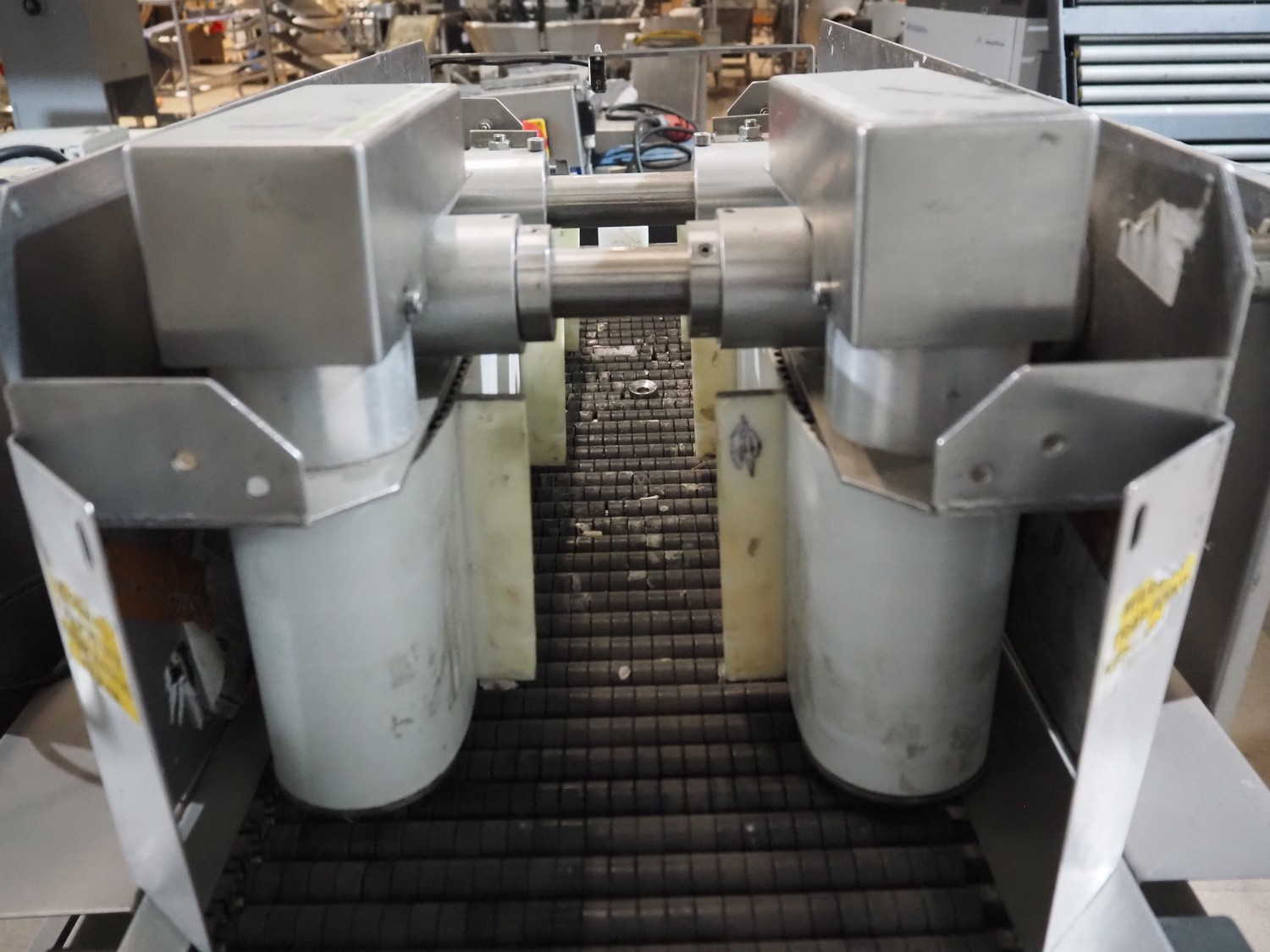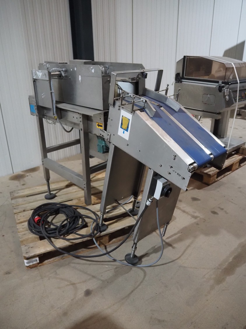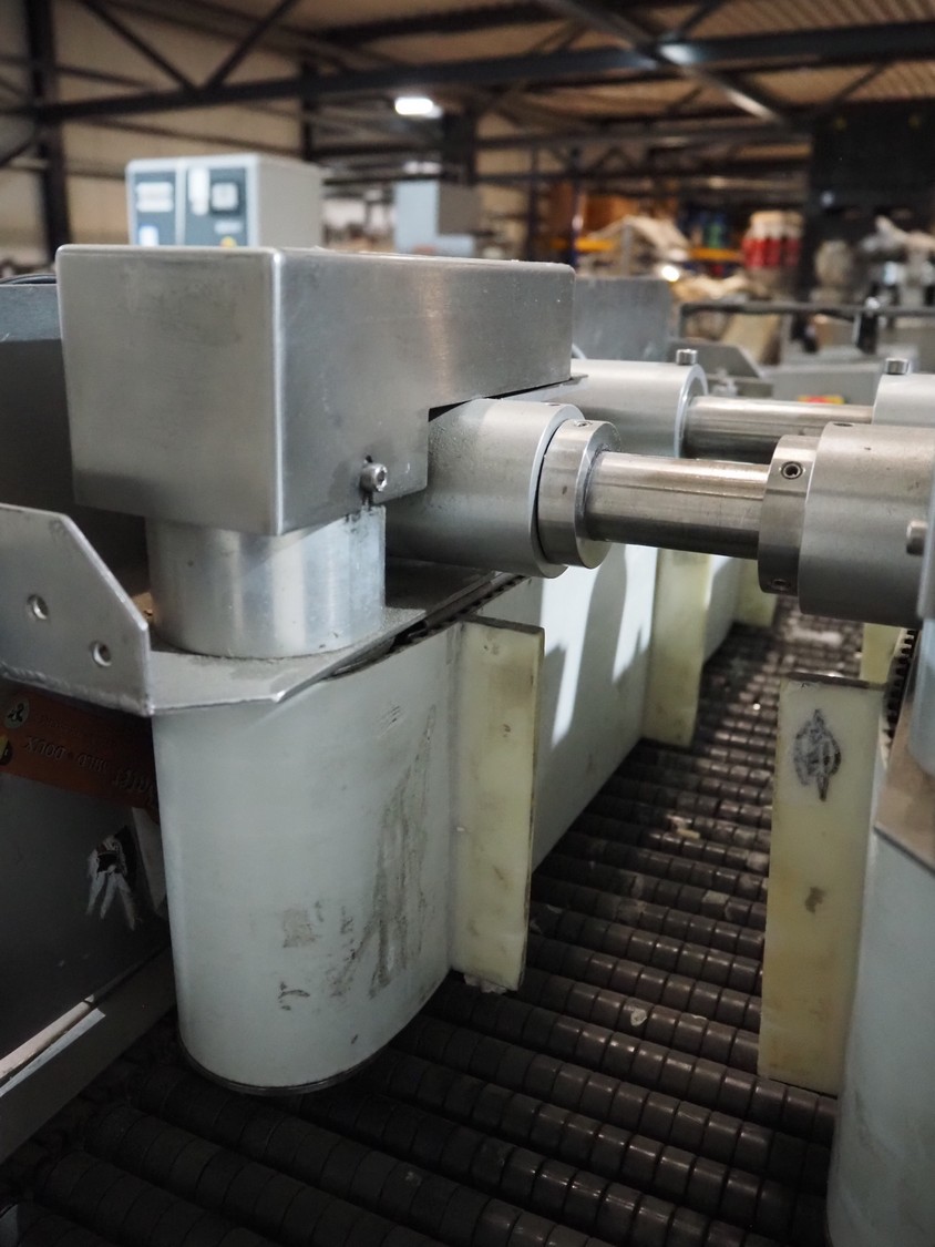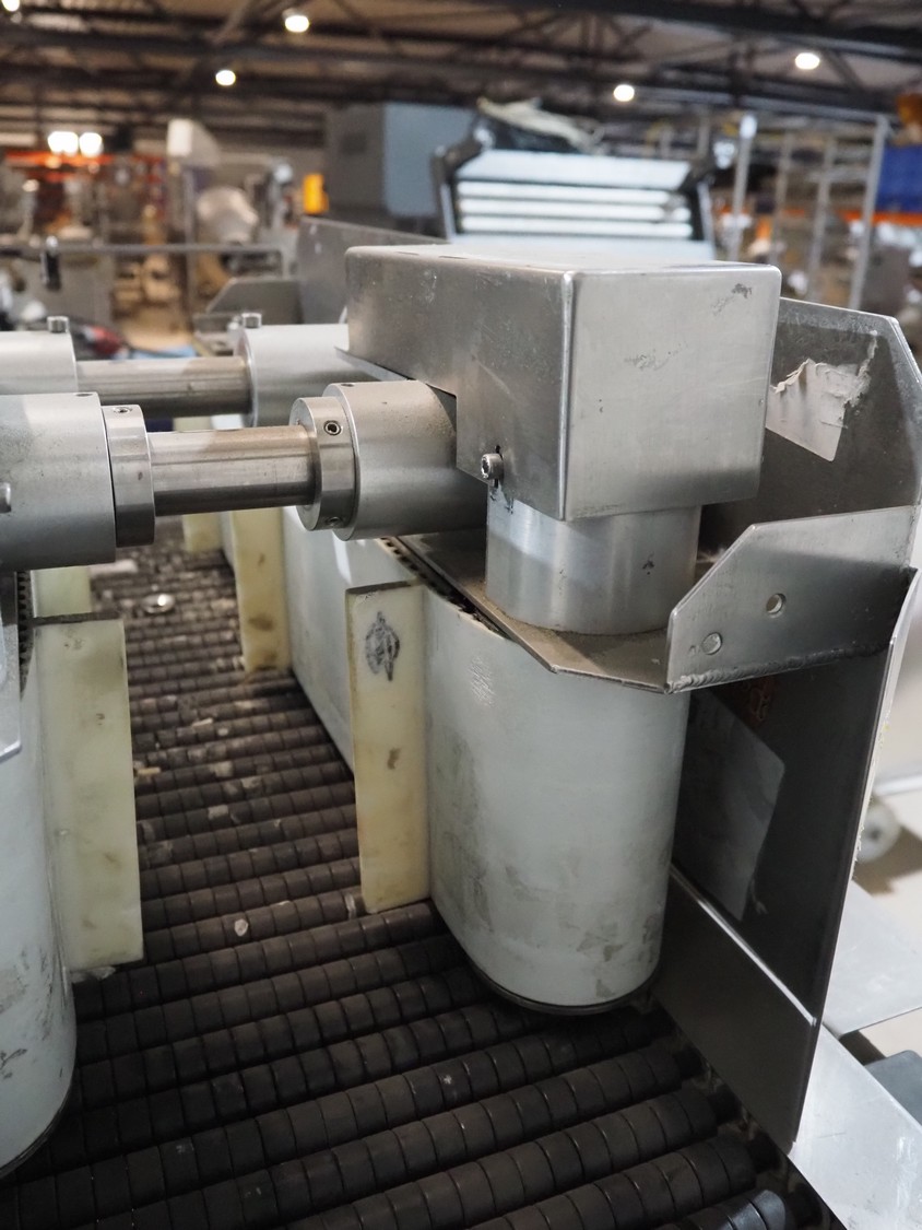 Delford-Sortaweigh Ltd indexer, model: Indexer, serial number: PA0061, year of construction: 2008, 380 V, 3 Ph, 3 A, plastic belts, plastic rollers, roller width: 300 mm, total dimensions: 1700 mm x 700 mm x 1200 mm.