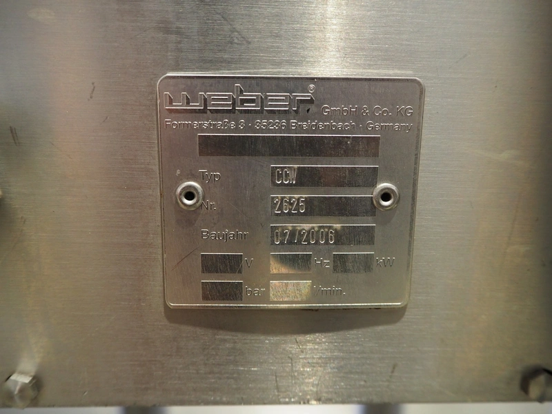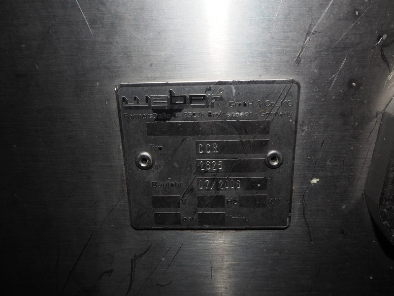 Weber checkweigher with lane dividing belt, type checkweigher: CCW, number: 2625, year of construction: 07/2006, plastic wired belt, belt width: 480 mm, type lane divider: CCR, number: 2625, year of construction: 07/2006, plastic wired belt, belt width: 440 mm, dimensions checkweigher: 750 mm x 500 mm x 1150 mm, dimensions lane divider: 950 mm x 480 mm x 1200 mm.