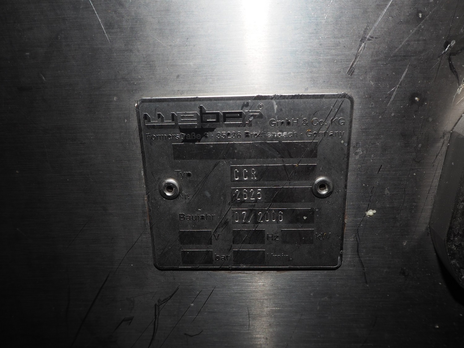 Weber checkweigher with lane dividing belt, type checkweigher: CCW, number: 2625, year of construction: 07/2006, plastic wired belt, belt width: 480 mm, type lane divider: CCR, number: 2625, year of construction: 07/2006, plastic wired belt, belt width: 440 mm, dimensions checkweigher: 750 mm x 500 mm x 1150 mm, dimensions lane divider: 950 mm x 480 mm x 1200 mm.