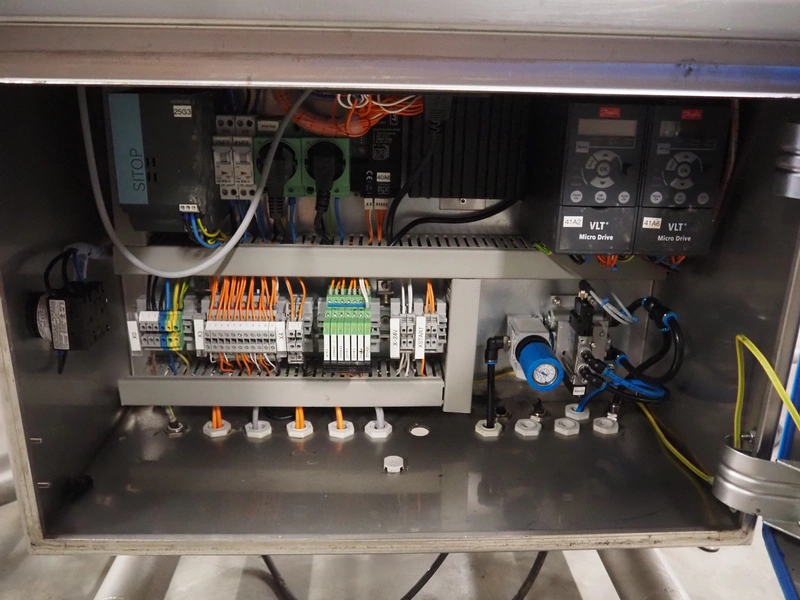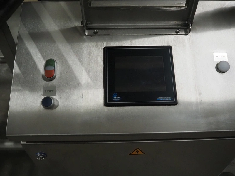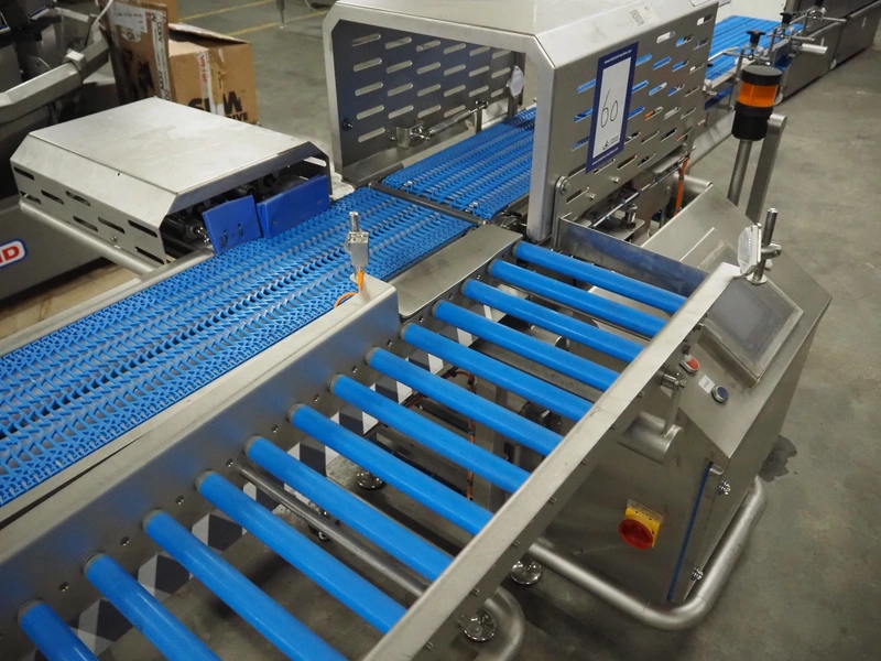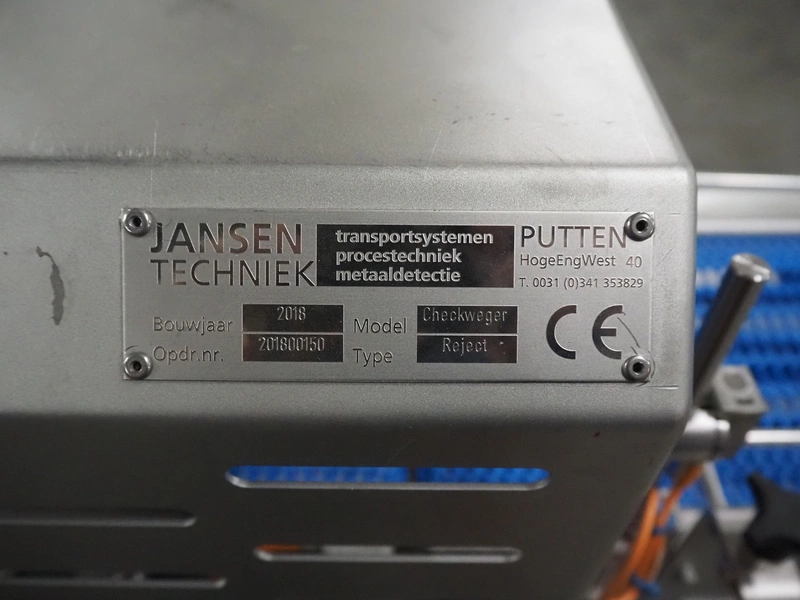 Jansen Techniek checkweigher with rejector, model: checkweigher, type: reject, year of construction: 2018, plastic mesh belt, belt width: 250 mm, clearance: 260 mm x 285 mm, plastic rollers, roller width: 315 mm, total dimensions: 1300 mm x 2550 mm x 1500 mm.