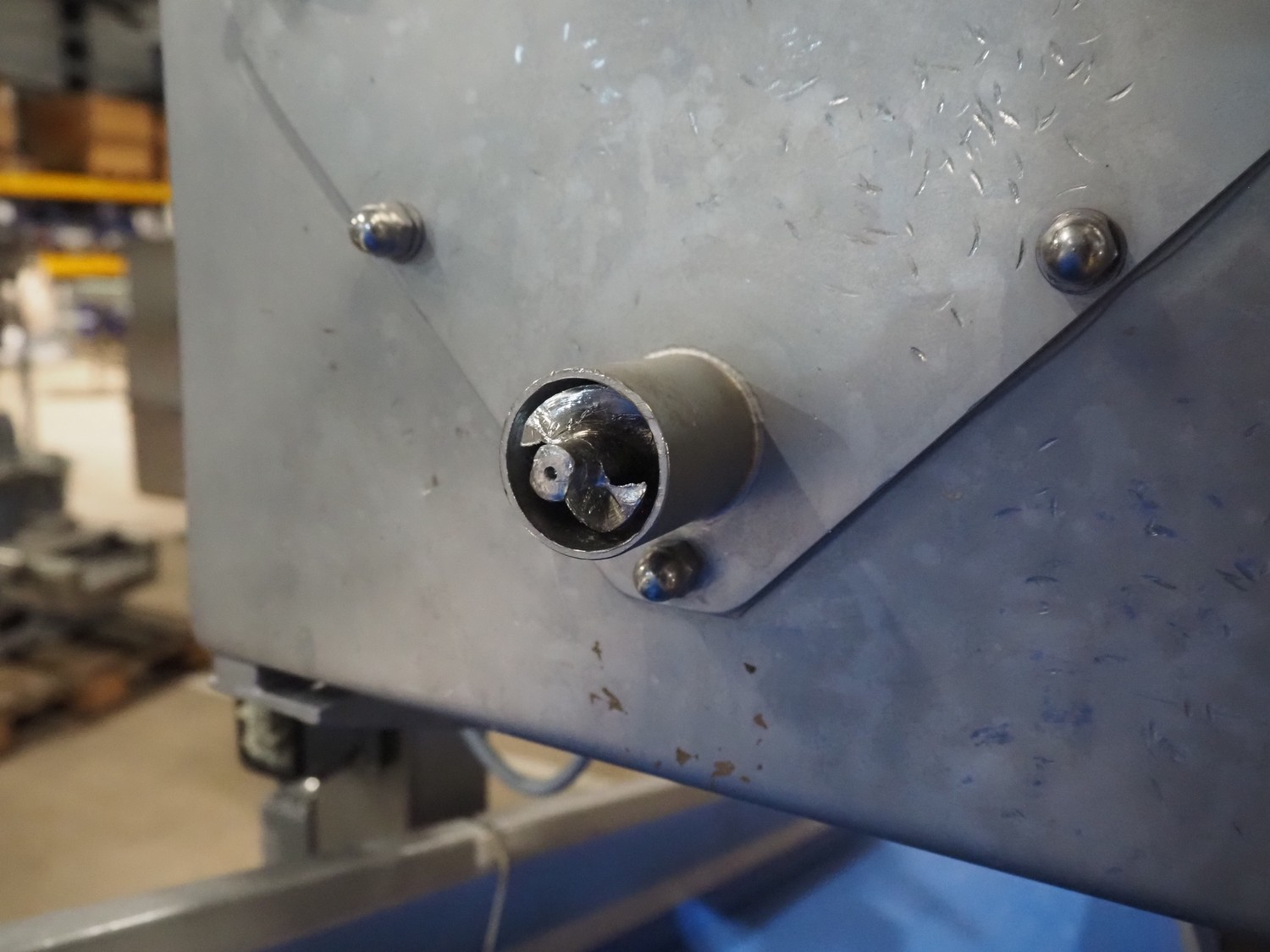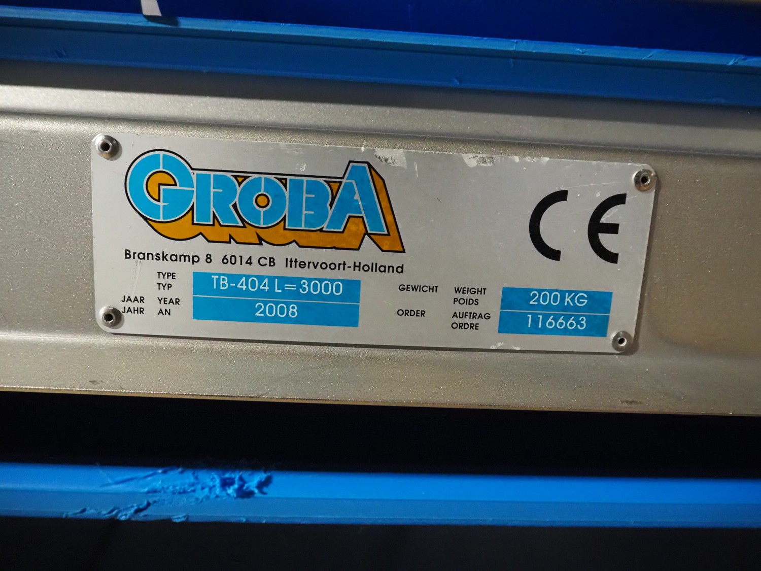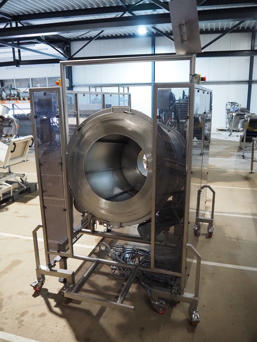 Groba cheese dosing and mixing line consisting of: Groba grated cheese dosing machine with elevating belt, type: PD-90, year of construction: 2008, plastic belt, belt width: 400 mm, elevating height: 1330 mm, total dimensions: 3100 mm x 800 mm x 2350 mm, Groba mobile mixer, type: PM-800, year of construction: 2008, dimensions: 2240 mm x 1340 mm x 2200 mm, Groba mobile elevating belt, type: TB-404 L=3000, year of construction: 2008, plastic belt with dividers, belt width: 400 mm, divider height: 30 mm, distance between dividers: 290 mm, elevating height: 1000 mm, total dimensions: 3000 mm x 680 mm x 1100 mm.