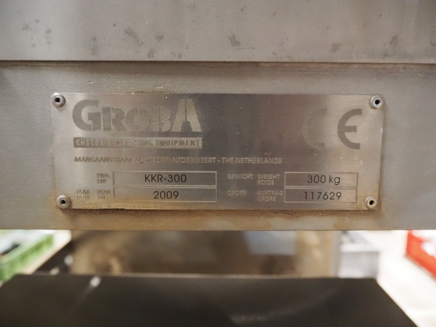 Groba mobile cheese grater mill, type: KKR300, number: 113527, year of construction: 2006, machine weight: 350 kg, total dimensions: 1400 mm x 650 mm x 1790 mm. Including extra grater.