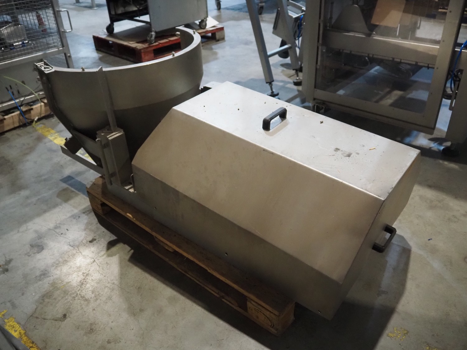 S/s grater, total dimensions: 1700 mm x 900 mm x 600 mm. Incomplete, technical condition unknown.