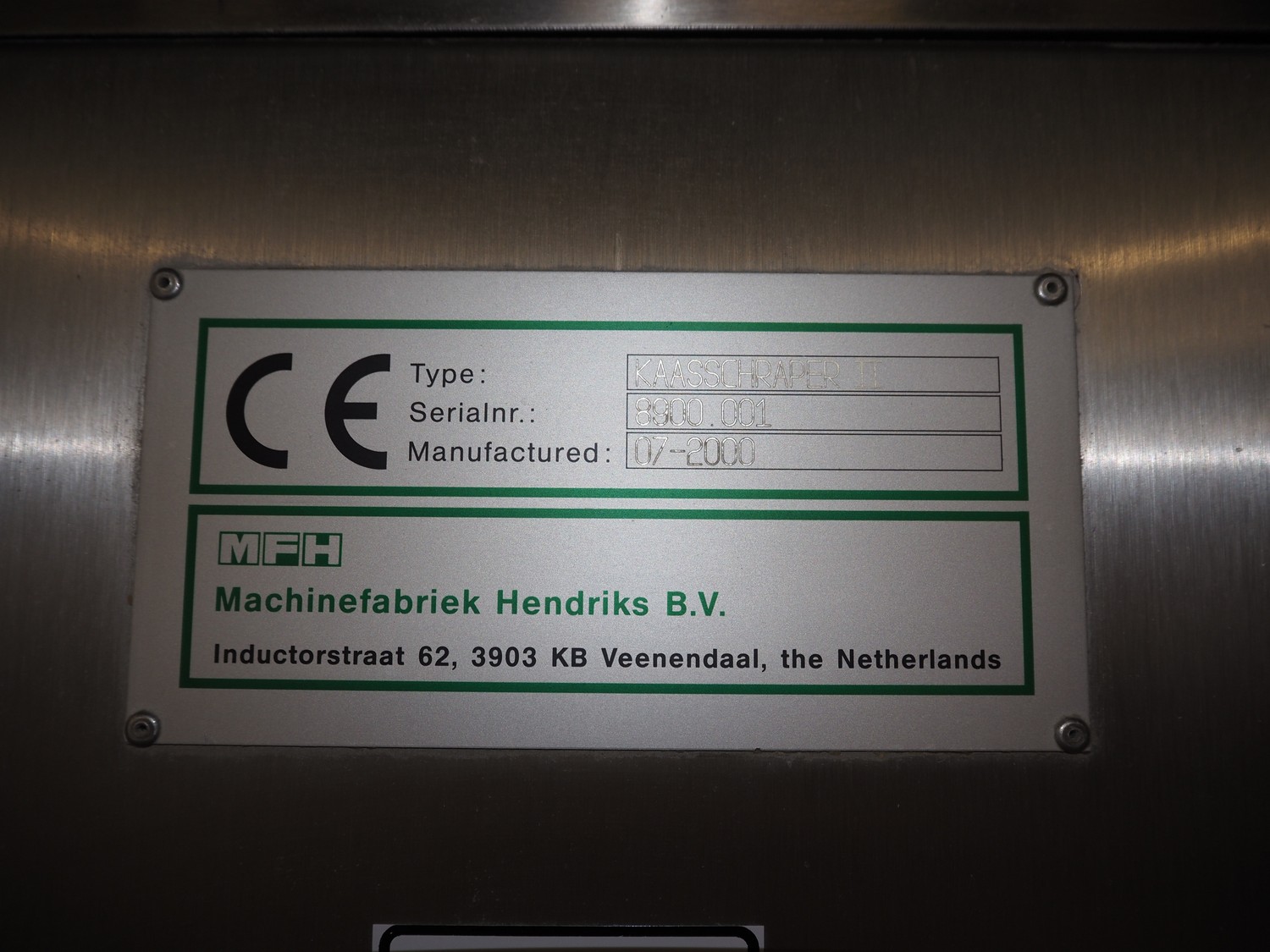 Machinefabriek Hendriks B.V. cheese scraper, type: KAASCHRAPER II, serial number: 8900.001, year of construction: 2000, clearance: 130 mm x 180 mm, total dimensions: 3400 mm x 1500 mm x 2280 mm.