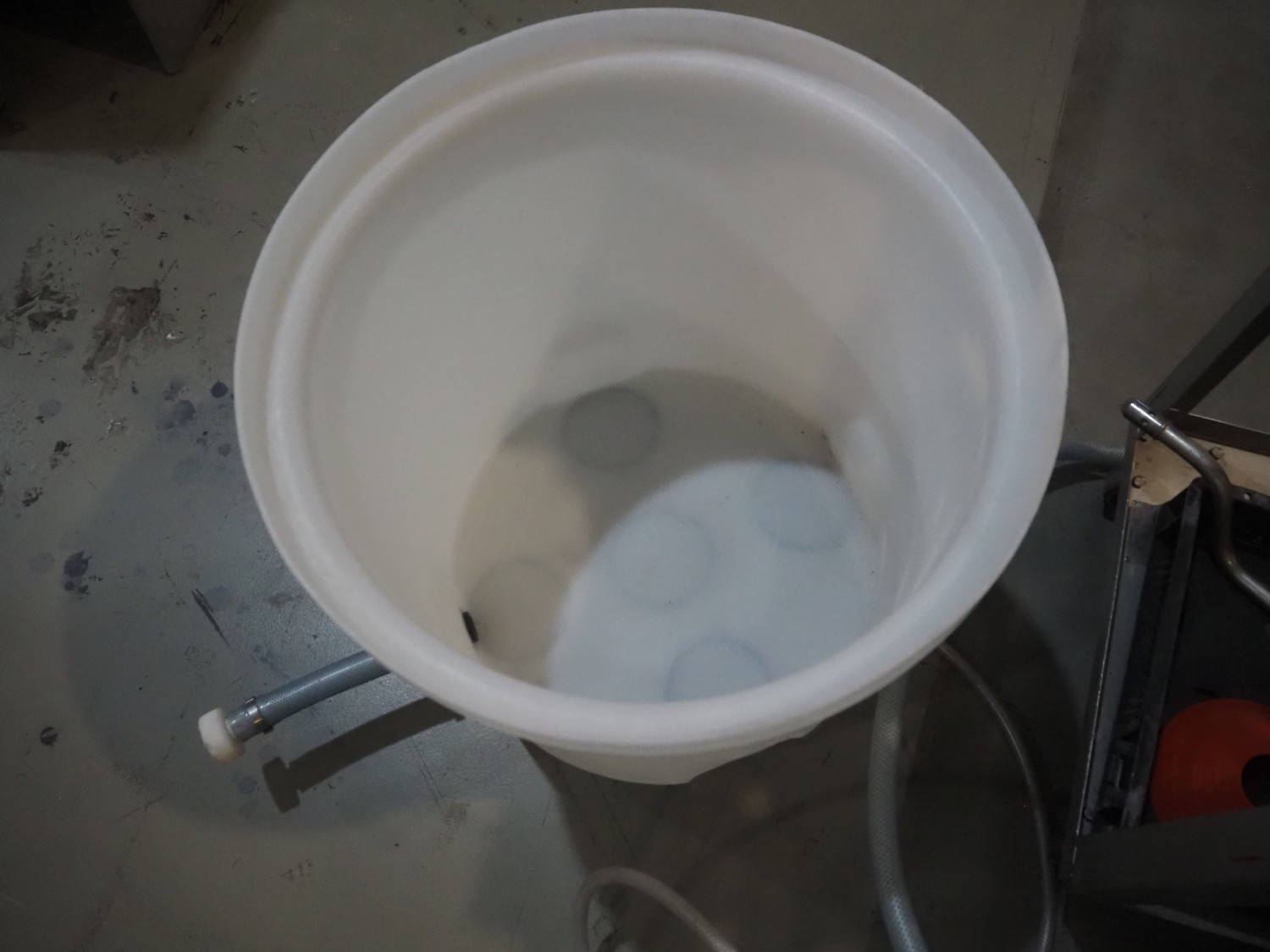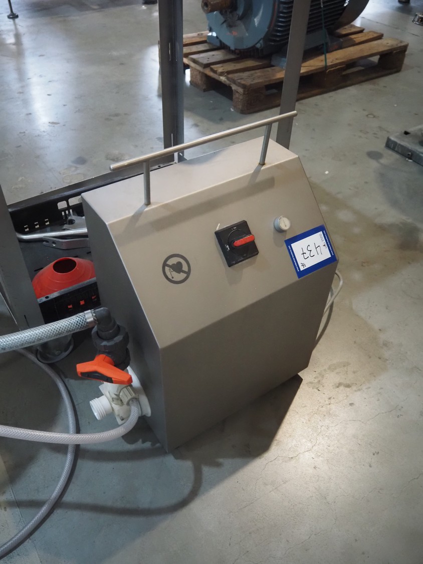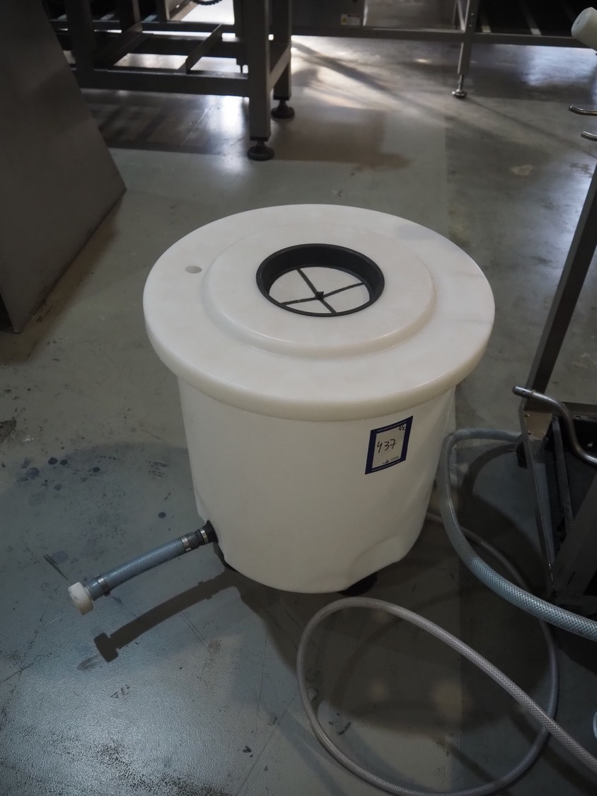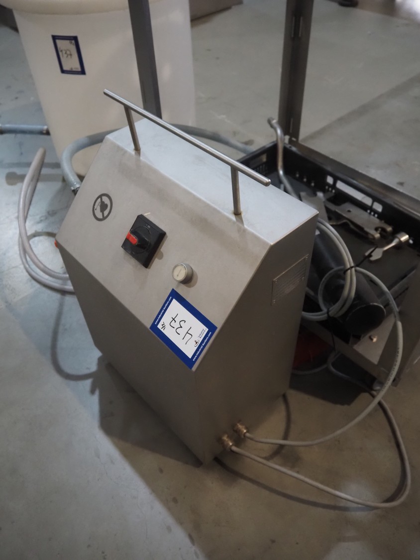 Handtmann coextrusion machine on s/s trolley, type: 150-01, number: 11900653, year of construction: 2019, 400 V, 3 Ph, 50 Hz, 0.9 A, 0.2 kW, dimensions: 950 mm x 700 mm x 1180 mm. With plastic tub, dimensions: Ø 570 mm x 630 mm.