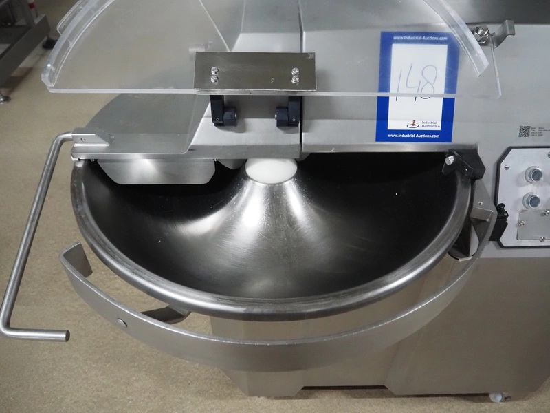 Mainca mobile cutter, model: CM-41, number: 3285, year of construction: 2010, 400 V, 3 Ph, 50 Hz, 19 A, 8.6 kW, s/s bowl, volume bowl: 40 liter, s/s knives, 2 speeds, dimensions: 1300 mm x 900 mm x 1100 mm. Including extra knife set.