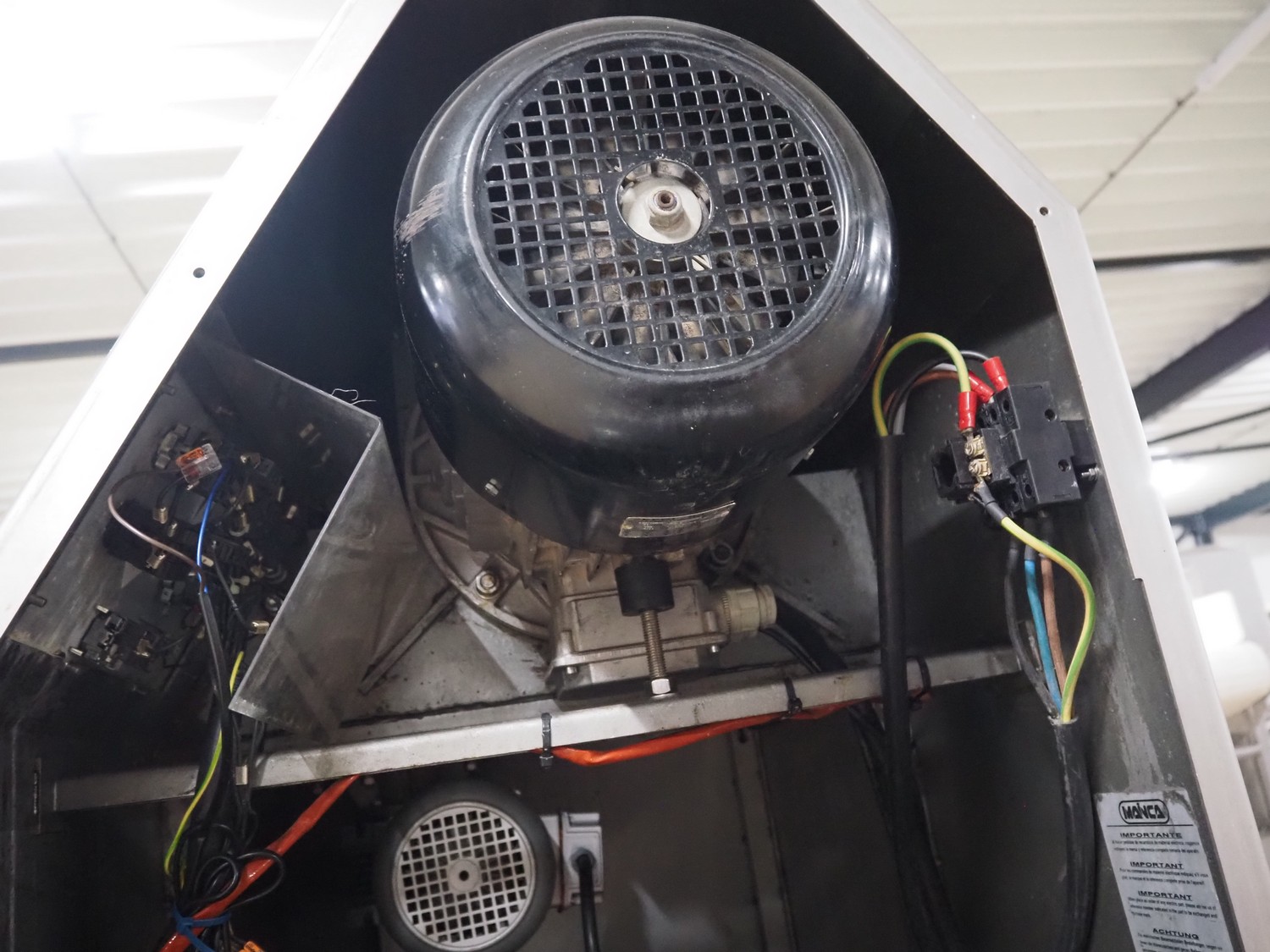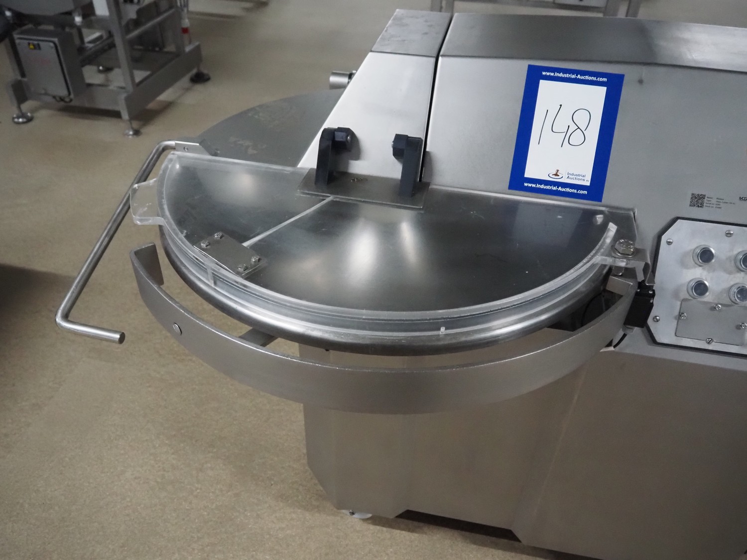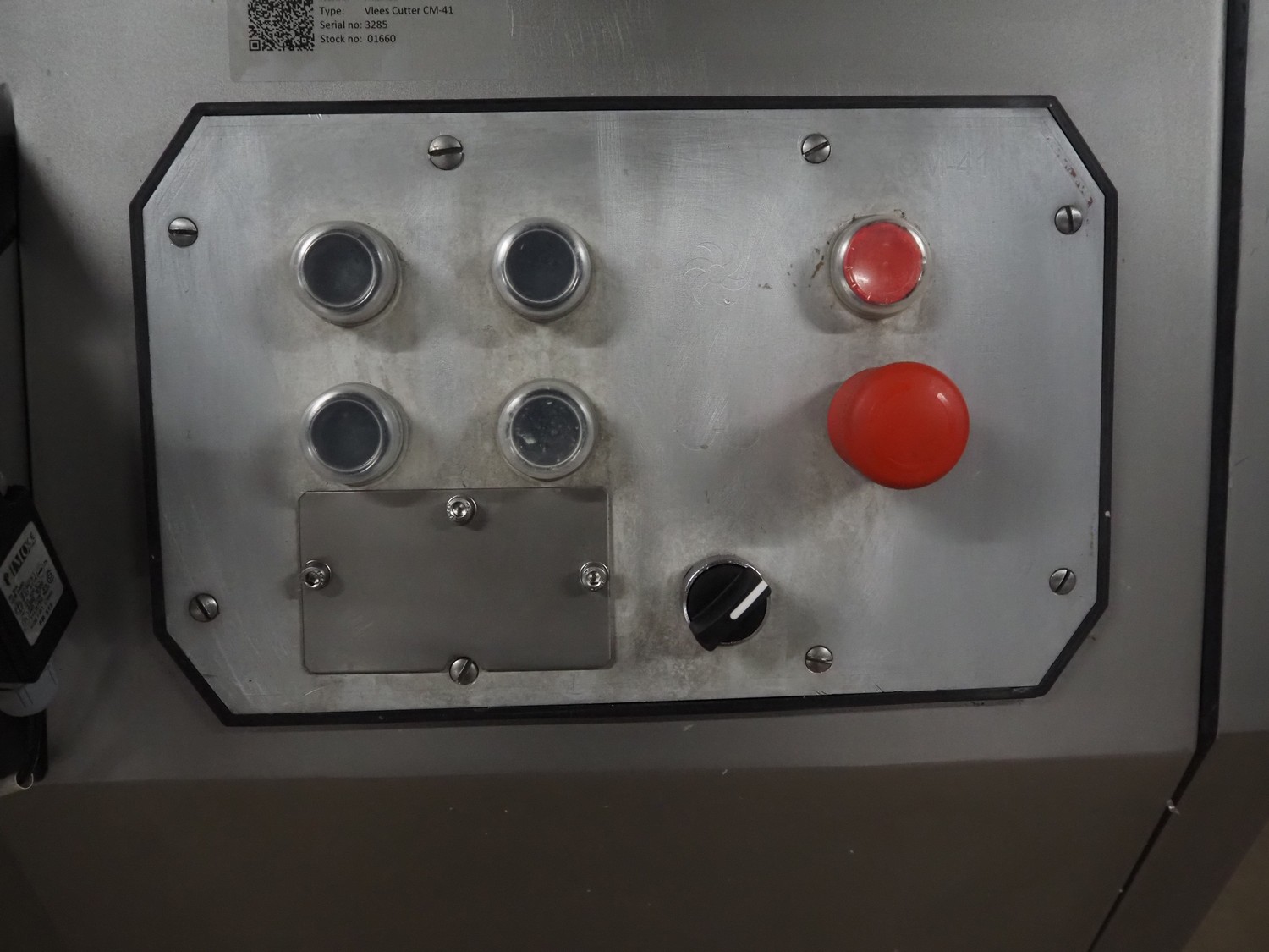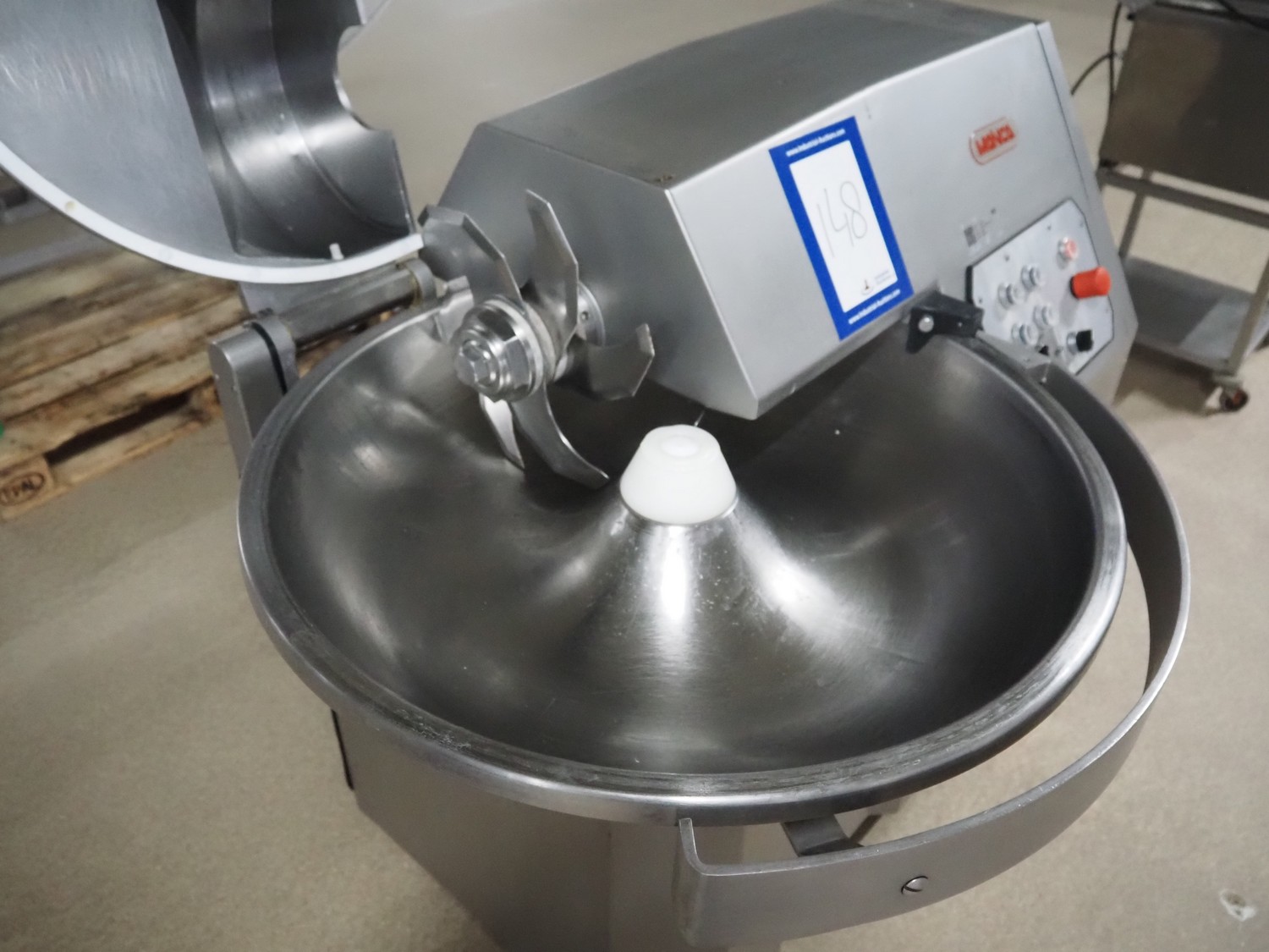 Mainca mobile cutter, model: CM-41, number: 3285, year of construction: 2010, 400 V, 3 Ph, 50 Hz, 19 A, 8.6 kW, s/s bowl, volume bowl: 40 liter, s/s knives, 2 speeds, dimensions: 1300 mm x 900 mm x 1100 mm. Including extra knife set.