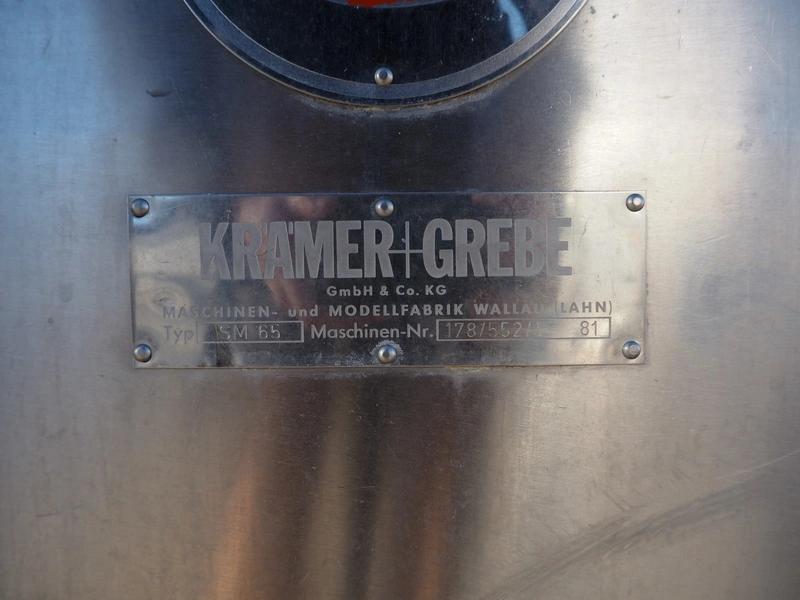 Kramer + Grebe cutter, type: SM 65, number: 178/552/1 81, steel bowl, model: 65 liter, dimensions: 1550 mm x 1300 mm x 1500 mm.