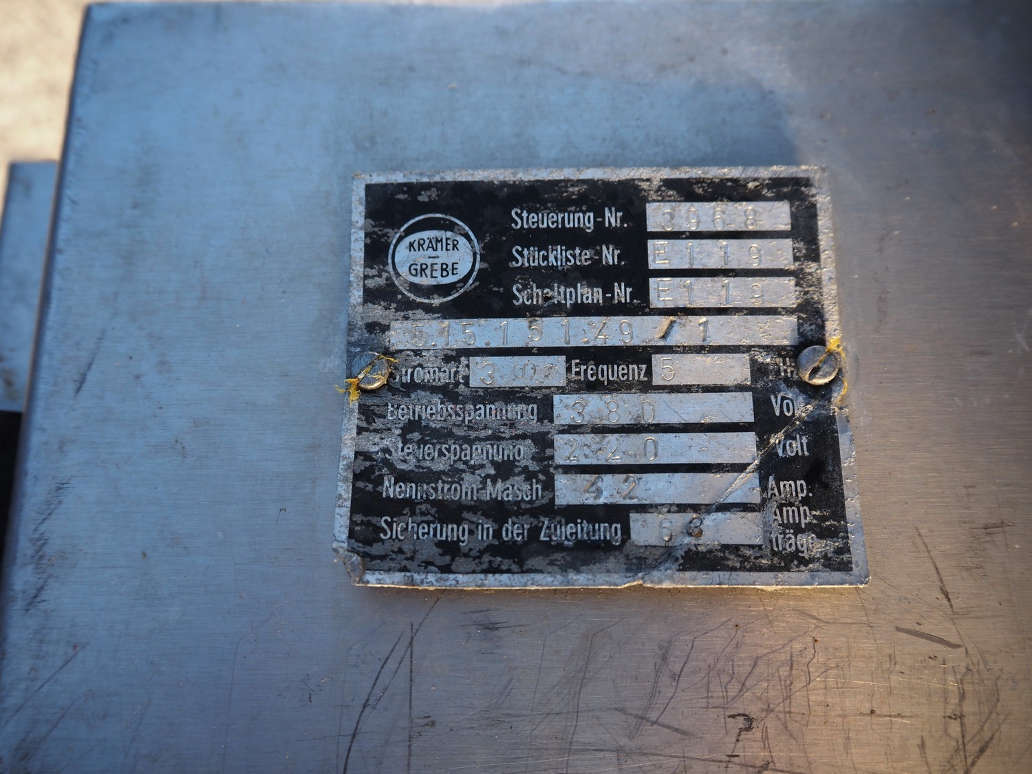 Kramer + Grebe cutter, type: SM 65, number: 178/552/1 81, steel bowl, model: 65 liter, dimensions: 1550 mm x 1300 mm x 1500 mm.