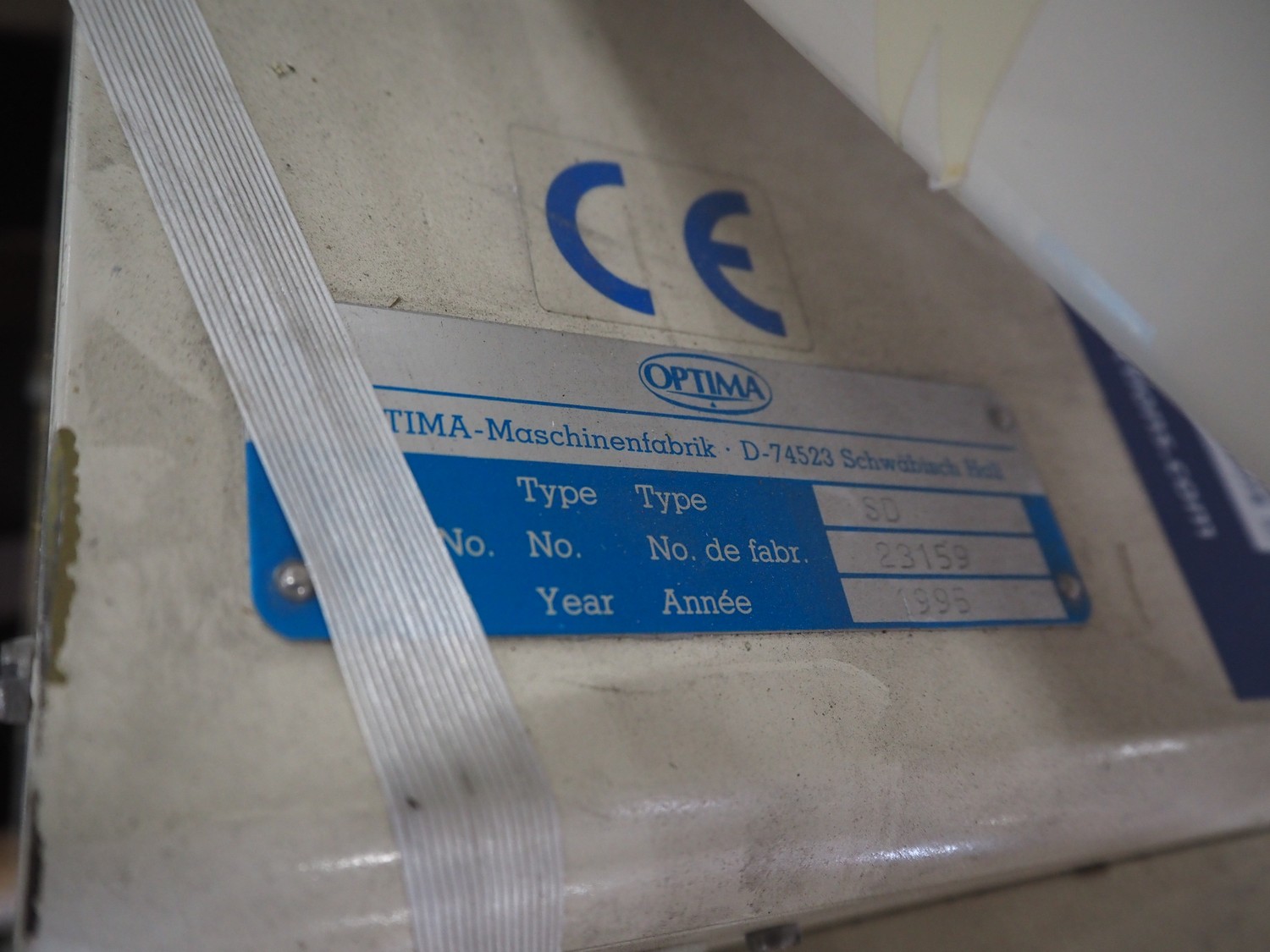Optima powder dosing machine, type: SD, fabrication number: 23159, year of construction: 1995, dimensions: 1200 mm x 800 mm x 1350 mm.