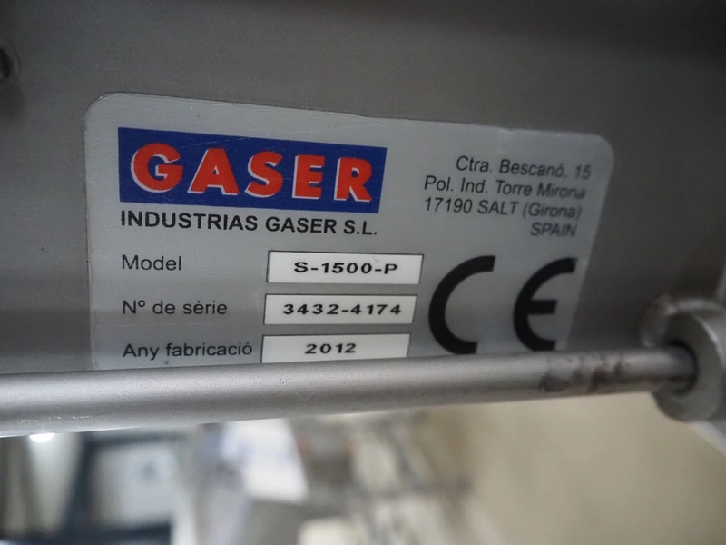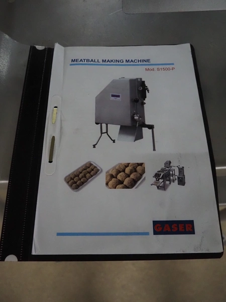 Gaser mobile meat ball forming machine, model: S-1500-P, serial number: 3432-4174, year of construction: 2012, diameter forms: 25 mm, 30 mm and 32.5 mm, total dimensions: 650 mm x 500 mm x 1500 mm.