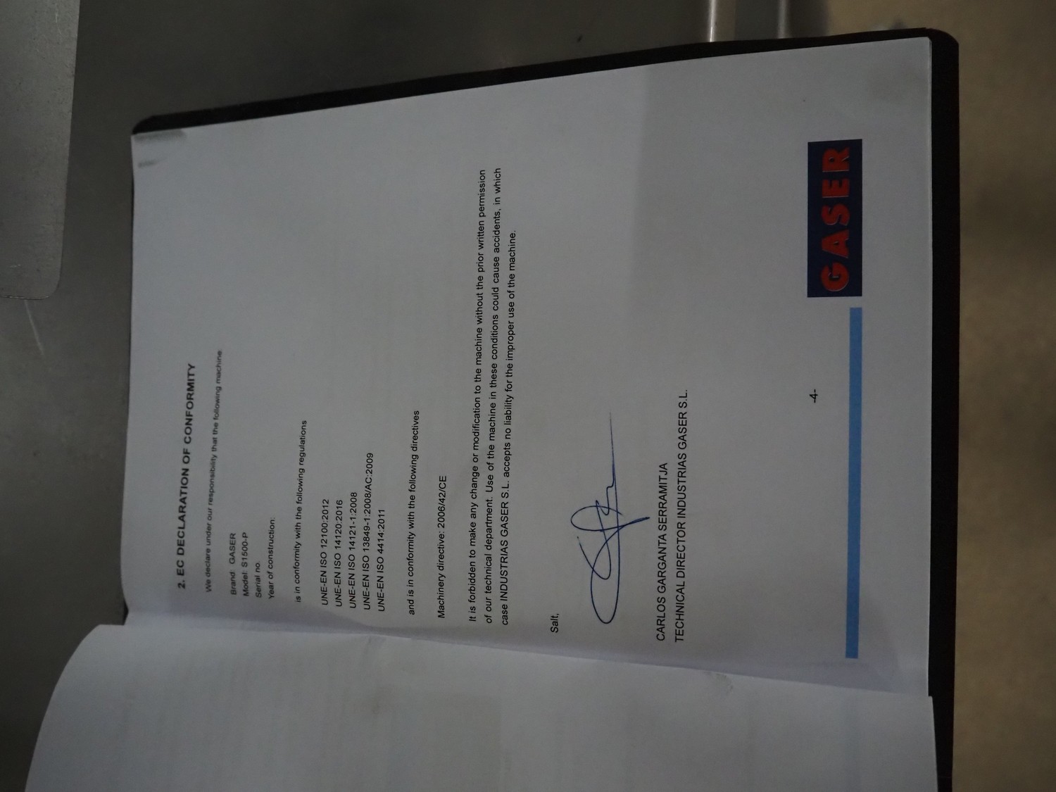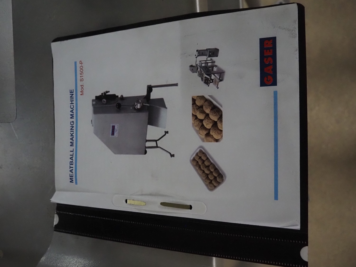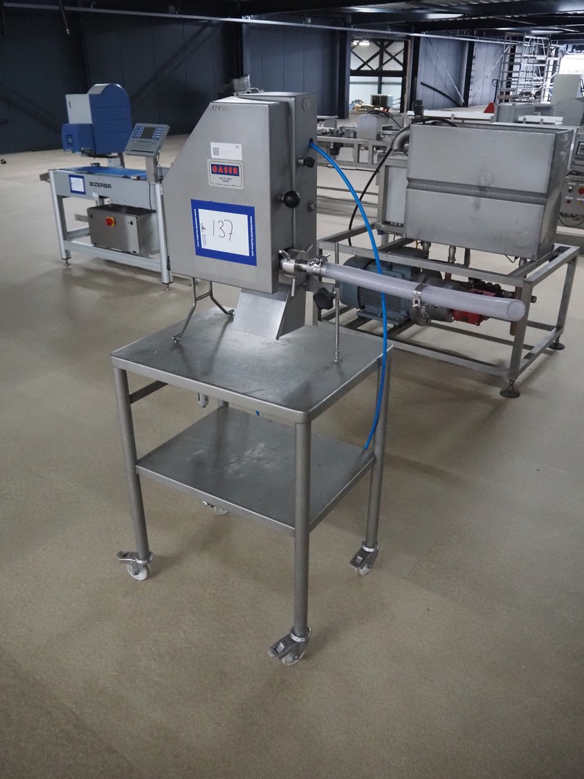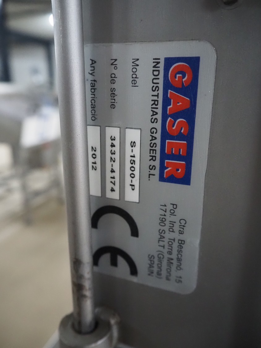 Gaser mobile meat ball forming machine, model: S-1500-P, serial number: 3432-4174, year of construction: 2012, diameter forms: 25 mm, 30 mm and 32.5 mm, total dimensions: 650 mm x 500 mm x 1500 mm.