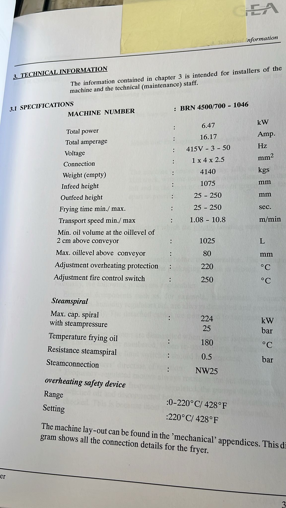 Tetra Laval Food belt fryer, type: BRN 4500/700, machine number: BRN4500/700-1046, year of construction: 1995, 415 V, 3 Ph, 50 Hz, 17.87 A, 6.47 kW, weight: 4140 kg, s/s belt, belt width: 700 mm, total dimensions: 8300 mm x 2000 mm x 3450 mm. Including s/s mobile filter tub, dimensions: 1300 mm x 750 mm x 500 mm.