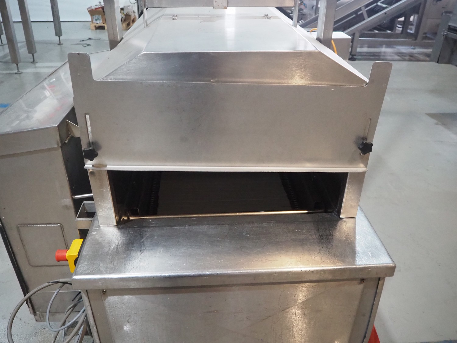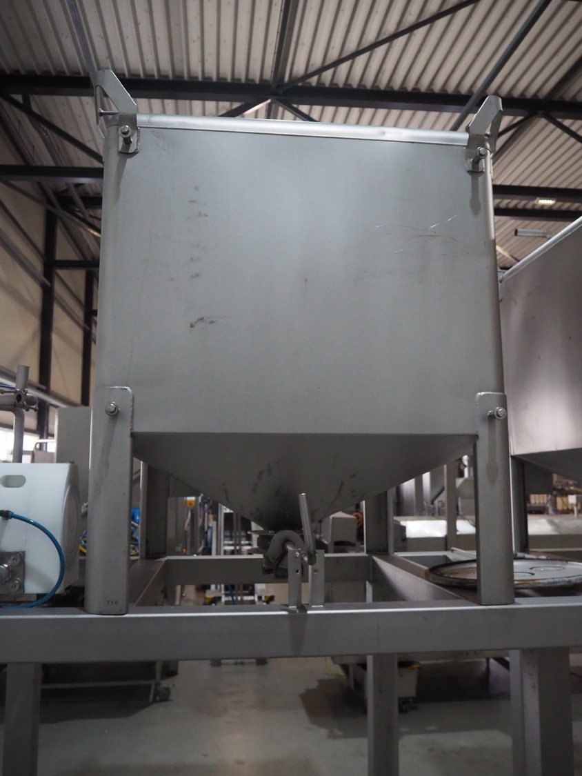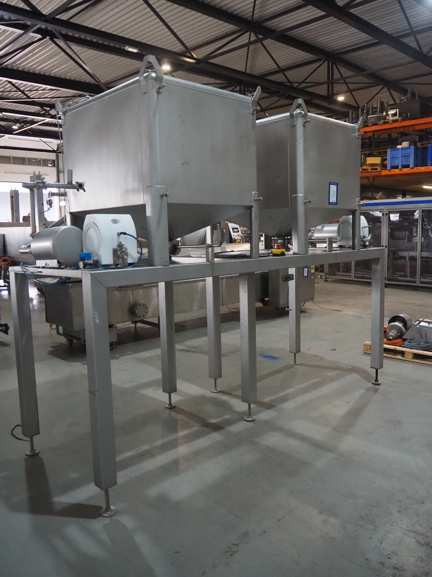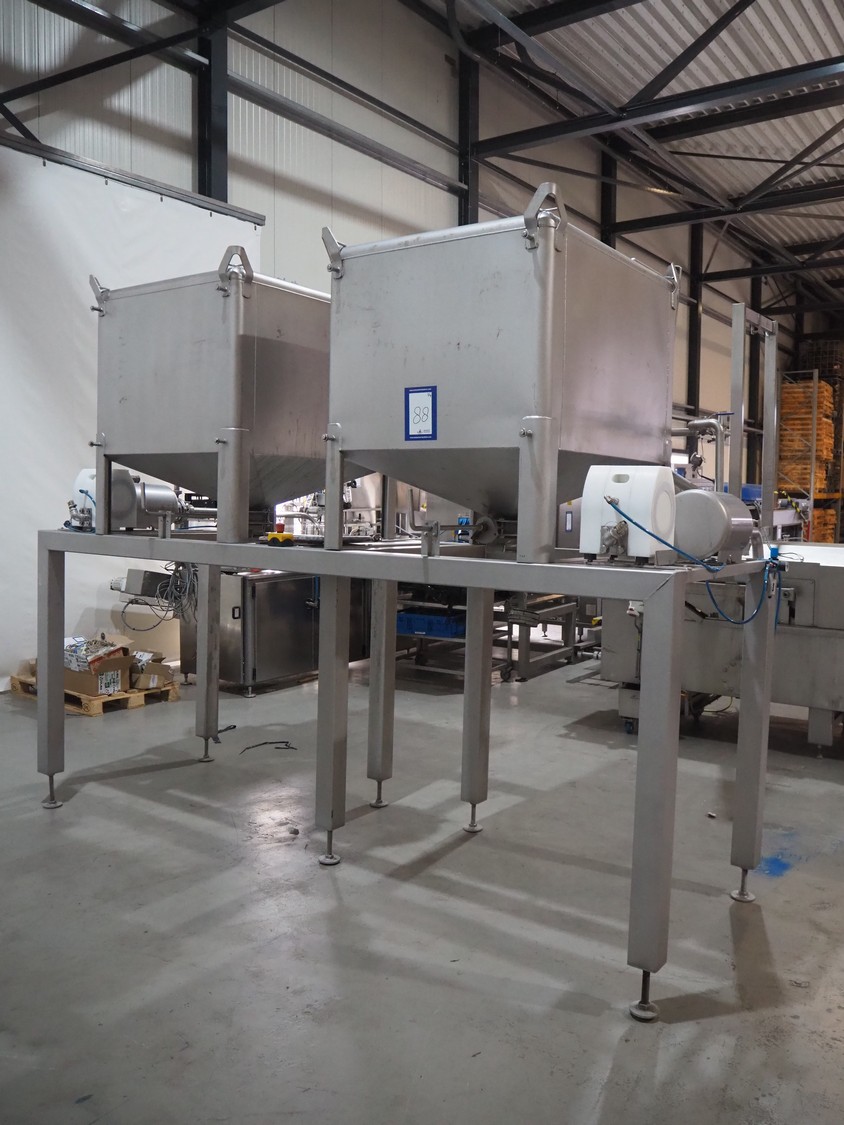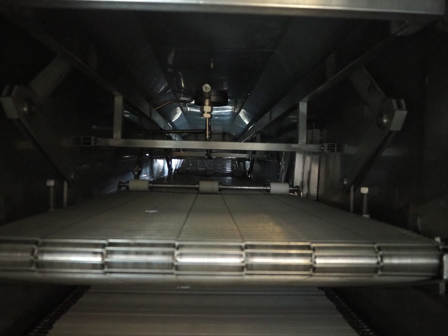 Koppens belt fryer, s/s mesh belt, belt width: 600 mm, total dimensions: 5500 mm x 1400 mm x 2950 mm. With Buls system and s/s frame with 2 silos for oil and pallet with switch cabinet and hoists.