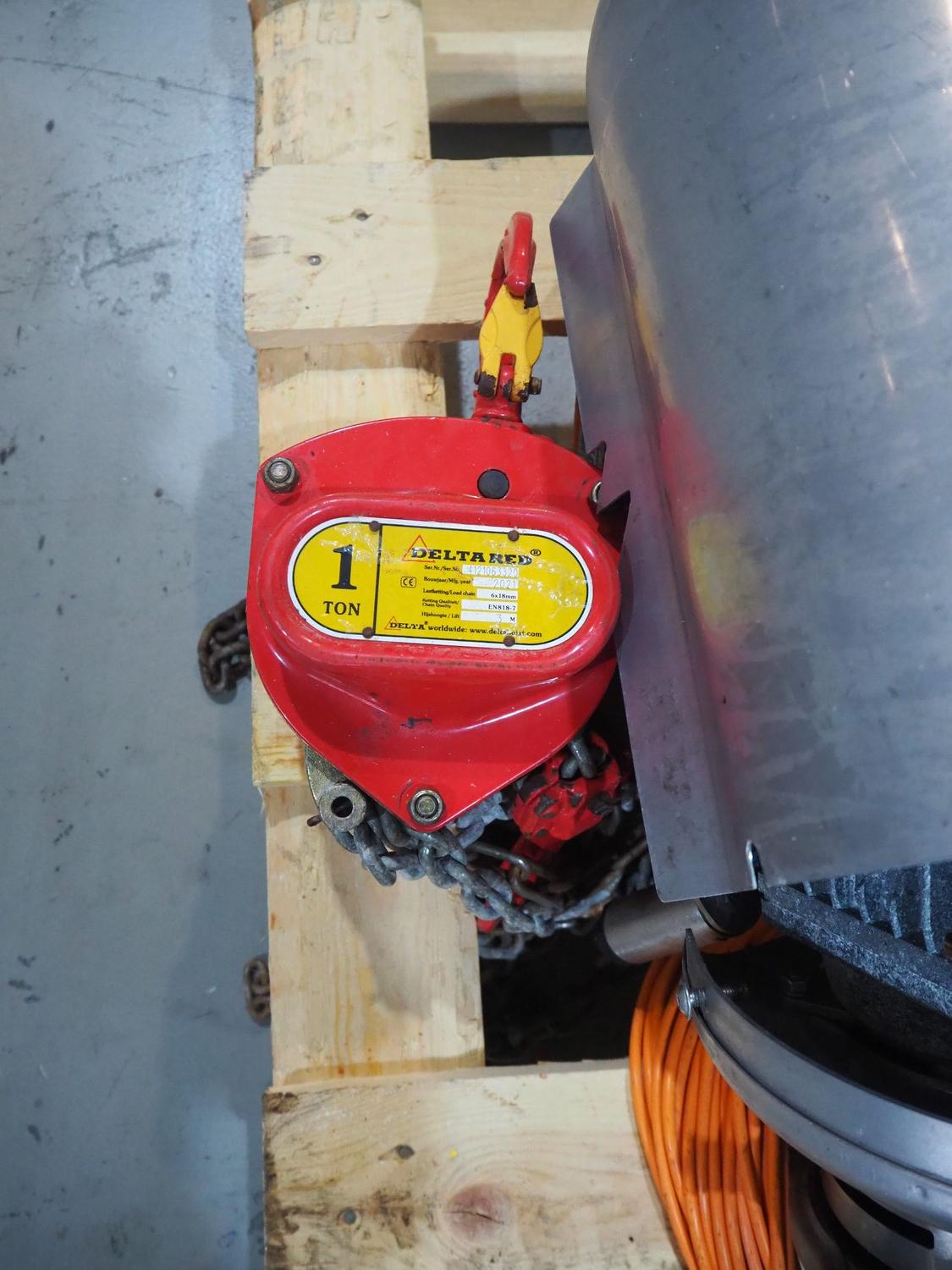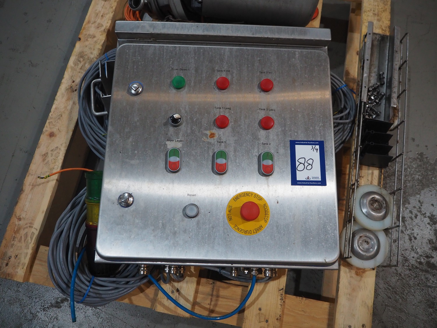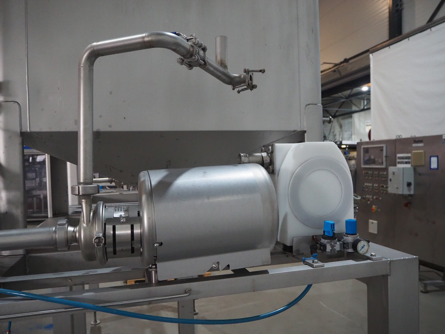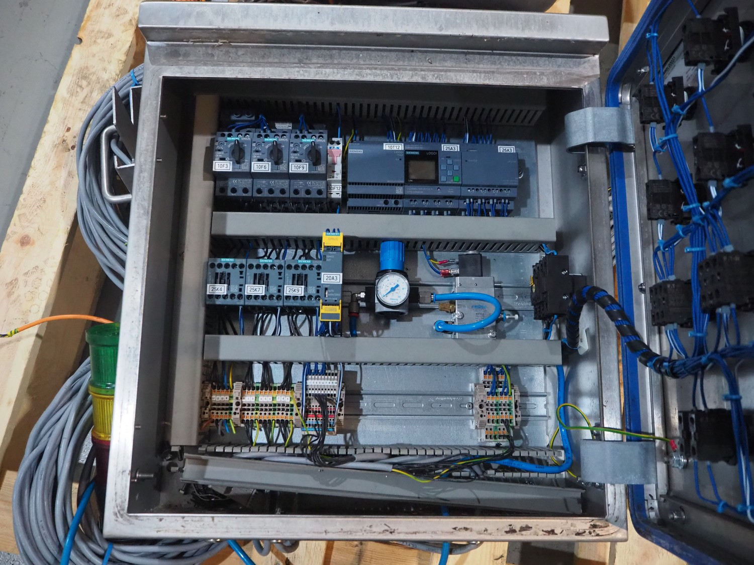 Koppens belt fryer, s/s mesh belt, belt width: 600 mm, total dimensions: 5500 mm x 1400 mm x 2950 mm. With Buls system and s/s frame with 2 silos for oil and pallet with switch cabinet and hoists.