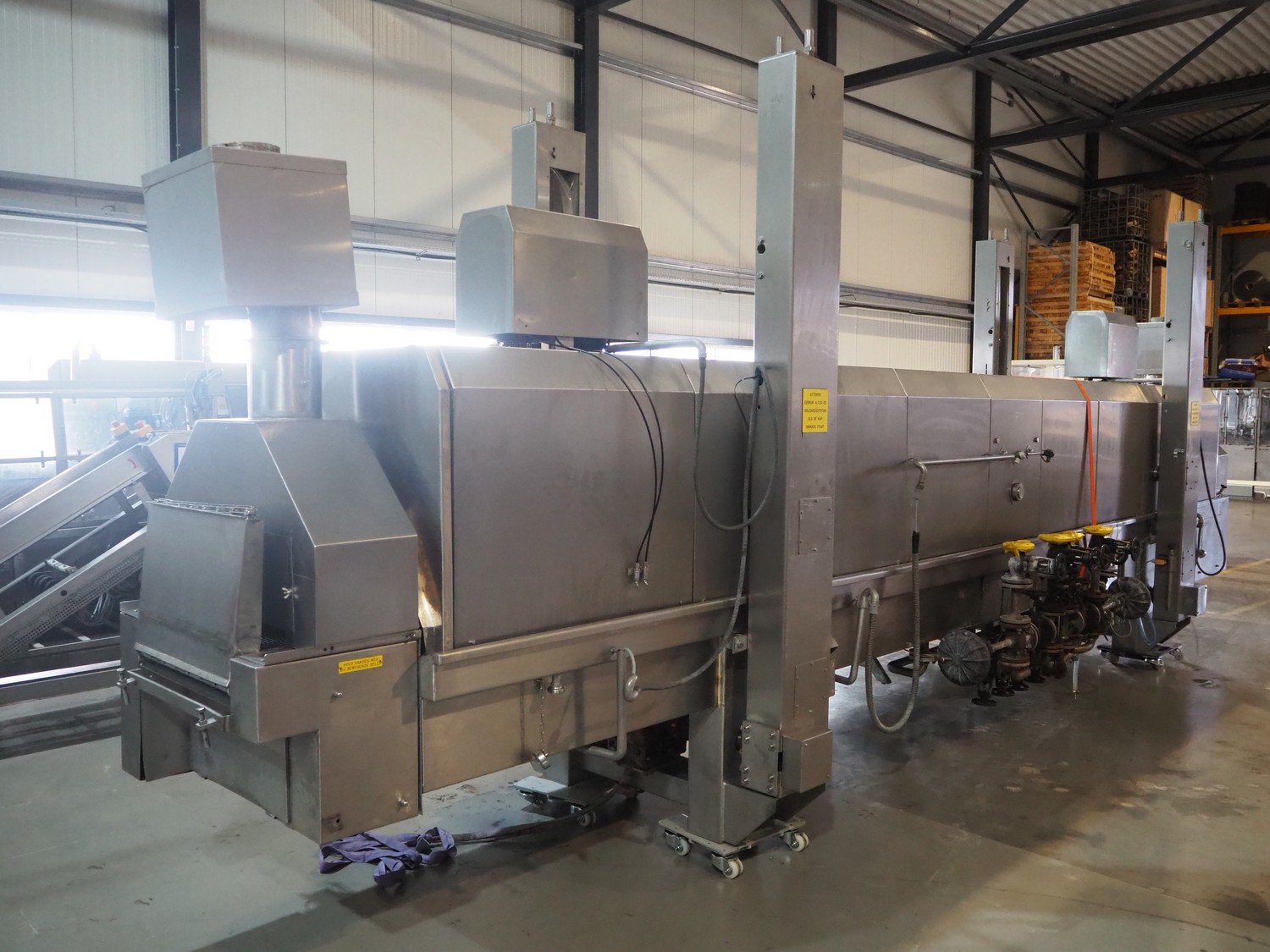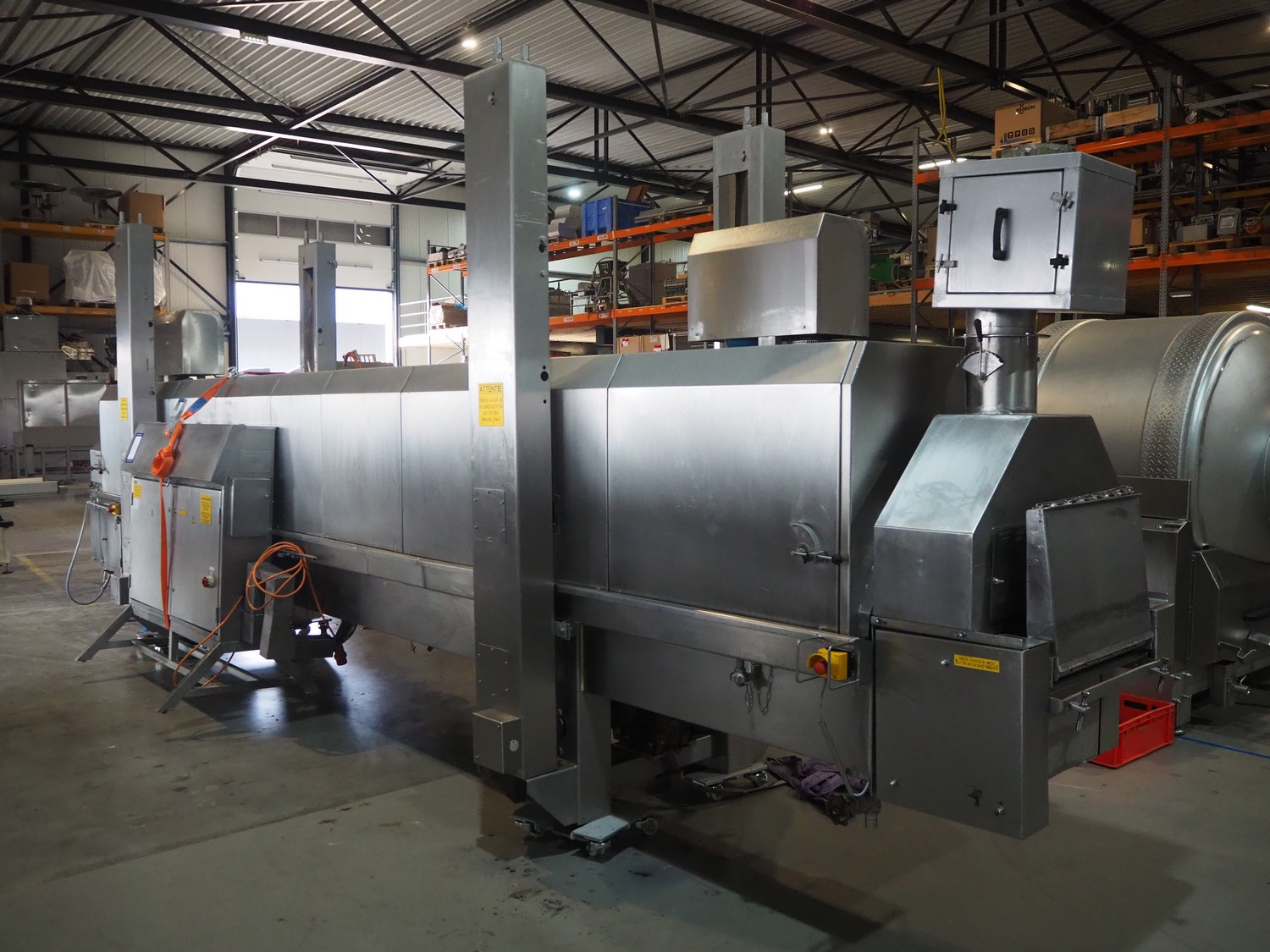Koppens belt fryer, type: HLT 8000/600, machine number: HLT 8000/600-53, 380 V, 3 Ph, 50 Hz, 19.38 A, 8.05 kW, weight: 3500 kg, s/s belt, belt width: 600 mm, total dimensions: 8100 mm x 2100 mm x 2950 mm.