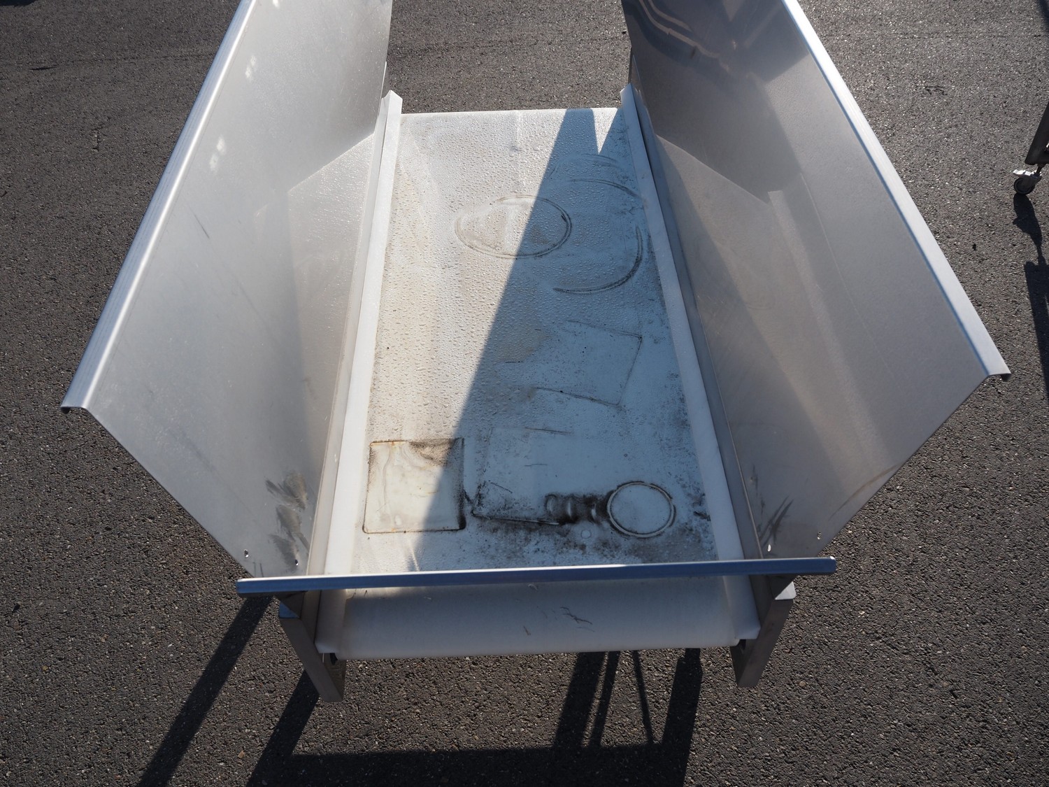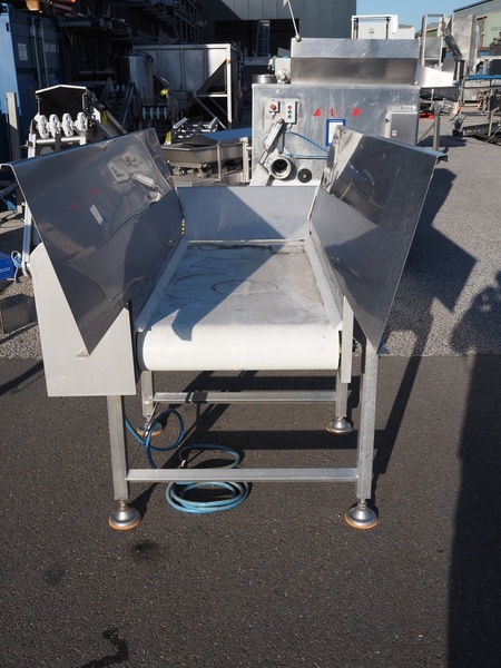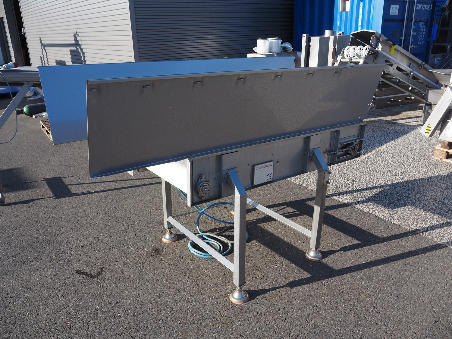 Colleluori Remo infeed bunker, model: BUNKER DI ACCUMULO PRODOTTO, machine number: 011, year of construction: 2011, 380 V, 50 Hz, 0.37 kW, plastic belt, belt width: 600 mm, total dimensions: 2050 mm x 910 mm x 1370 mm.