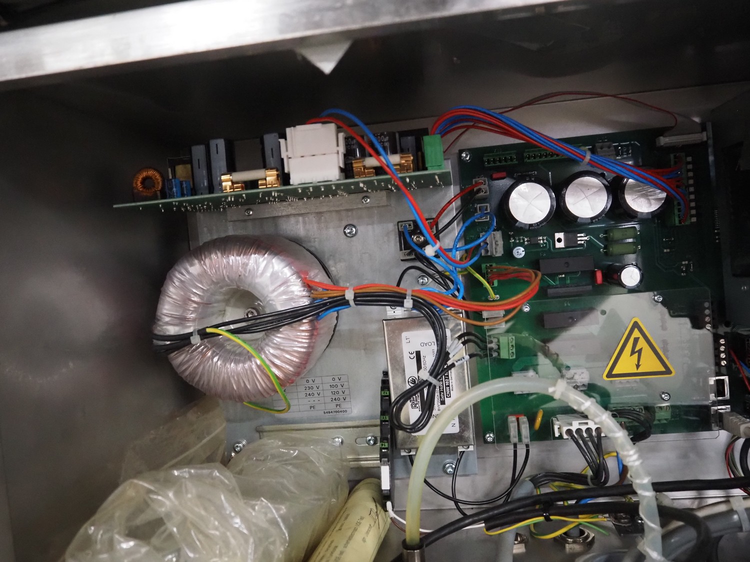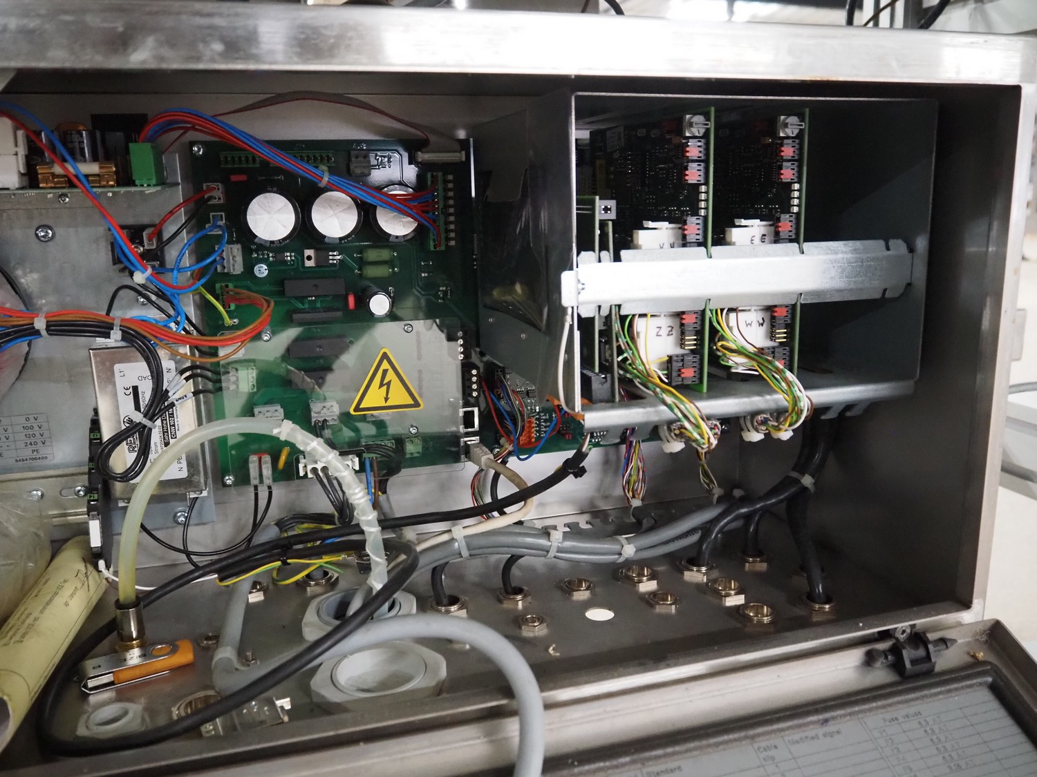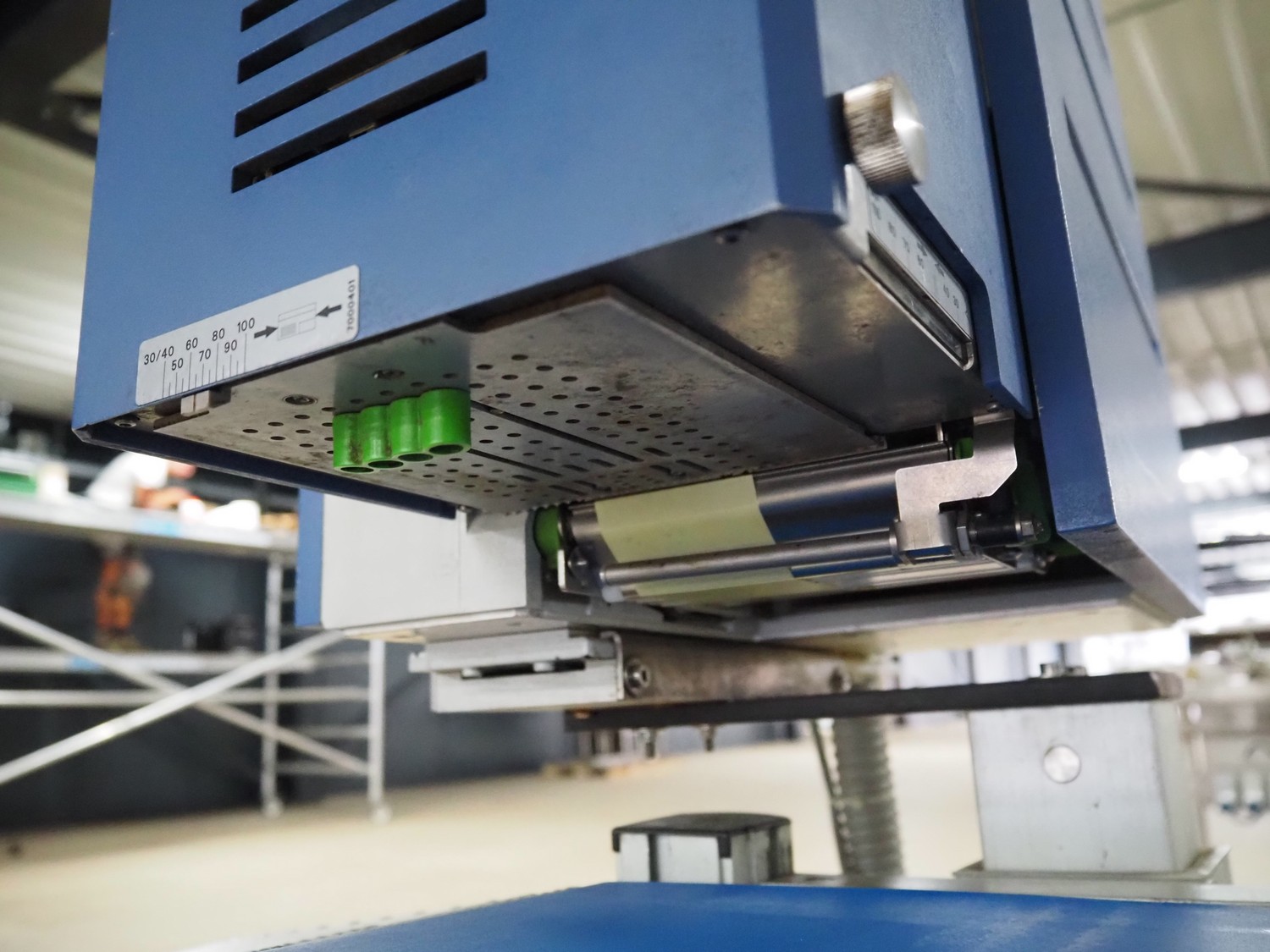 Bizerba weighing and labelling machine, model: GLE and GT-6M, number: 10853612 and 10853356, plastic belt, belt width: 298 mm, total dimensions: 2000 mm x 1000 mm x 1450 mm.