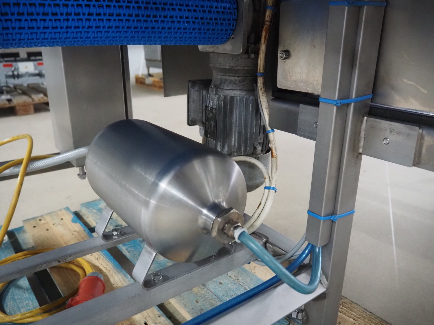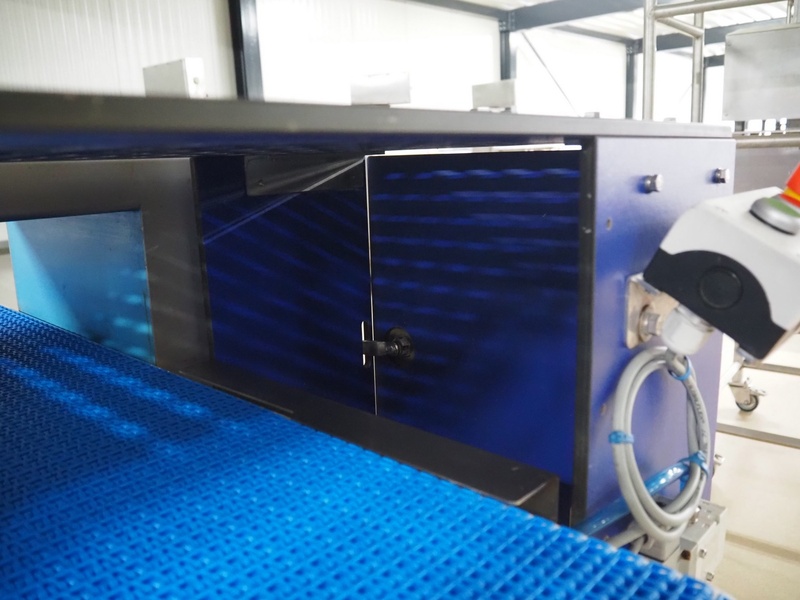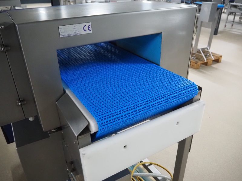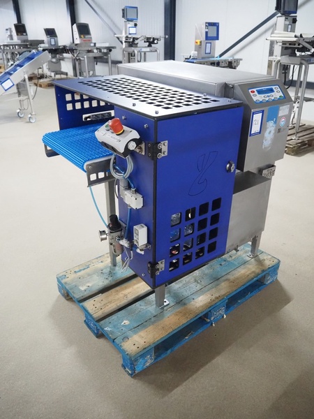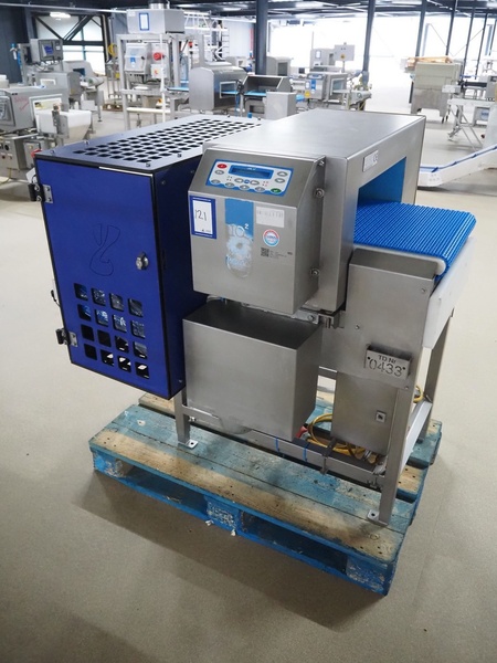 Loma Systems metal detector with rejector, number: 10960, year of construction: 2003, 400 V, 0.6 kW, plastic mesh belt, belt width: 400 mm, clearance: 450 mm x 140 mm, total dimensions: 1200 mm x 1000 mm x 1180 mm.