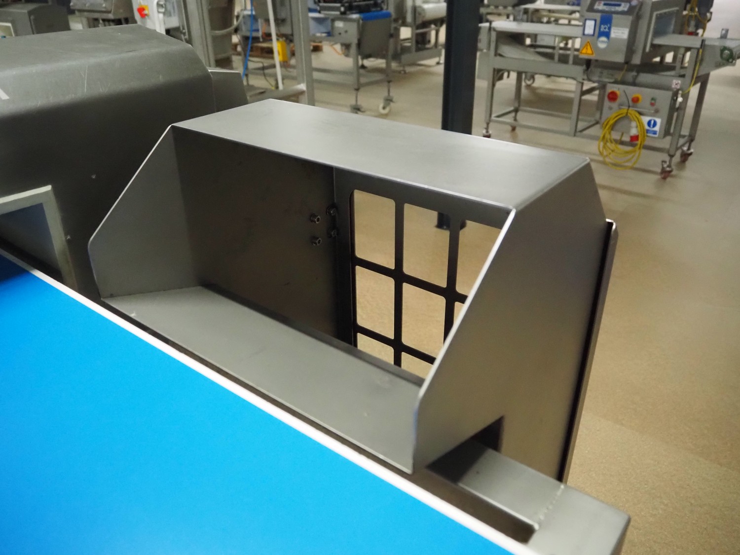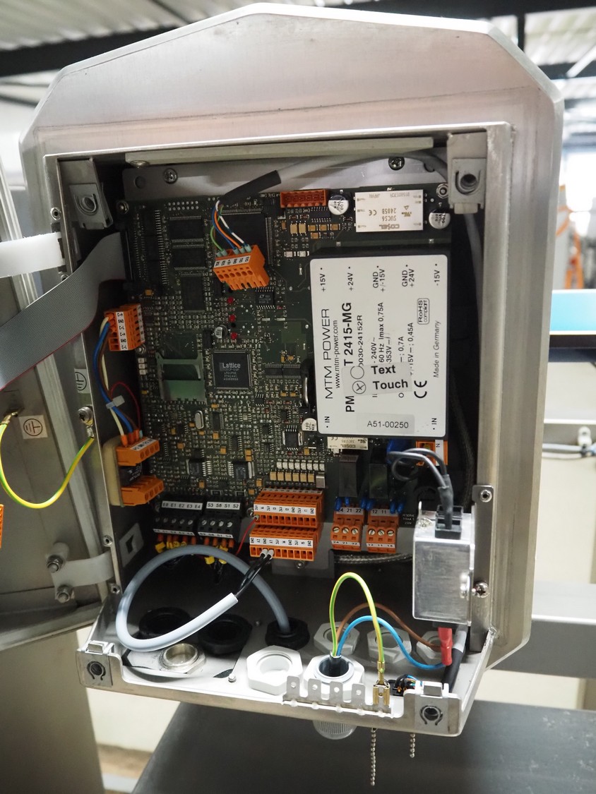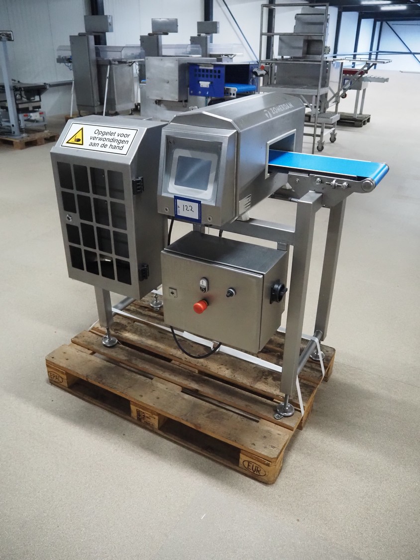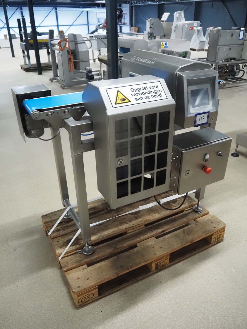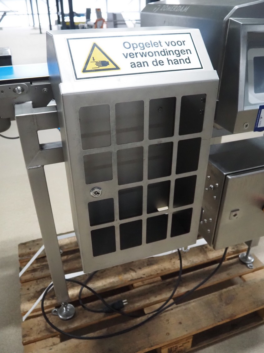 Zomerdam metaldetector with rejector, number: 010-1056-CI, plastic belt, belt width: 200 mm, clearance: 250 mm x 70 mm, total dimensions: 1350 mm x 800 mm x 1200 mm.