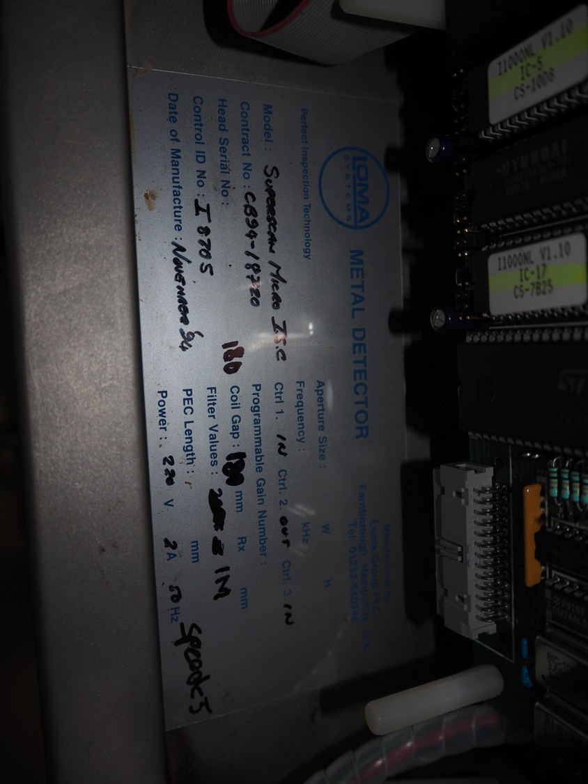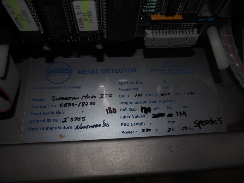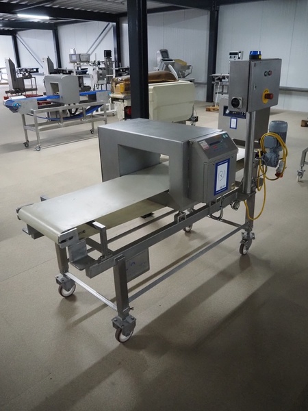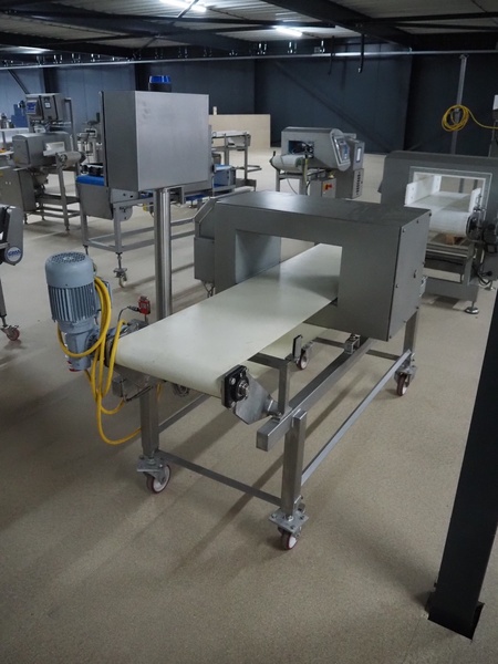 Lock Inspection Systems Ltd. mobile metal detector, year of construction: 2004, plastic belt, belt width: 400 mm, clearance: 450 mm x 210 mm, total dimensions: 2000 mm x 900 mm x 1550 mm.