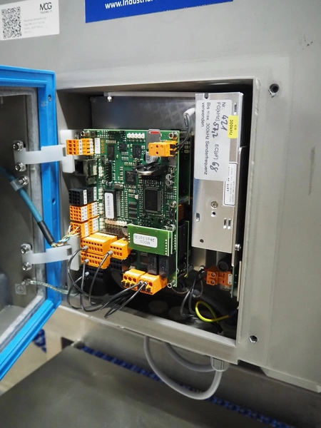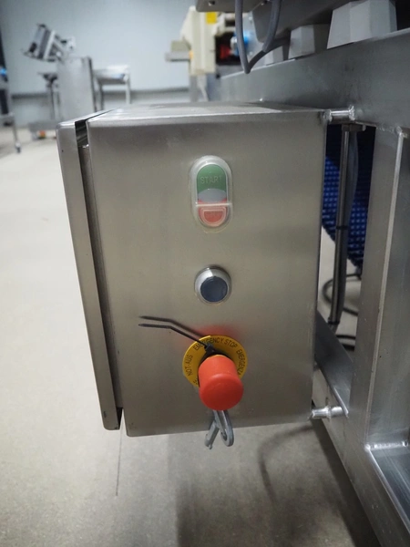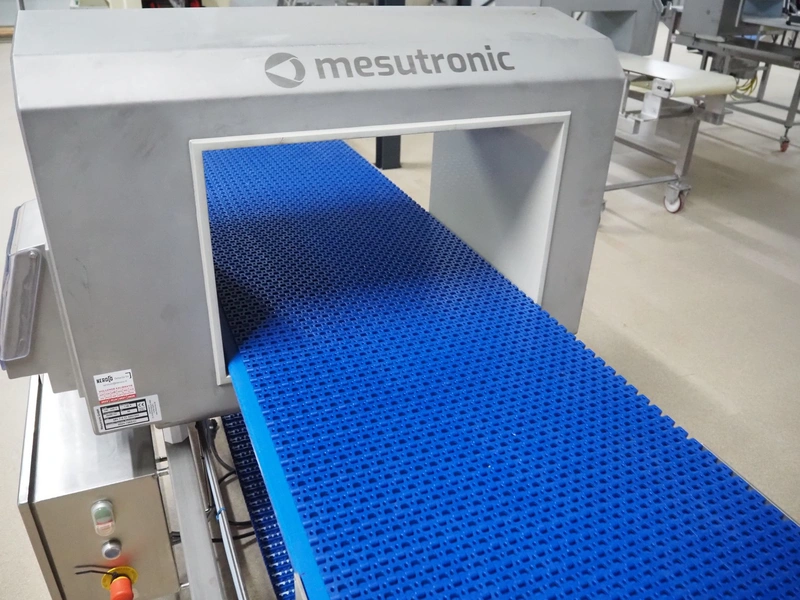 Mesutronic GmbH mobile metal detector, type: MN 7.0 CI 550/350, serial number: 1063-CI, year of construction: 2024, 100-240 V, 50/60 Hz, 1.25 A, calibrated until March 2026, plastic mesh belt, belt width: 520 mm, clearance: 550 mm x 320 mm, total dimensions: 2150 mm x 1050 mm x 1450 mm.