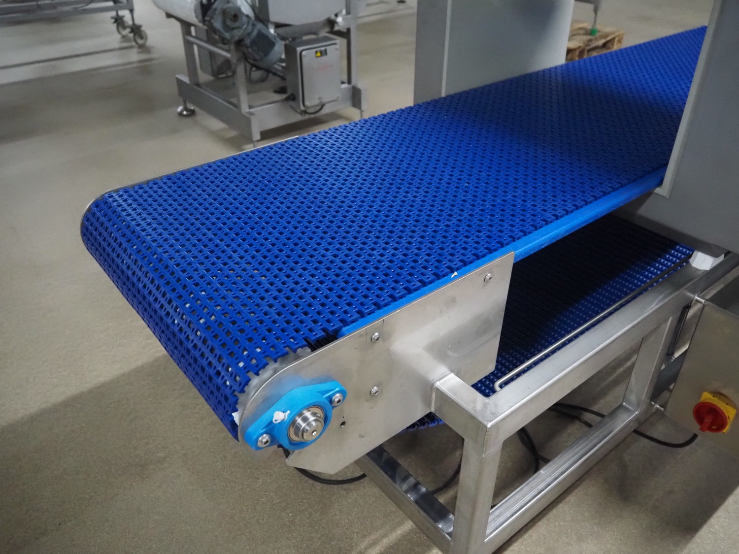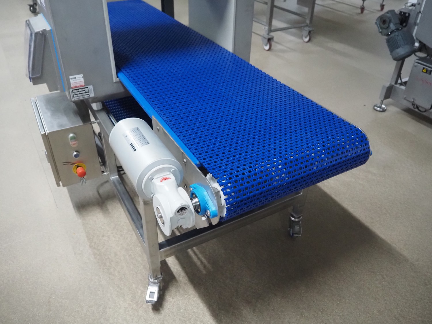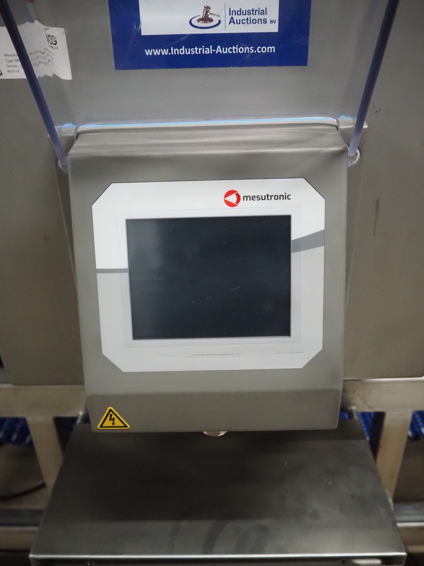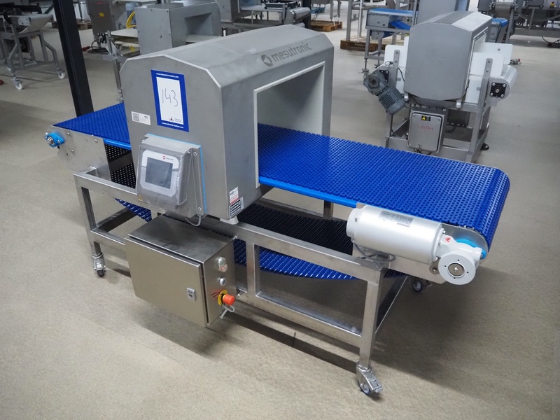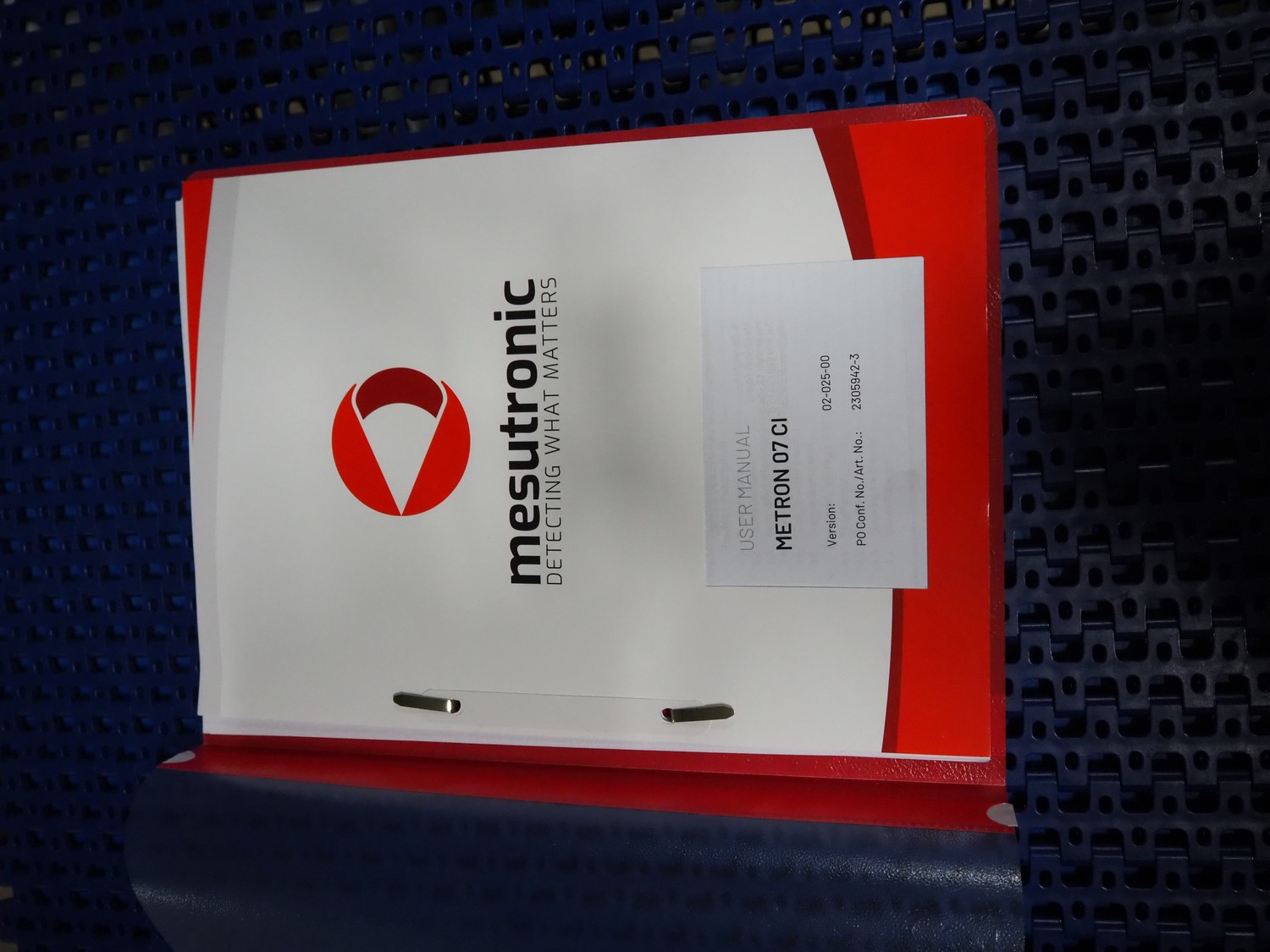 Mesutronic GmbH mobile metal detector, type: MN 7.0 CI 550/350, serial number: 1063-CI, year of construction: 2024, 100-240 V, 50/60 Hz, 1.25 A, calibrated until March 2026, plastic mesh belt, belt width: 520 mm, clearance: 550 mm x 320 mm, total dimensions: 2150 mm x 1050 mm x 1450 mm.