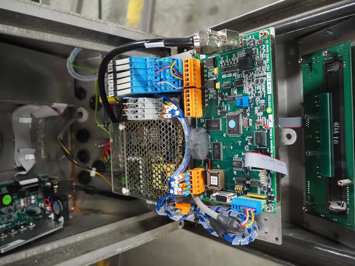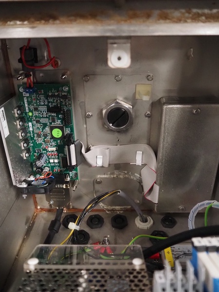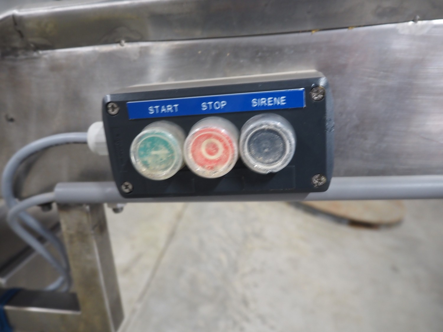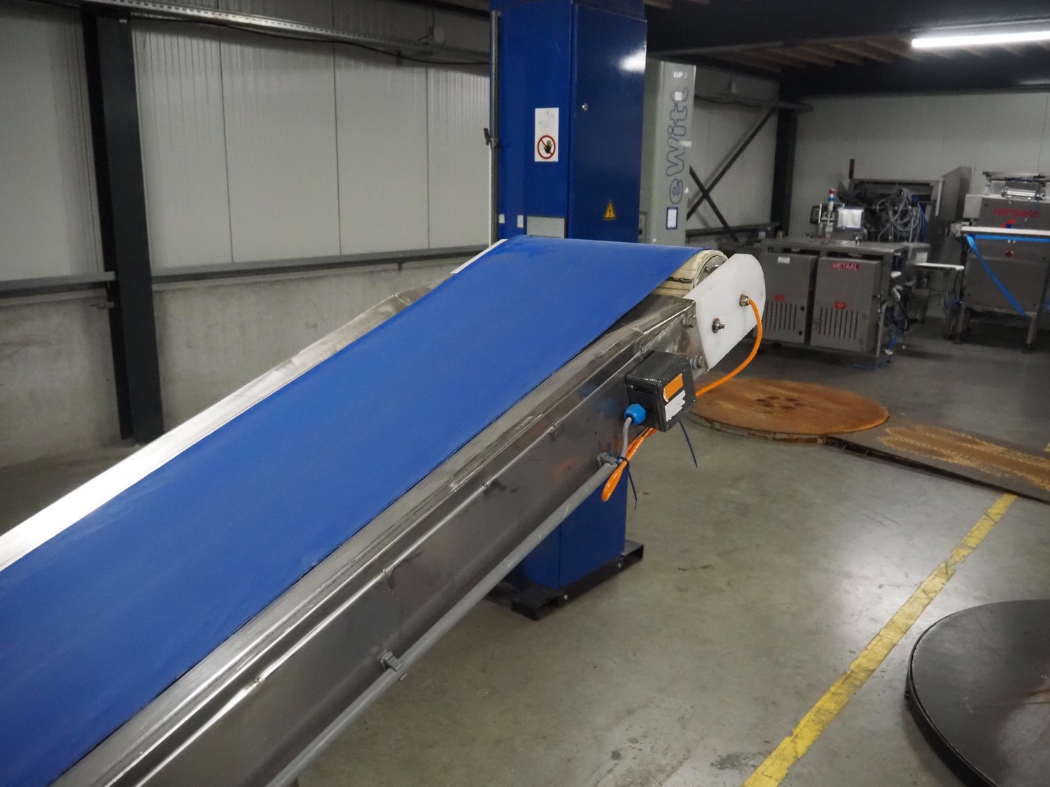 Loma Systems metal detector on mobile elevating belt, type: Blue IQ3 ST, serial number: Q3B55-10-28060D, year of construction: 17.3.2015, 110-240 V, 1 Ph, 50/60 Hz, 0.3-0.6 A, plastic belt, belt width: 410, clearance: 550 mm x 30 mm, elevating height: 1750 mm, total dimensions: 4600 mm x 1030 mm x 1760 mm.