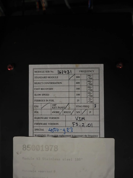 Mettler Toledo Safeline mobile pipeline metal detector, 100-240 V, 50/60 Hz, 300 W, diameter clearance: 55 mm, total dimensions: 860 mm x 520 mm x 1440 mm.