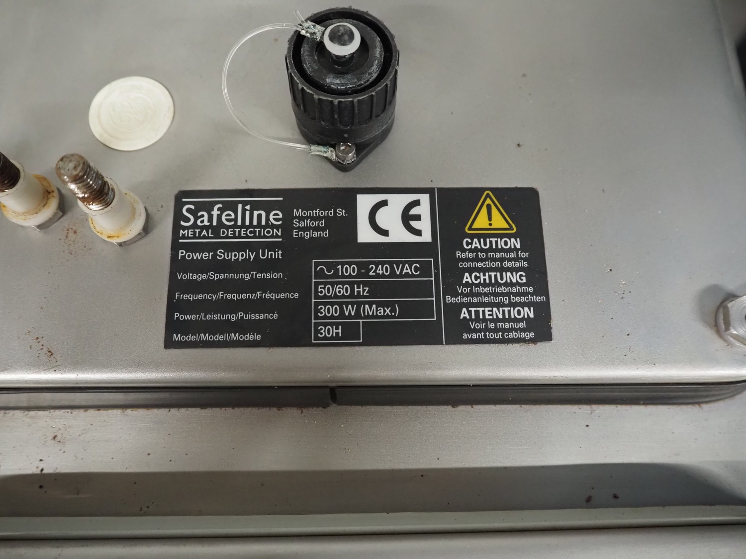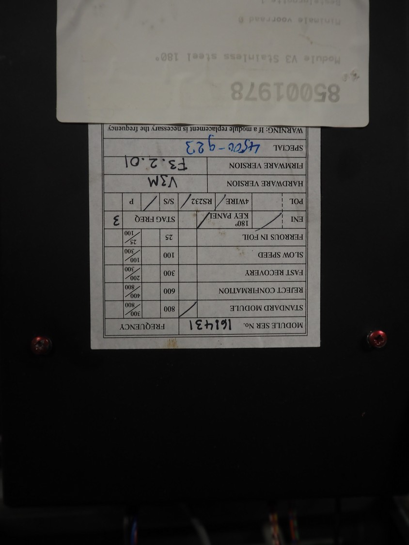 Mettler Toledo Safeline mobile pipeline metal detector, 100-240 V, 50/60 Hz, 300 W, diameter clearance: 55 mm, total dimensions: 860 mm x 520 mm x 1440 mm.