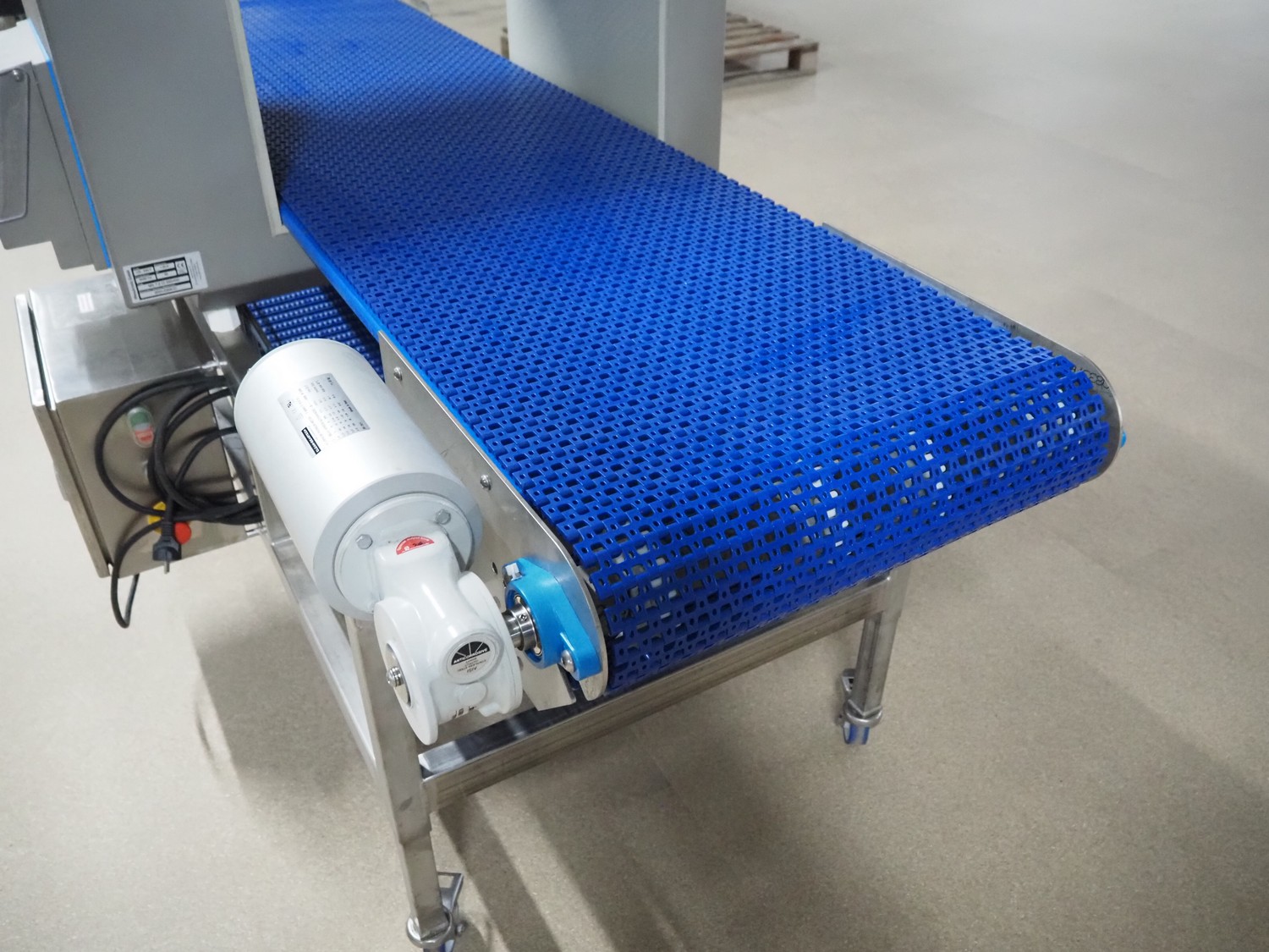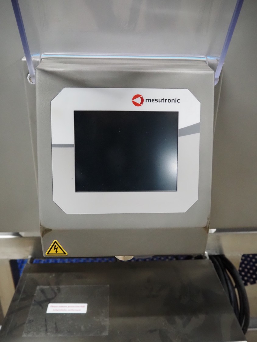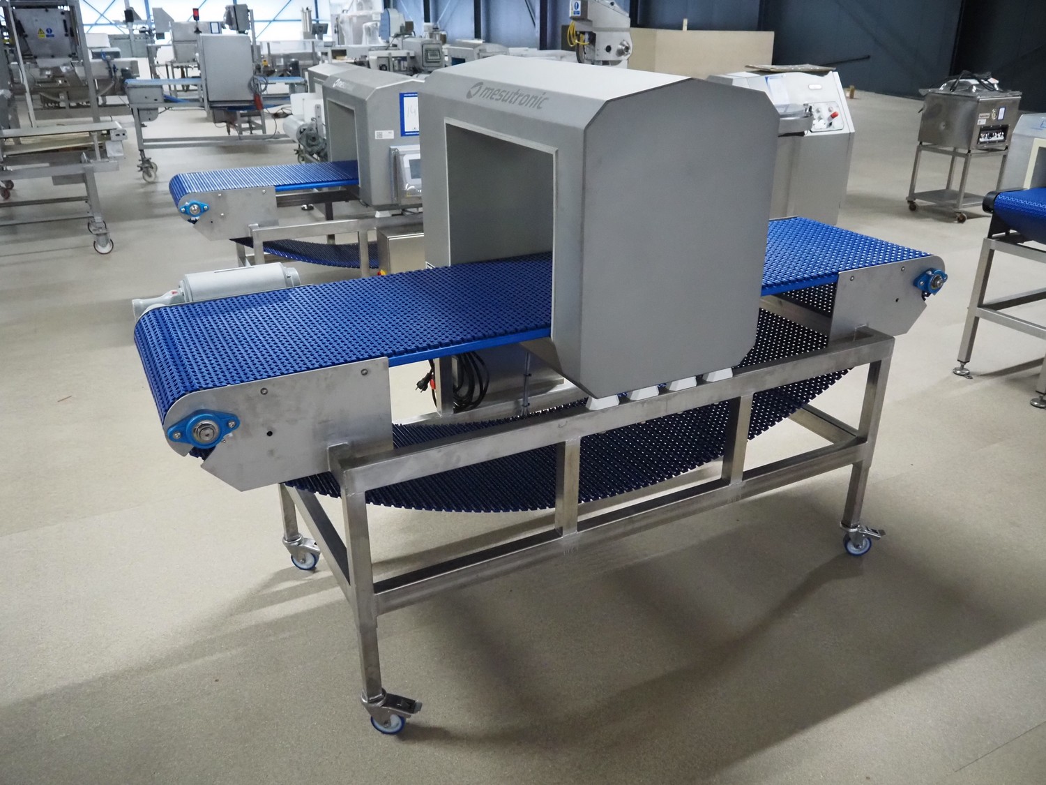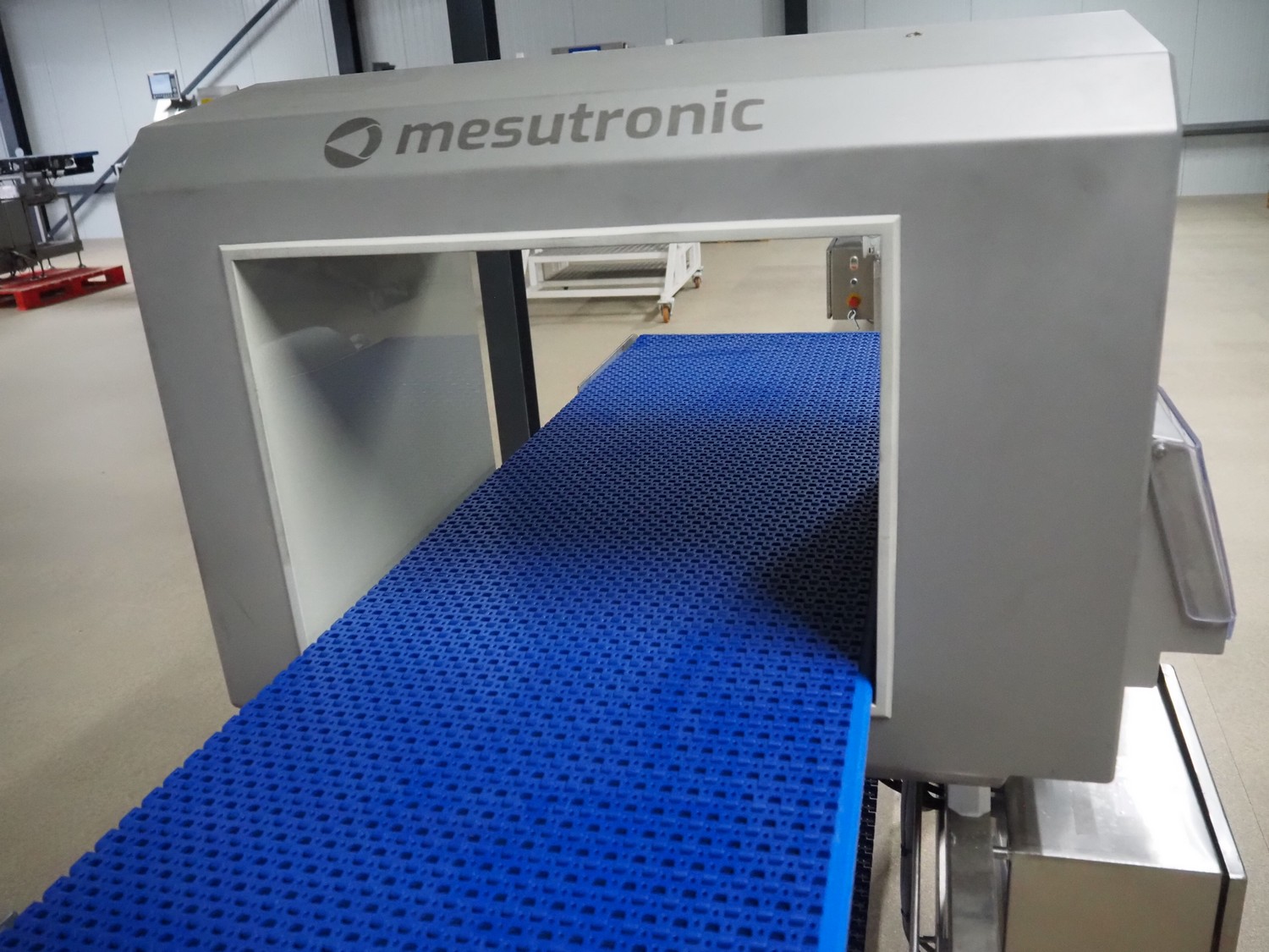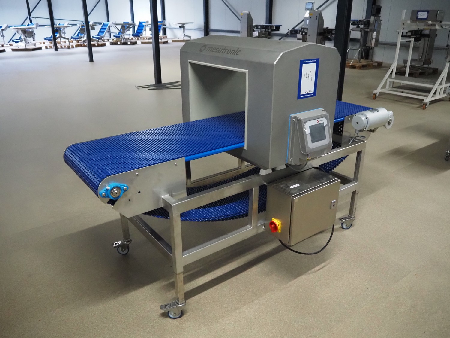 Mesutronic GmbH mobile metal detector with rejector, type: MN 7.2 CI 550/400, serial number: 2308-CI, year of construction: 2024, 100-240 V, 50/60 Hz, 1.25 A, plastic mesh belt, belt width: 520 mm, clearance: 550 mm x 370 mm, total dimensions: 2250 mm x 1000 mm x 1400 mm.