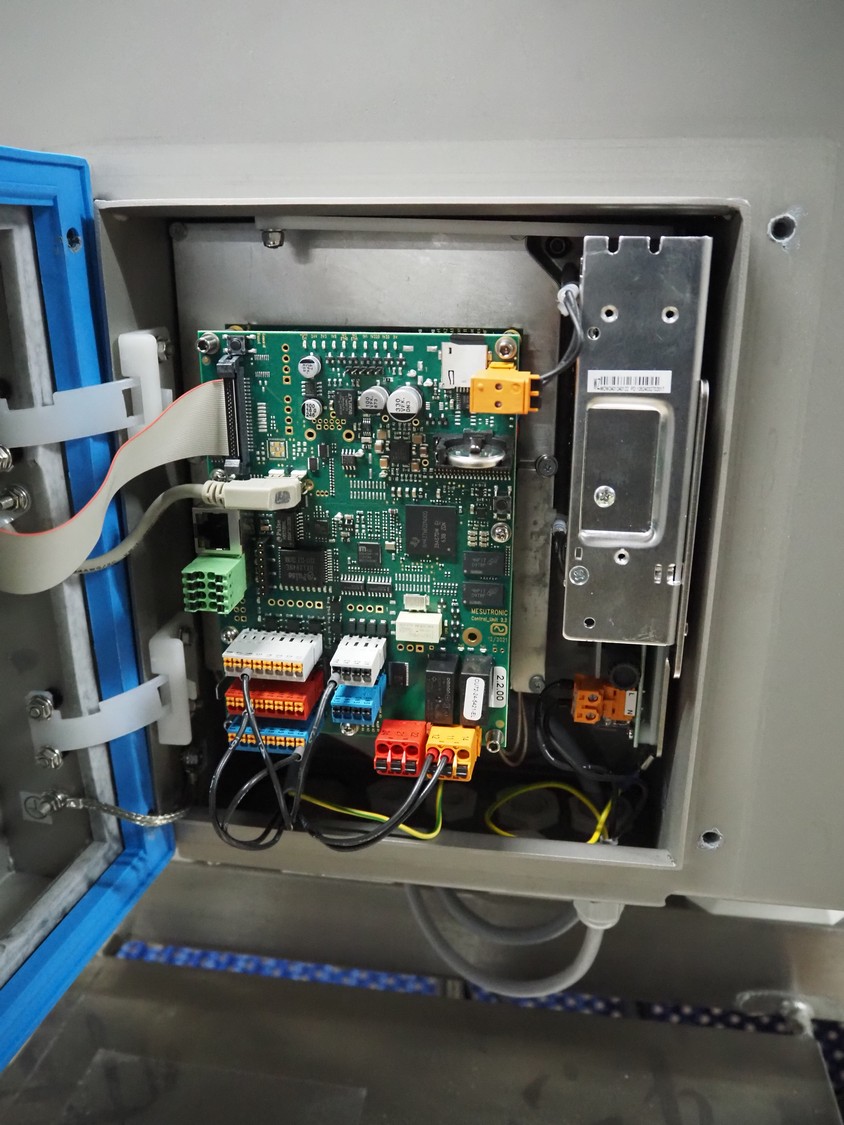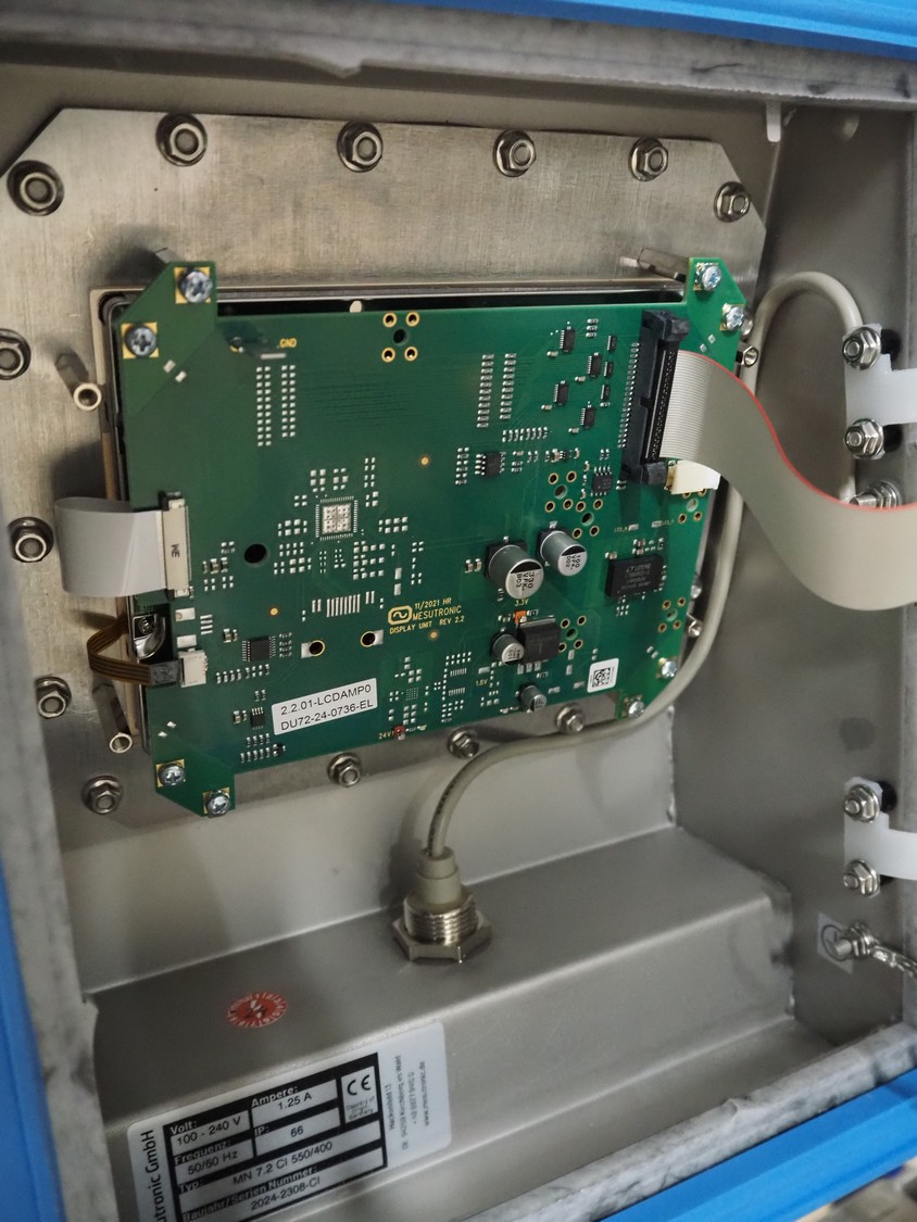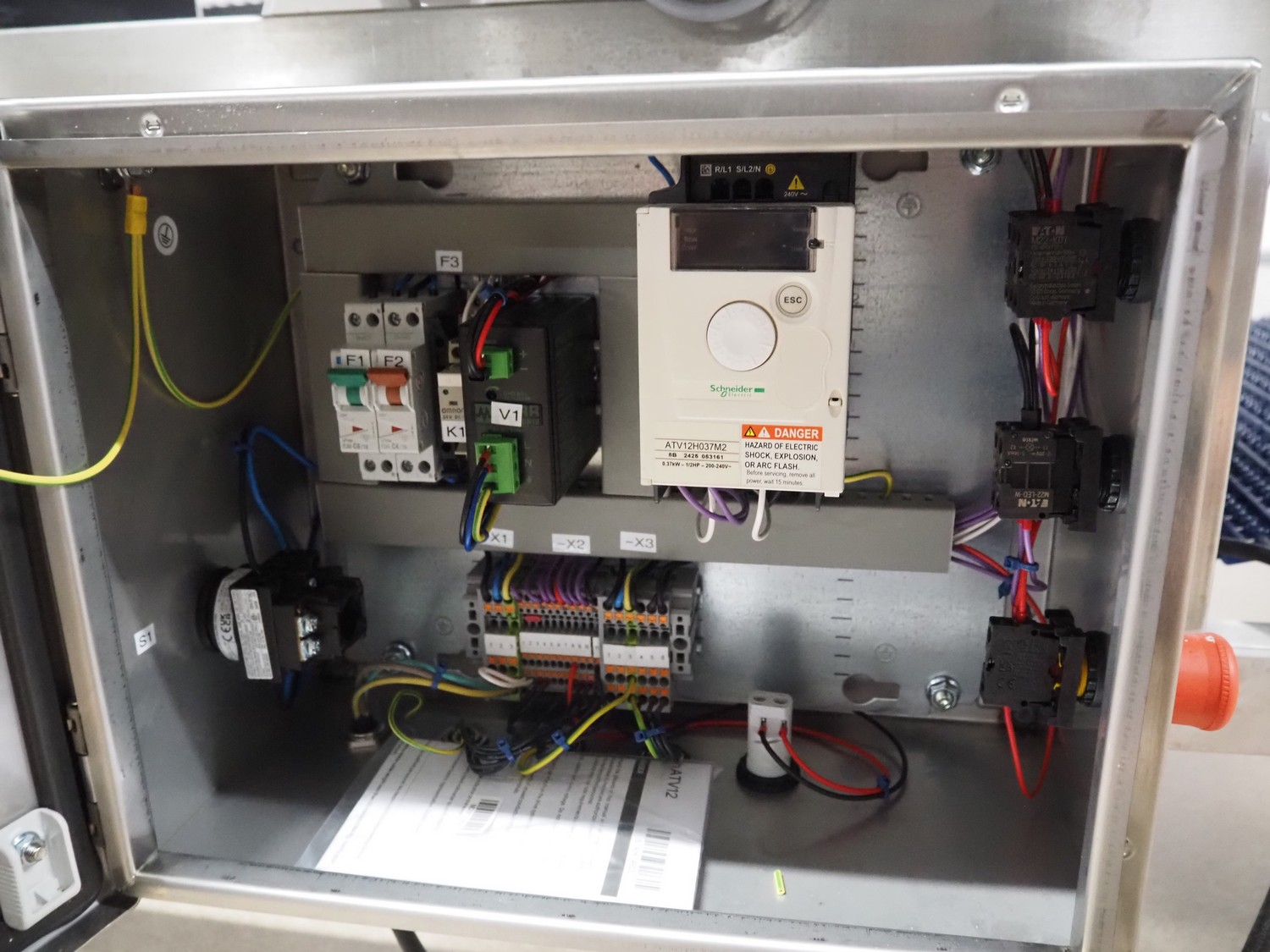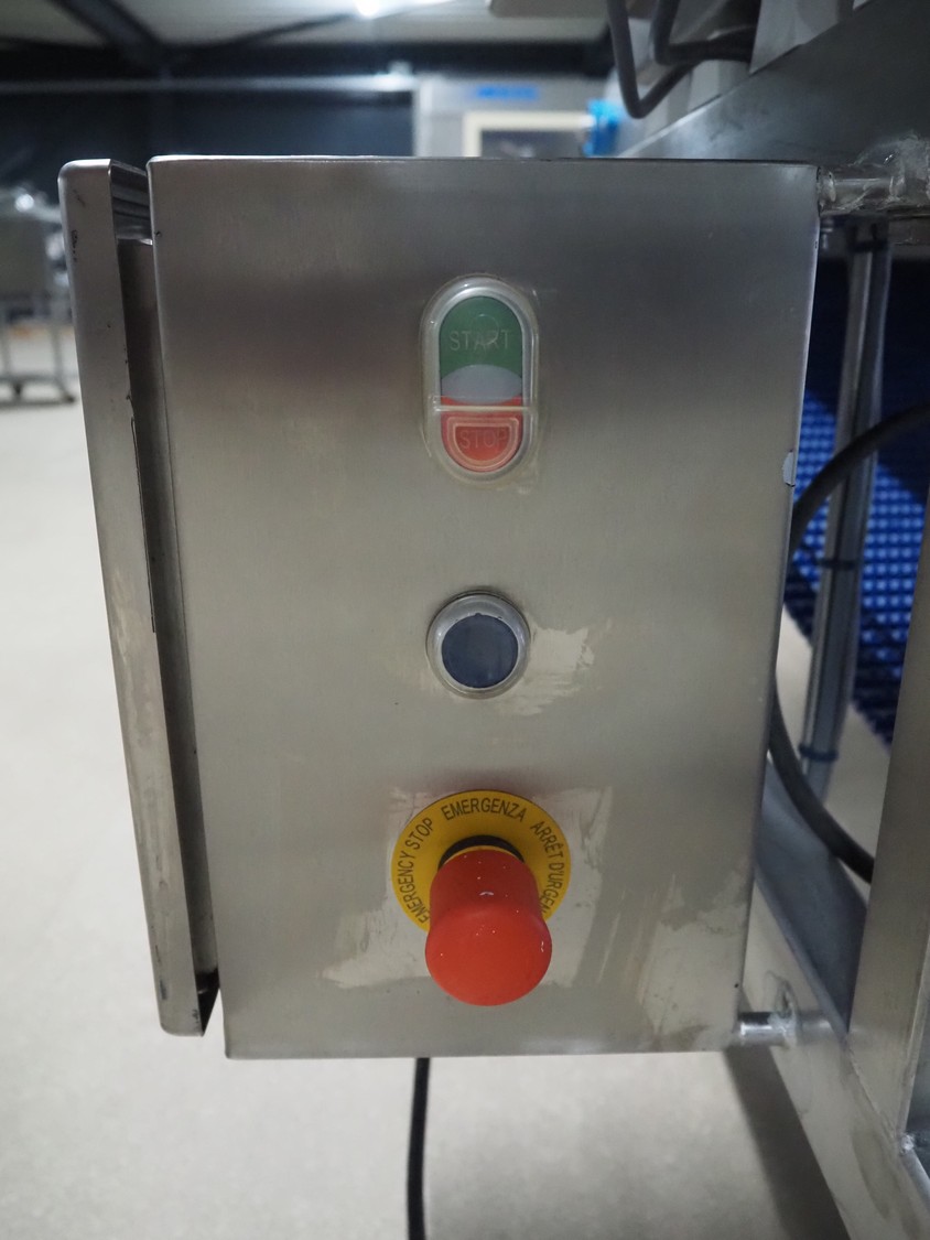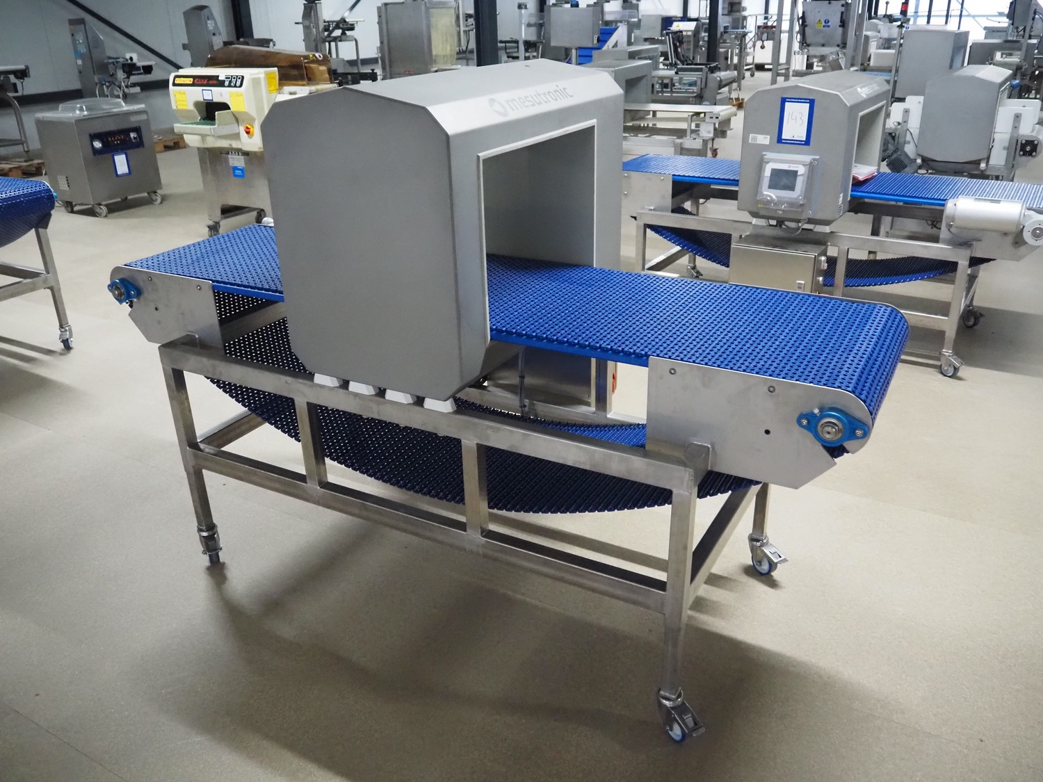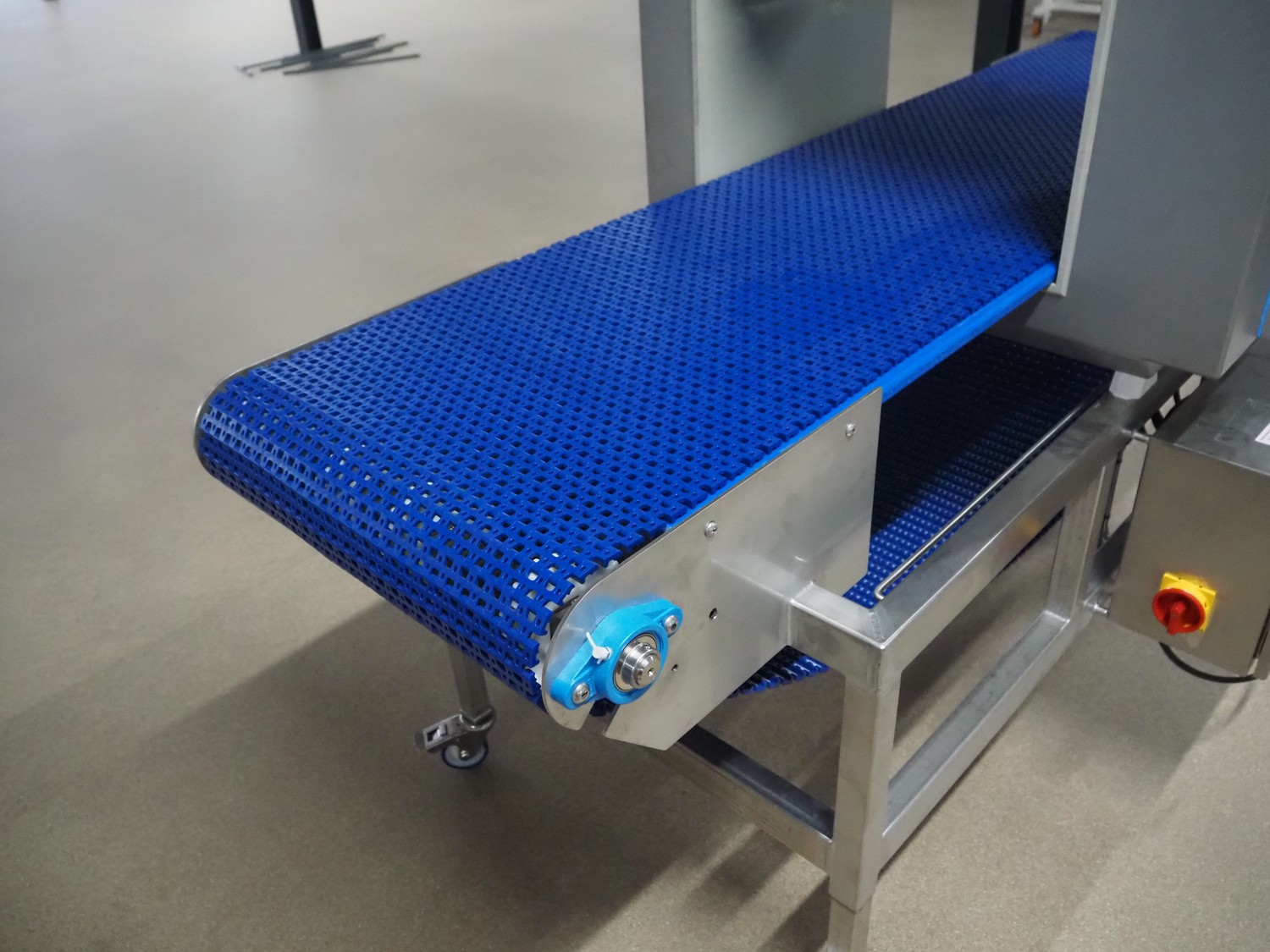 Mesutronic GmbH mobile metal detector with rejector, type: MN 7.2 CI 550/400, serial number: 2308-CI, year of construction: 2024, 100-240 V, 50/60 Hz, 1.25 A, plastic mesh belt, belt width: 520 mm, clearance: 550 mm x 370 mm, total dimensions: 2250 mm x 1000 mm x 1400 mm.