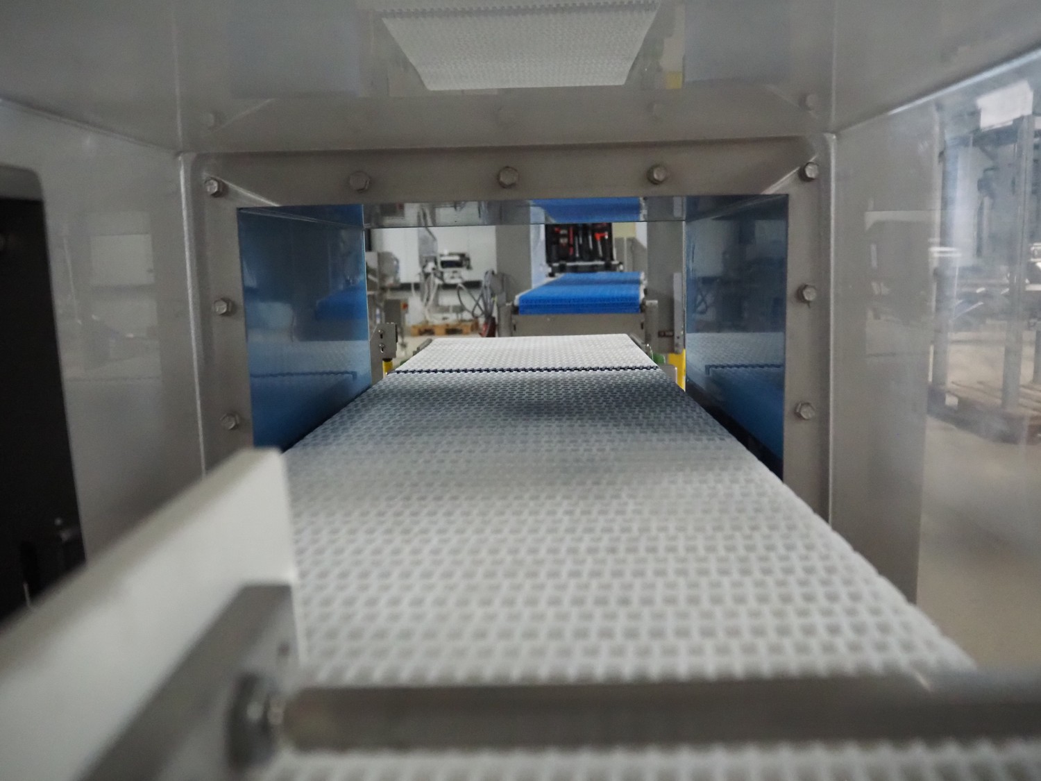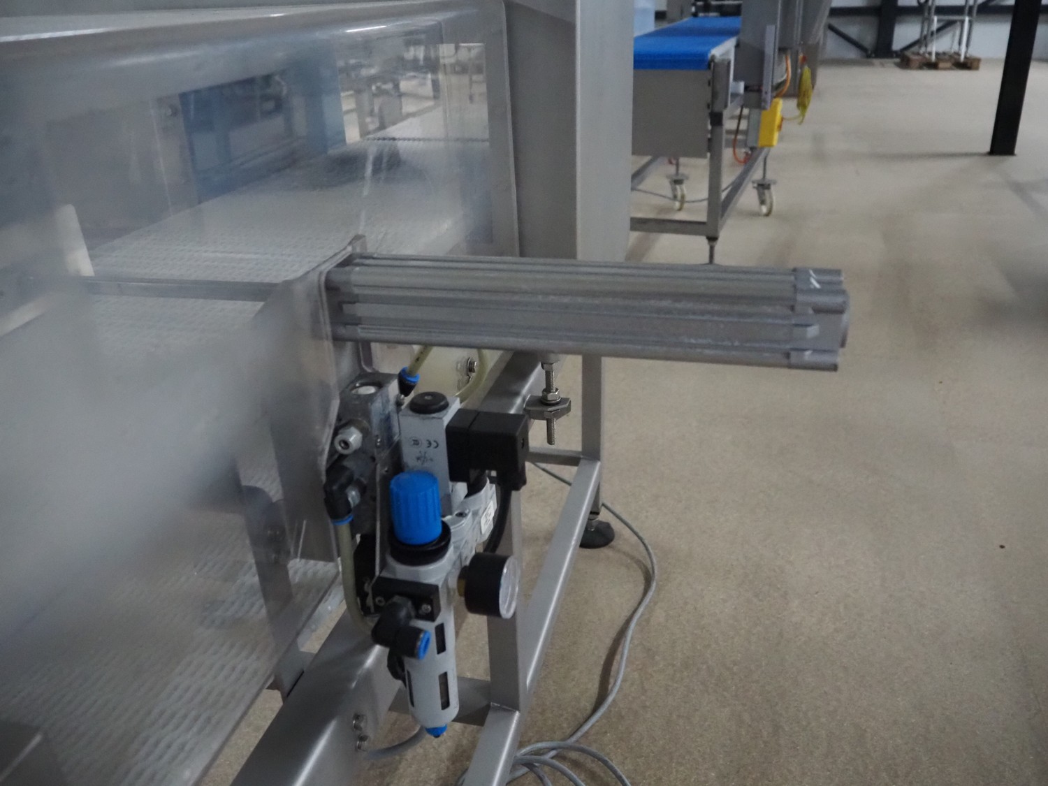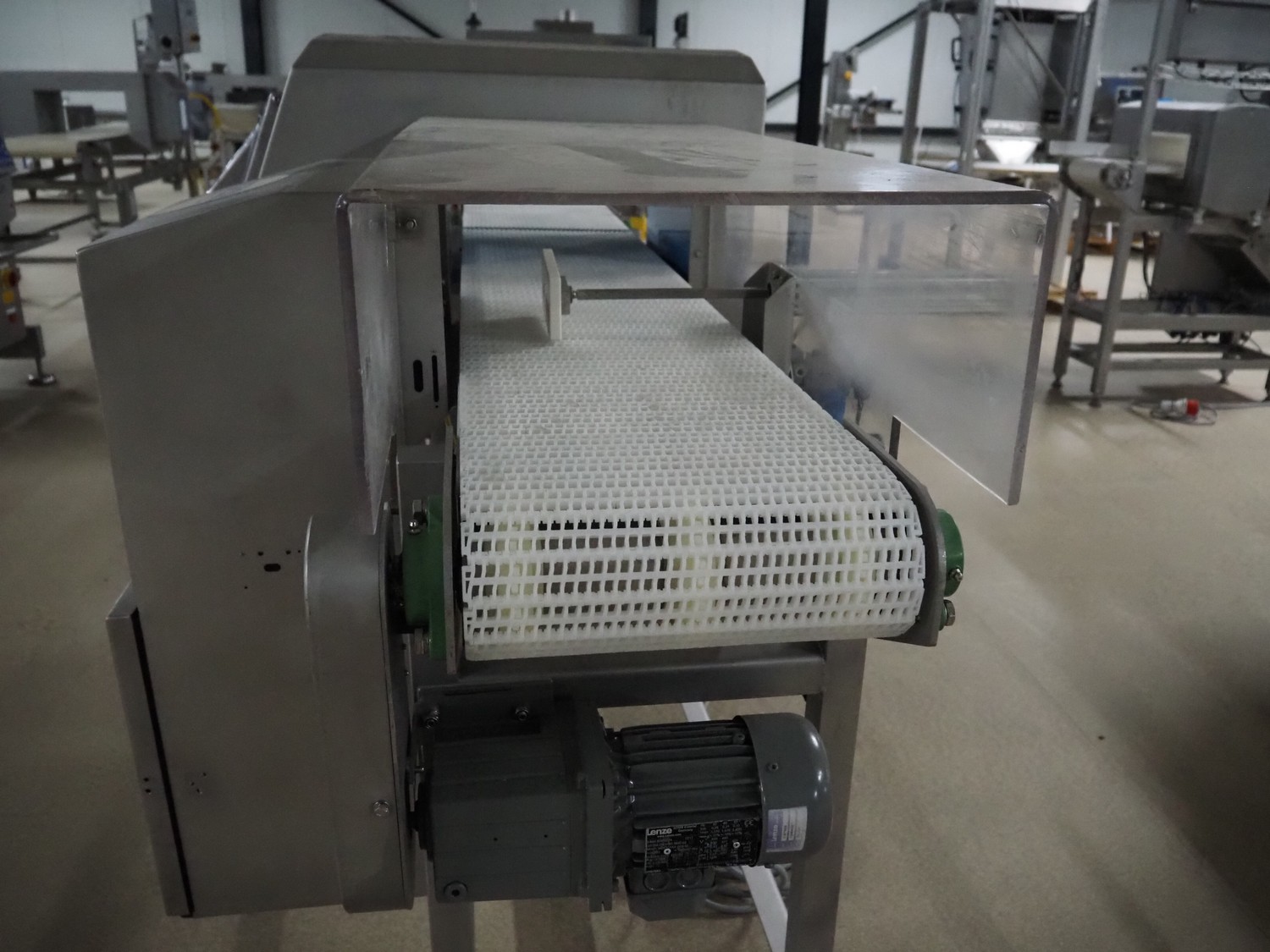 Loma Systems metal detector with rejector, model: IQ3+, serial number: AMC44407-45020F, year of construction: 2007, 400 V, 3 Ph, 50 Hz, 1.2 A, plastic mesh belt, belt width: 305 mm, clearance: 350 mm x 160 mm, total dimensions: 1800 mm x 1000 mm x 1180 mm.