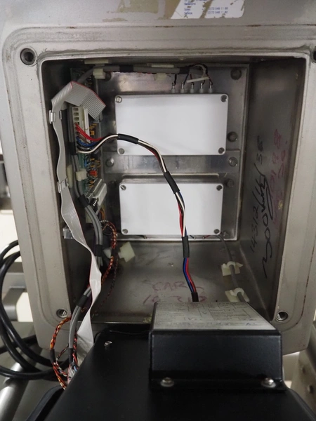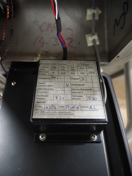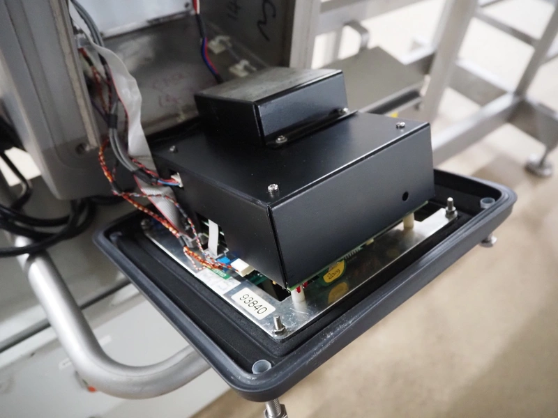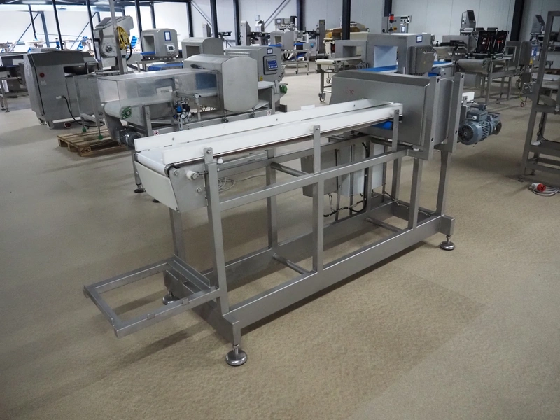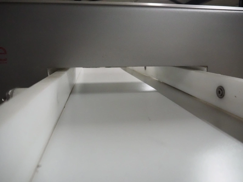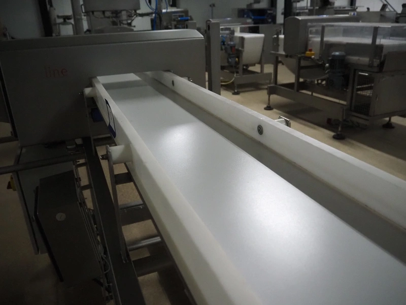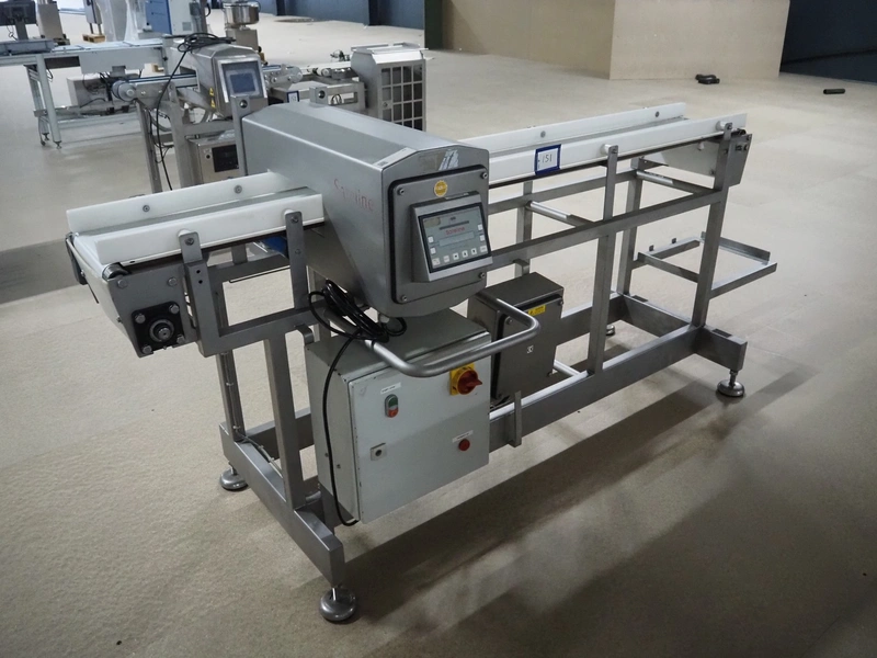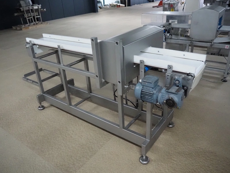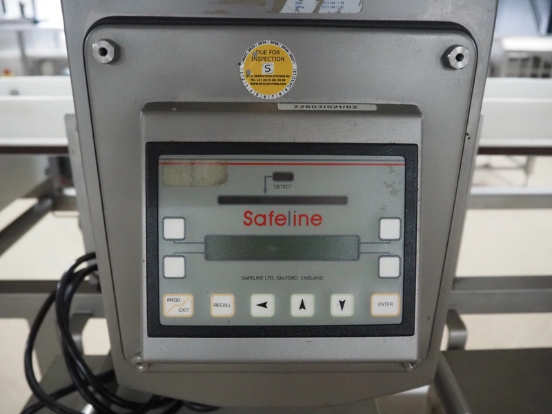 Safeline metal detector, plastic belt, belt width: 250 mm, clearance: 245 mm x 65 mm, total dimensions: 2550 mm x 950 mm x 1150 mm.