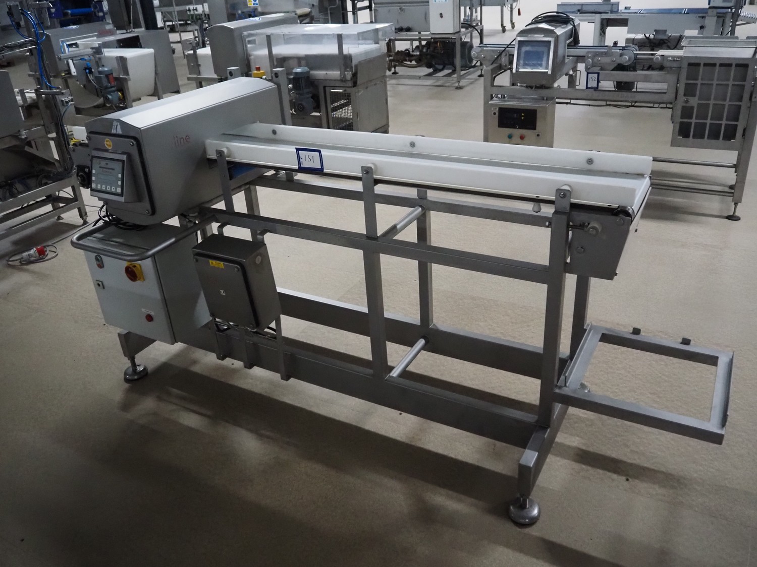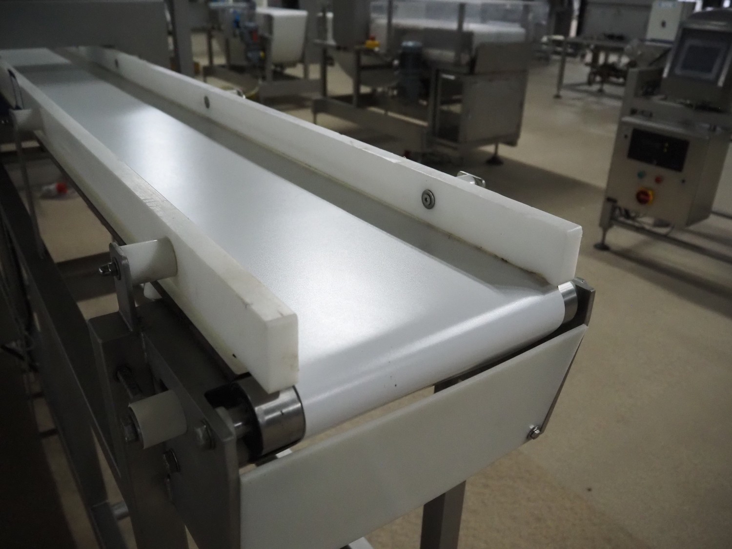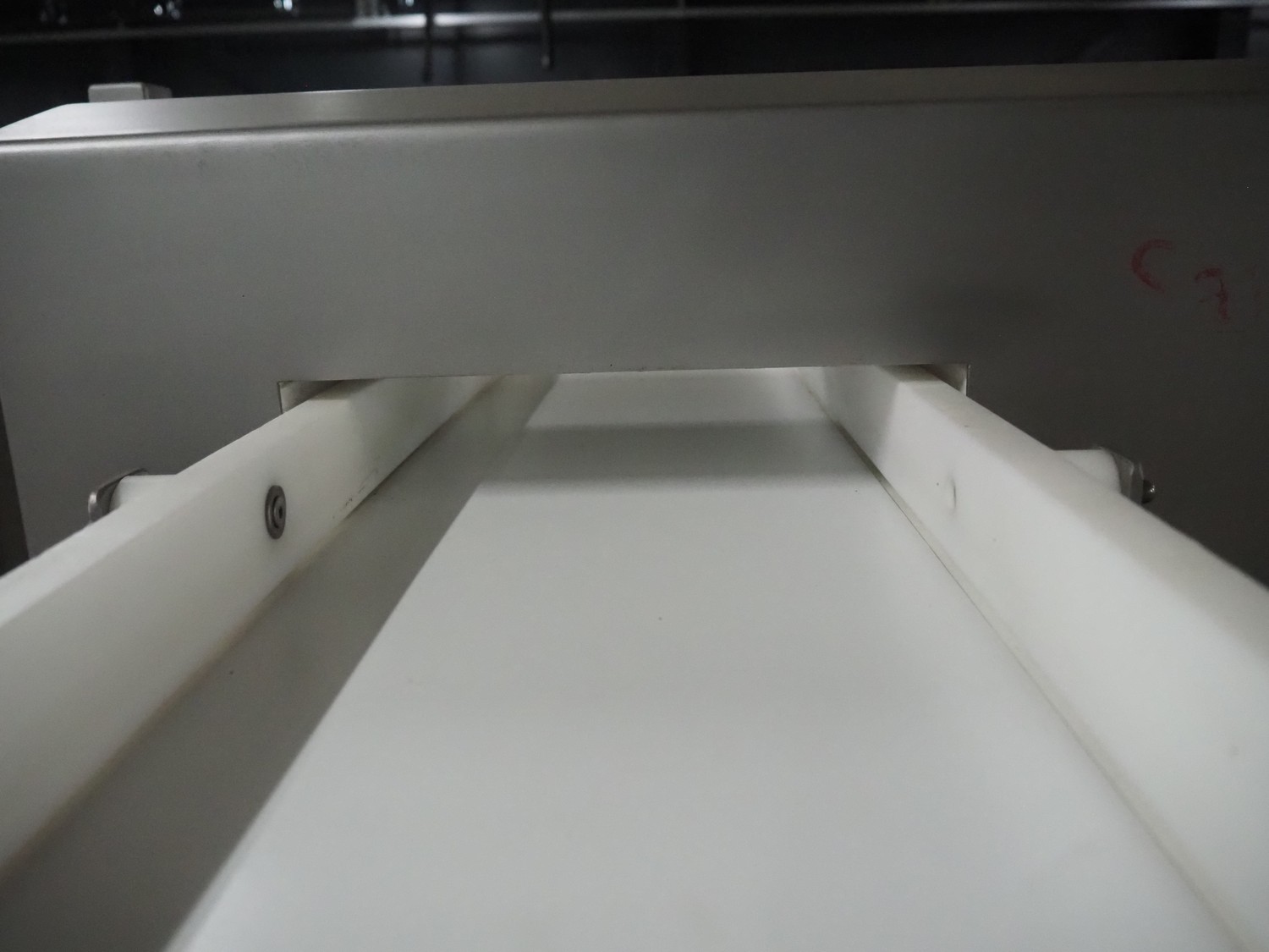 Safeline metal detector, plastic belt, belt width: 250 mm, clearance: 245 mm x 65 mm, total dimensions: 2550 mm x 950 mm x 1150 mm.